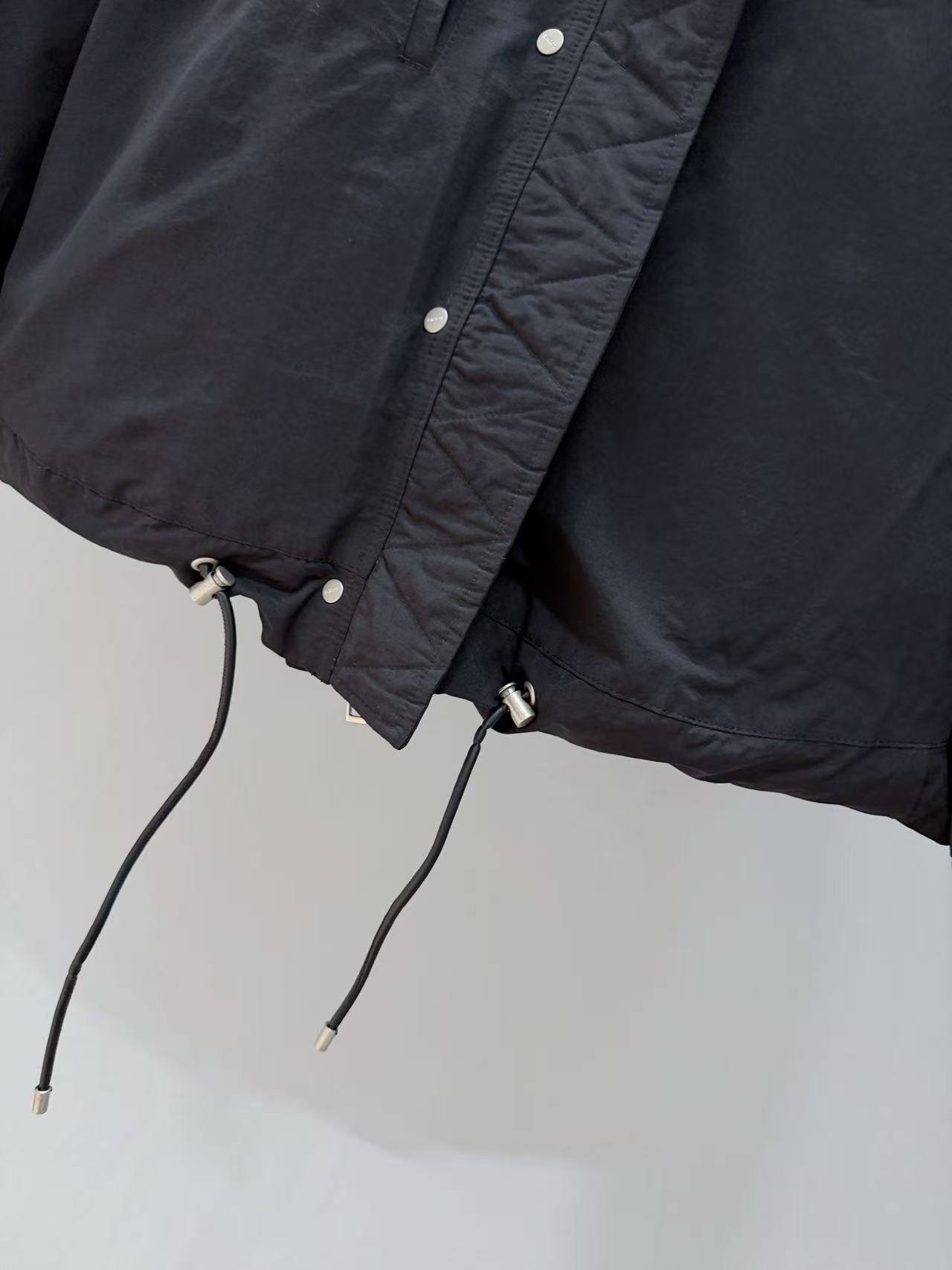 衣擺與腰圍附加 抽繩可調節,保暖性更佳。五金、輔料及刺繡細節均精緻可見,整件外套兼具 輕盈與保暖,是秋冬衣櫃必備單品。