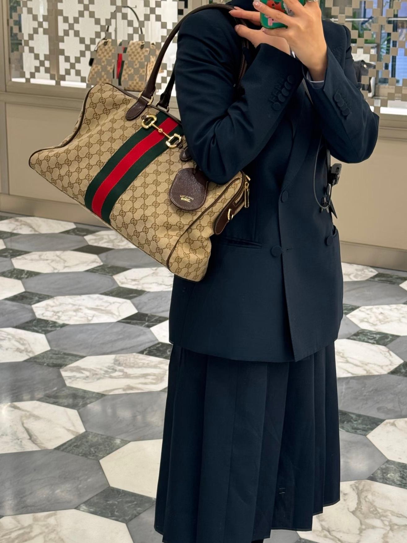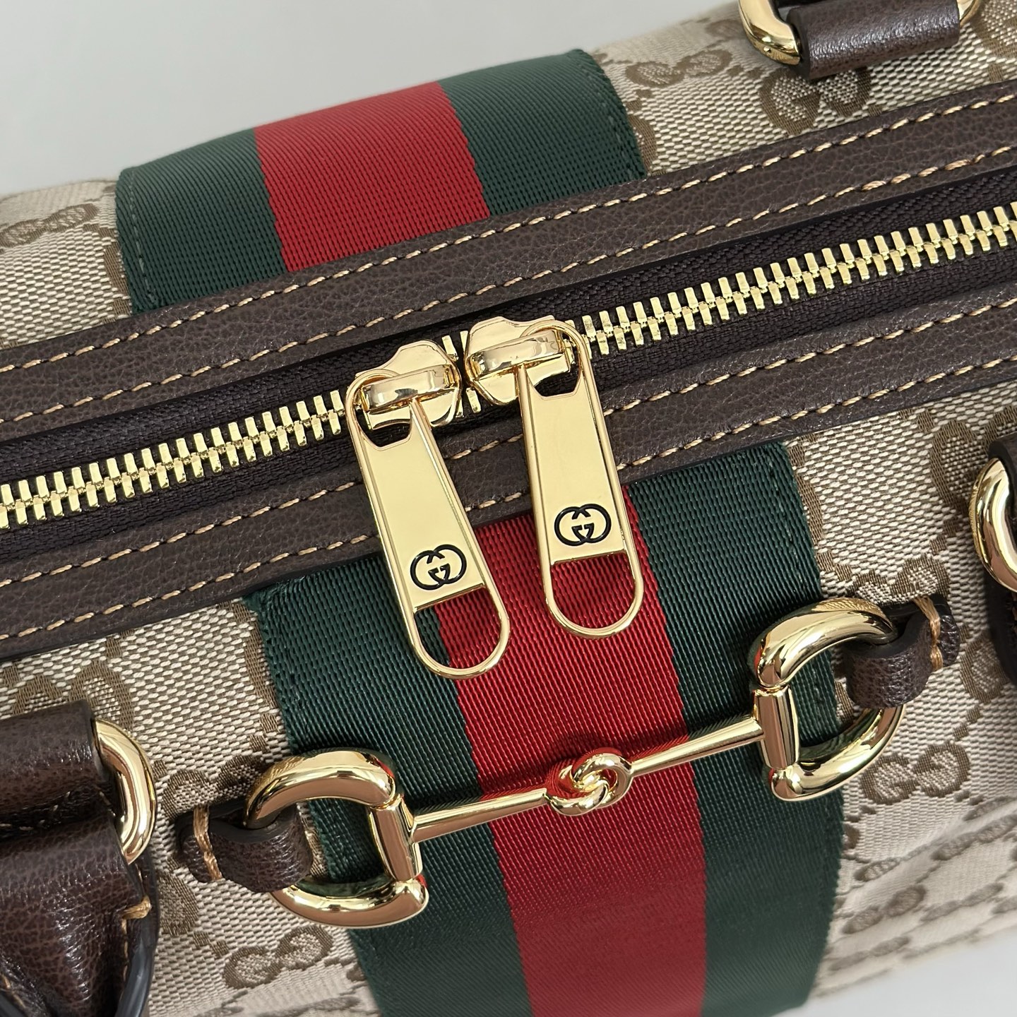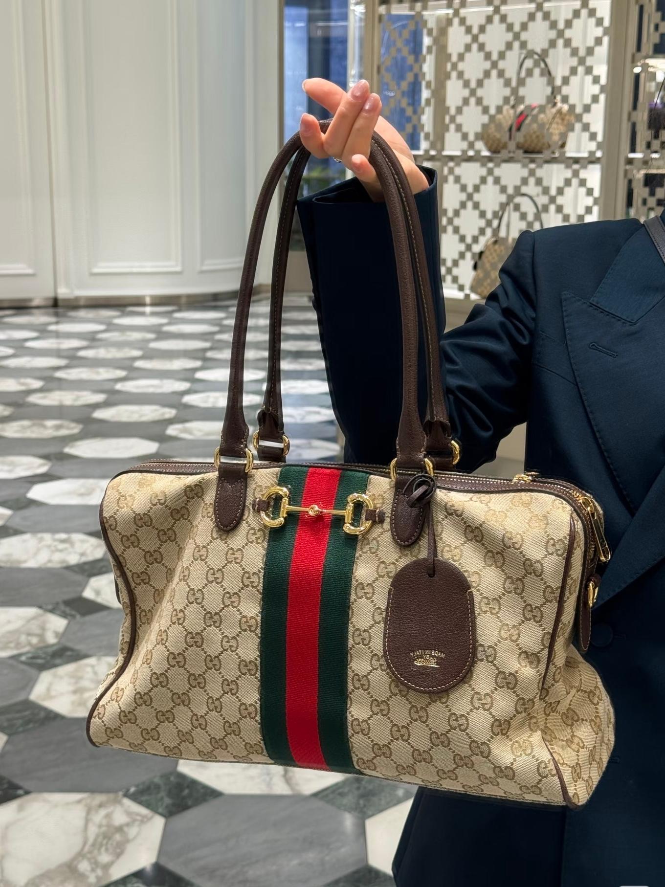 包身結合經典老花圖案+紅綠織帶元素,辨識度極高,再搭配標誌性的馬銜扣五金,整體細節非常到位,低調中又帶有標誌性的存在感。
