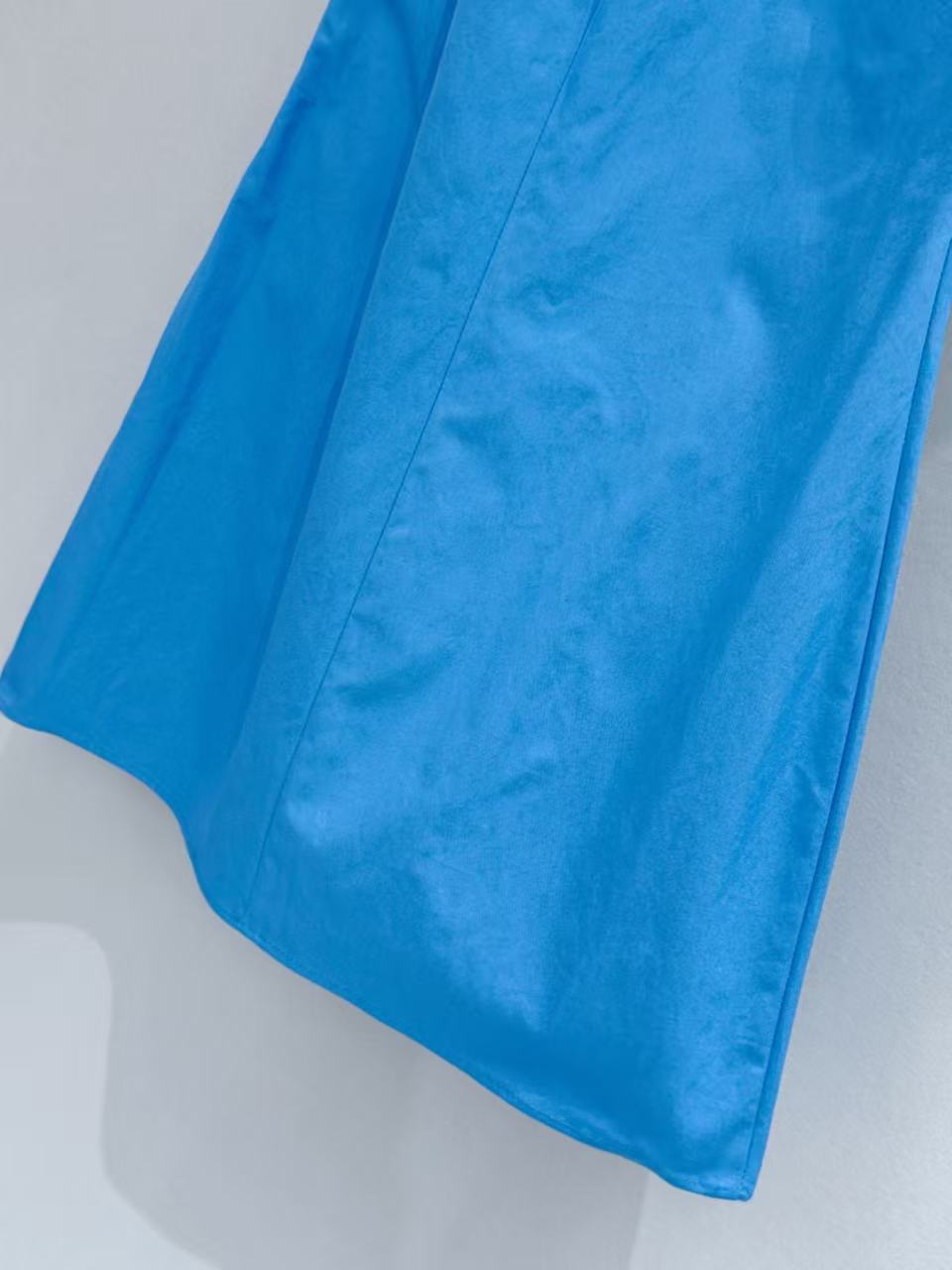 特供限定天藍定染材質: 為了還原 YB 那種清透不沈悶的藍色,面料經過多次對色定染。採用高品質的棉質混紡,手感乾爽輕盈且具備良好的挺度,確保泡泡袖的弧度立體不塌陷。