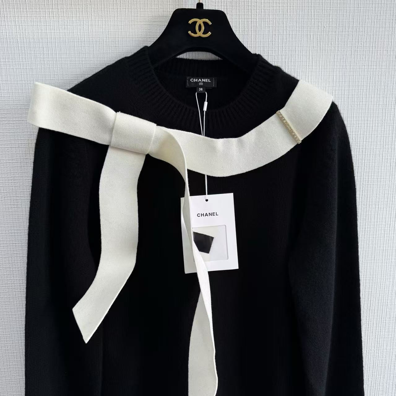 2025早秋新品 C家 25k黑白拼色蝴蝶結羊絨毛衣