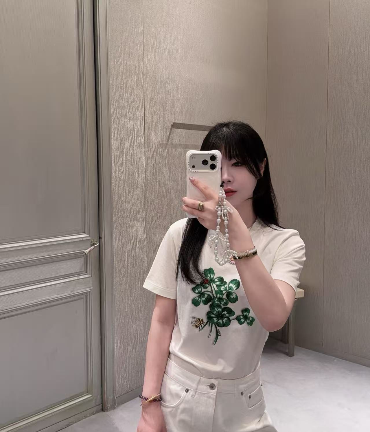 設計亮點在於正面的綠色四葉草搭配精緻的蜜蜂印花,質感細膩且富有層次感,象徵著幸運與大自然的清新氣息。