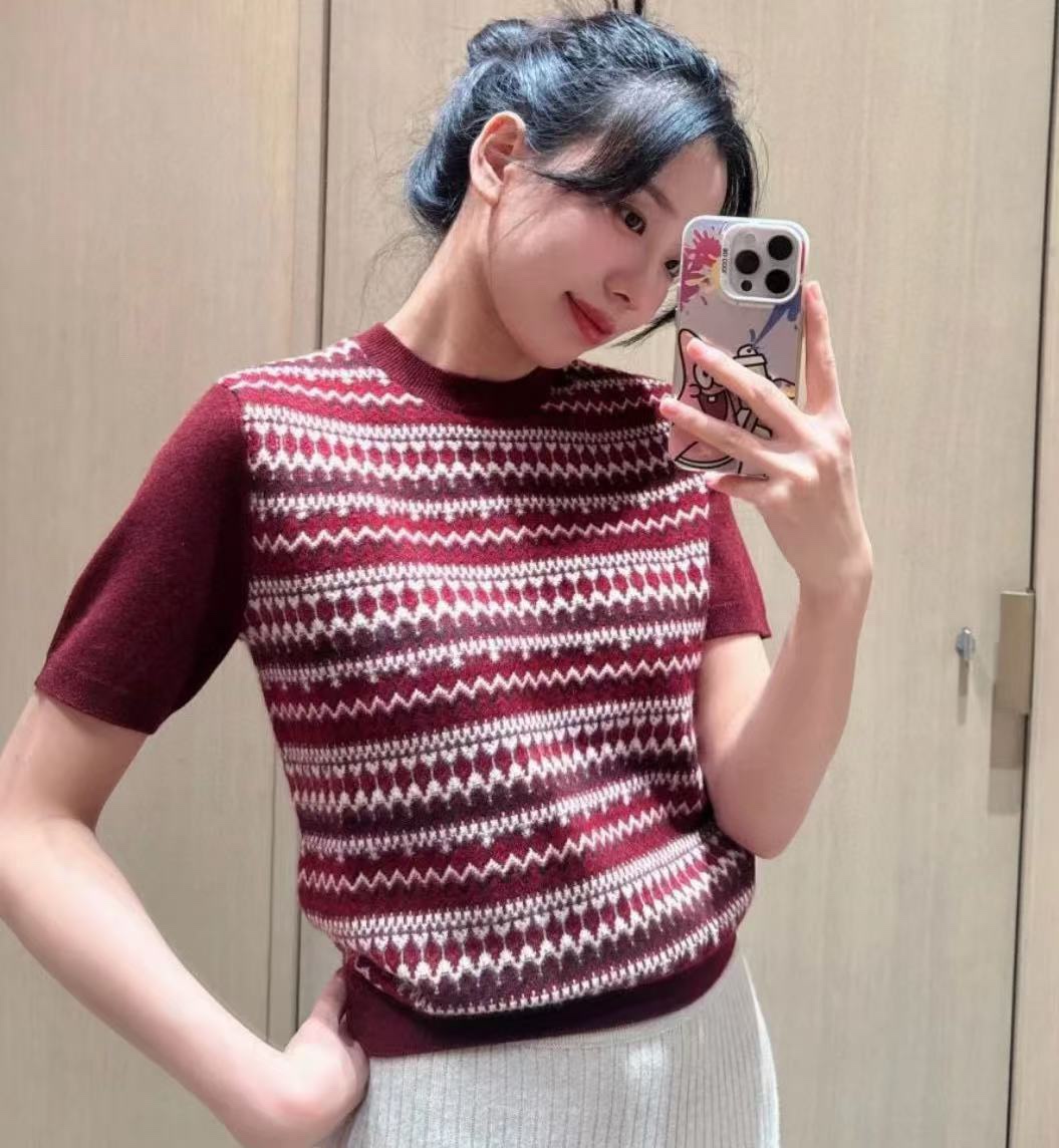 這件提花短袖無論搭配牛仔褲、半裙或內搭外套,皆能展現不凡氣質,是衣櫥中不可錯過的經典單品!
