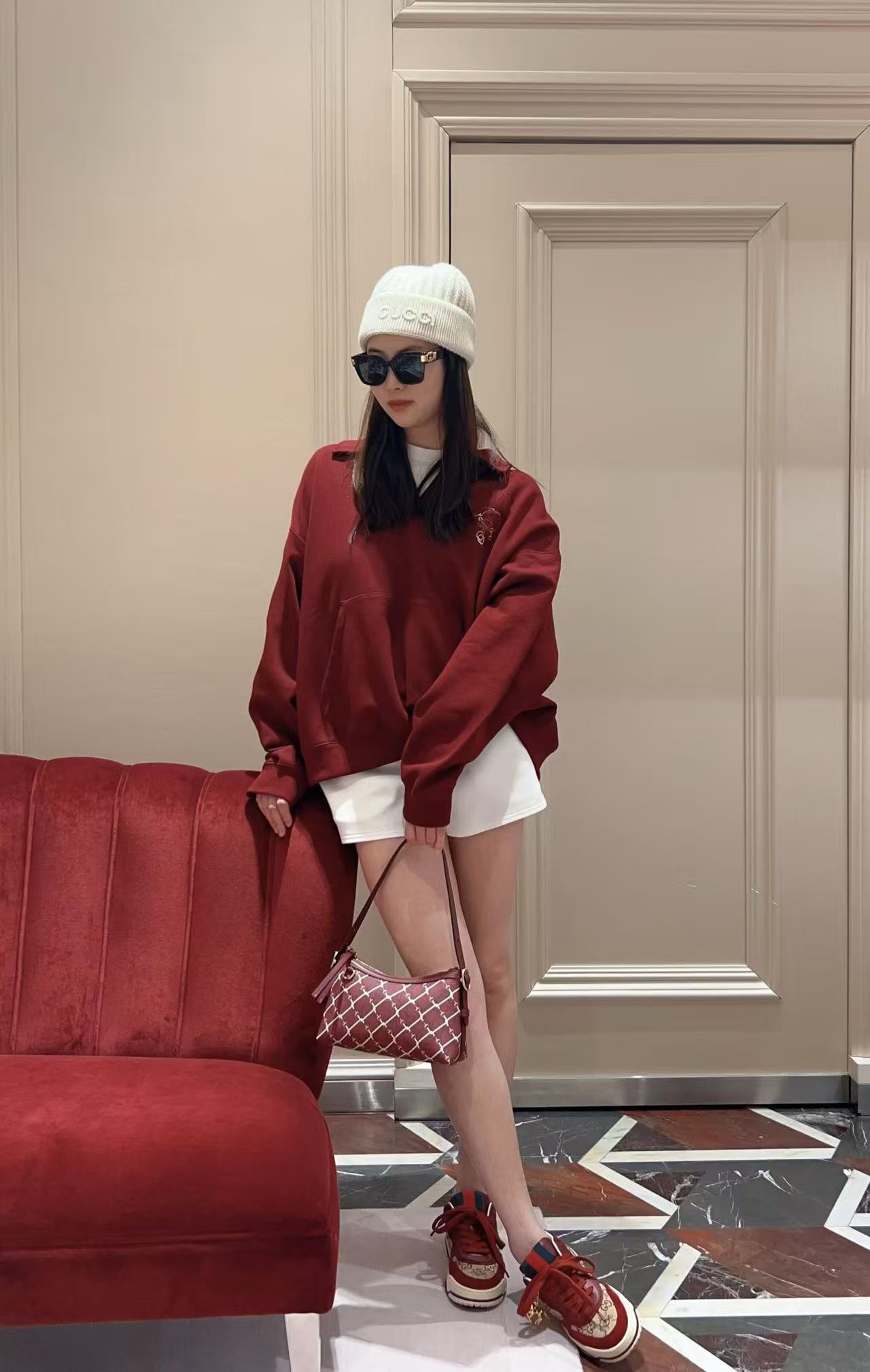 經典馬銜扣刺繡點綴在衣身,針腳細膩到不行,還特別融入新年紅韻,低調奢華感拉滿!