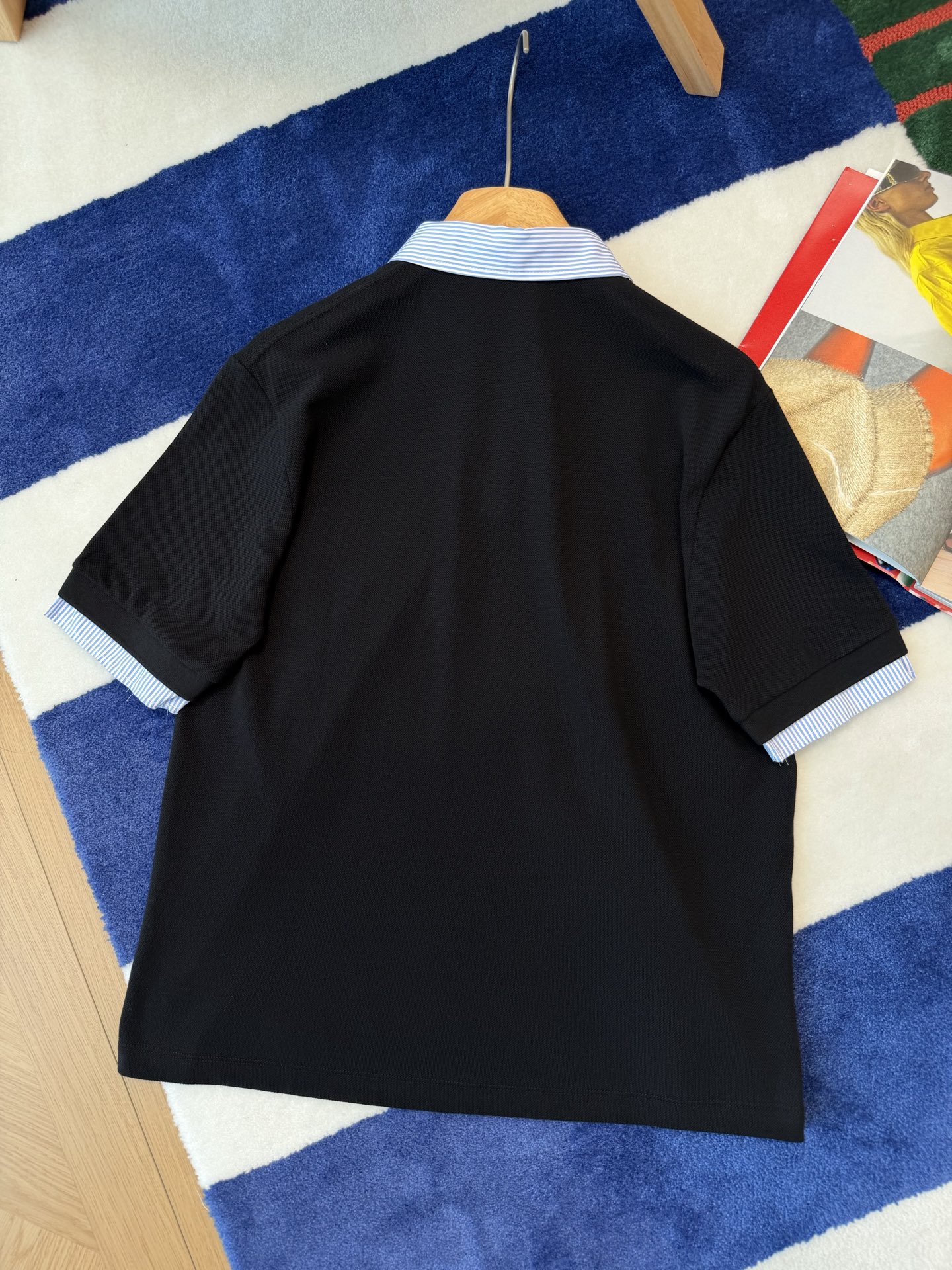 2026春夏新品 Miu家 拼接條紋翻領Polo衫