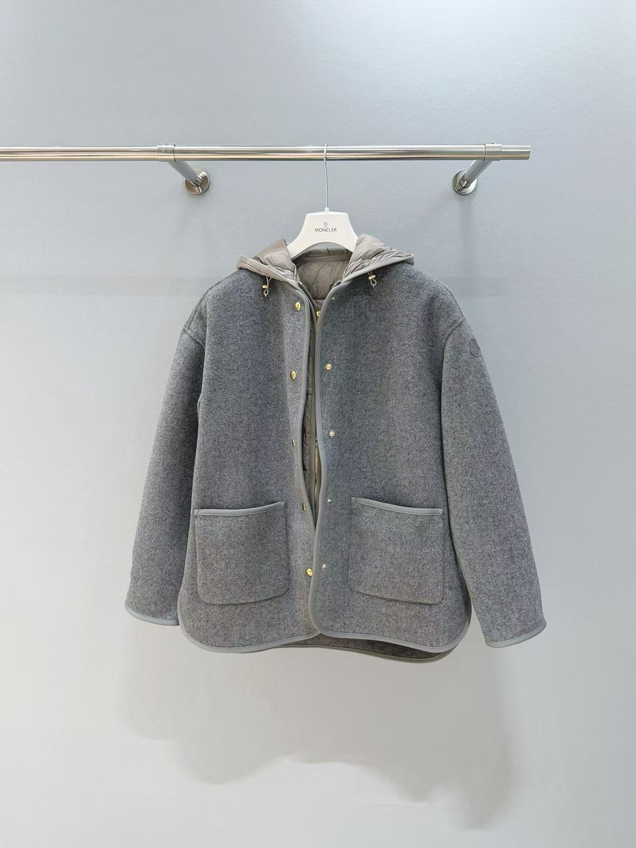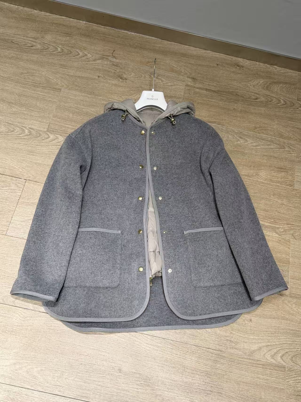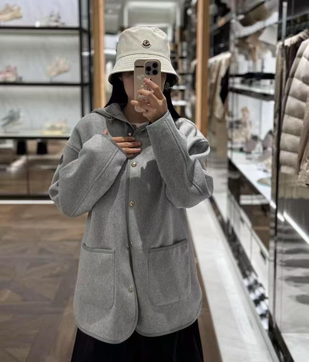 灰色羊毛羊絨混紡材質,搭配金色紐扣,質感真的沒話說。
