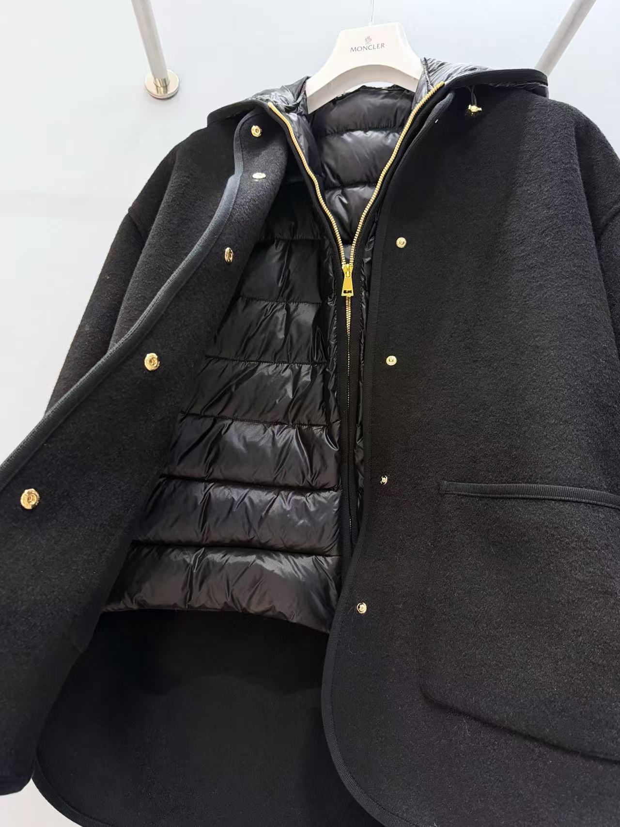 外層是細膩的羊毛羊絨混紡,觸感柔軟又帶一點貴氣;內膽則是高填充羽絨馬甲,保暖力很夠,拆下來單穿也完全沒問題。