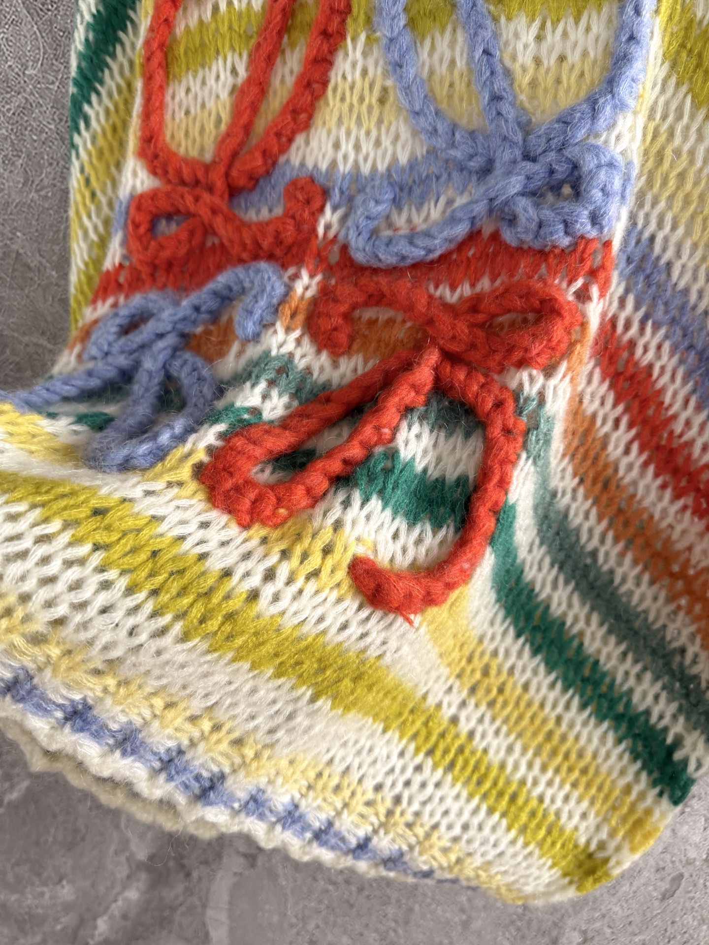 彩虹色的設計,隨便搭一件素色打底就能展現出豐富層次感,無論是牛仔褲、長裙或是小短褲,都能穿出不同風格。慵懶卻不失精緻,特別適合喜歡隨性又注重細節的女孩。