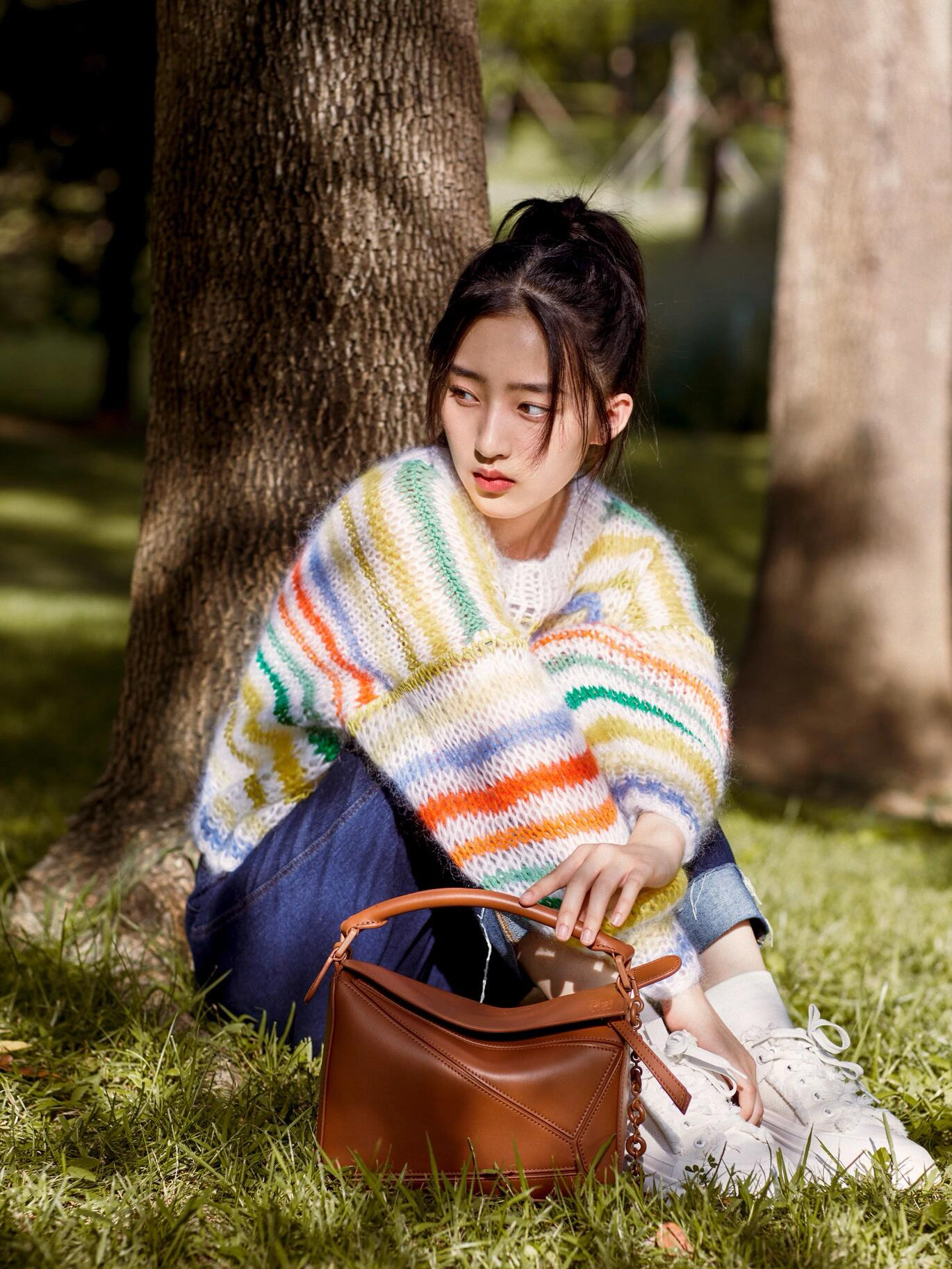 正面還有手工編織的麻花 logo 細節,質感精緻,完全就是 ins 博主最愛的那種氛圍穿搭。