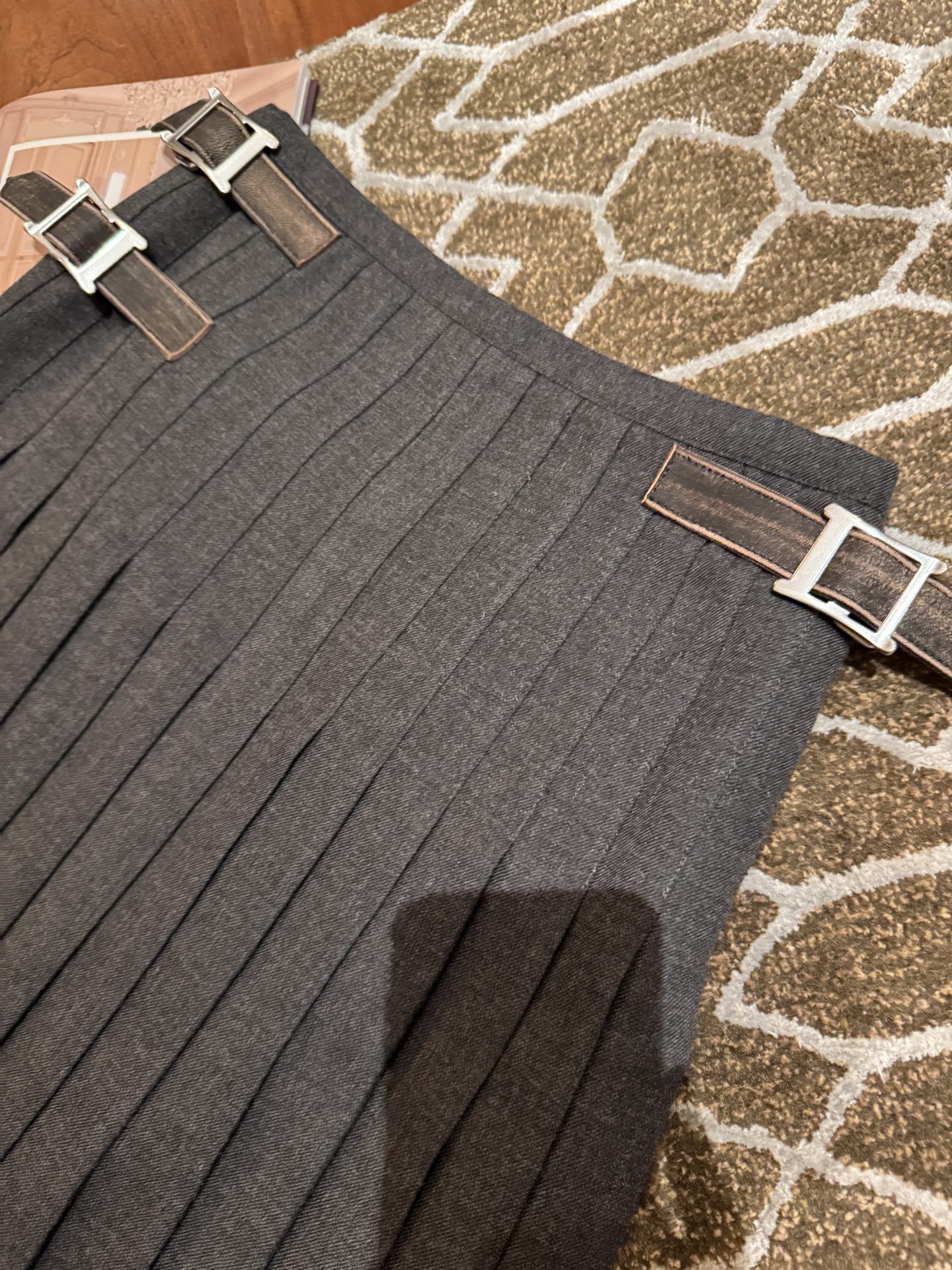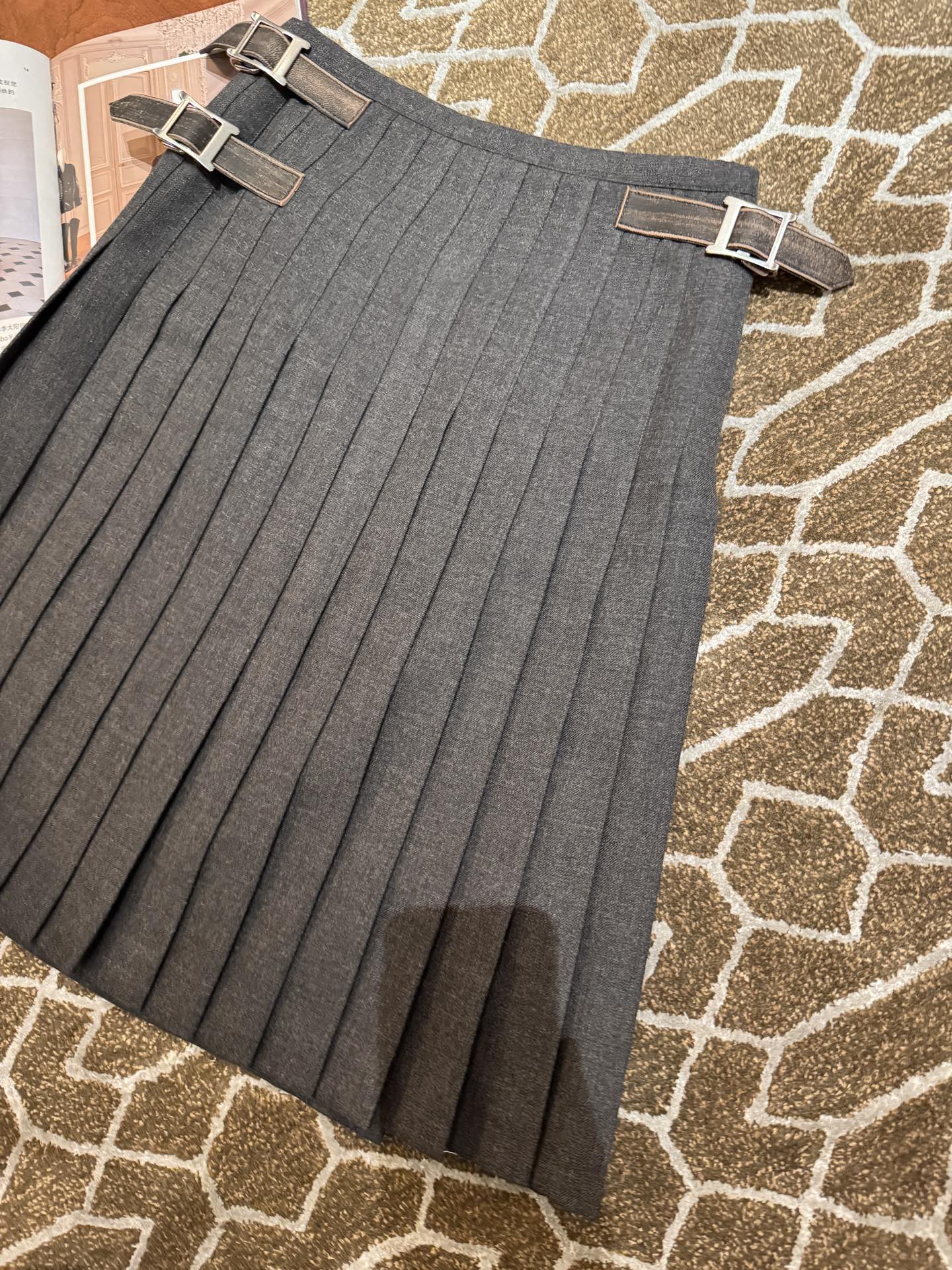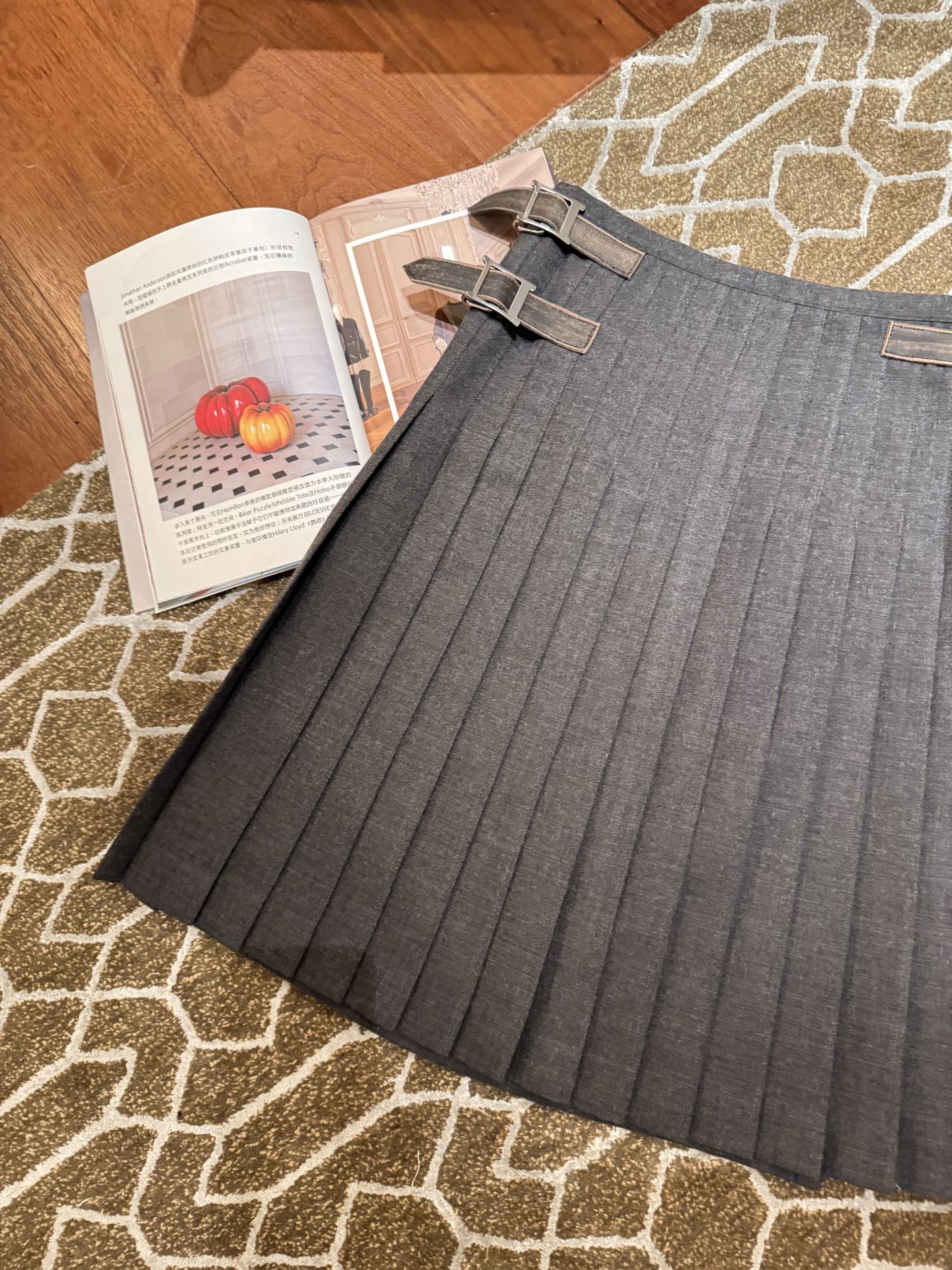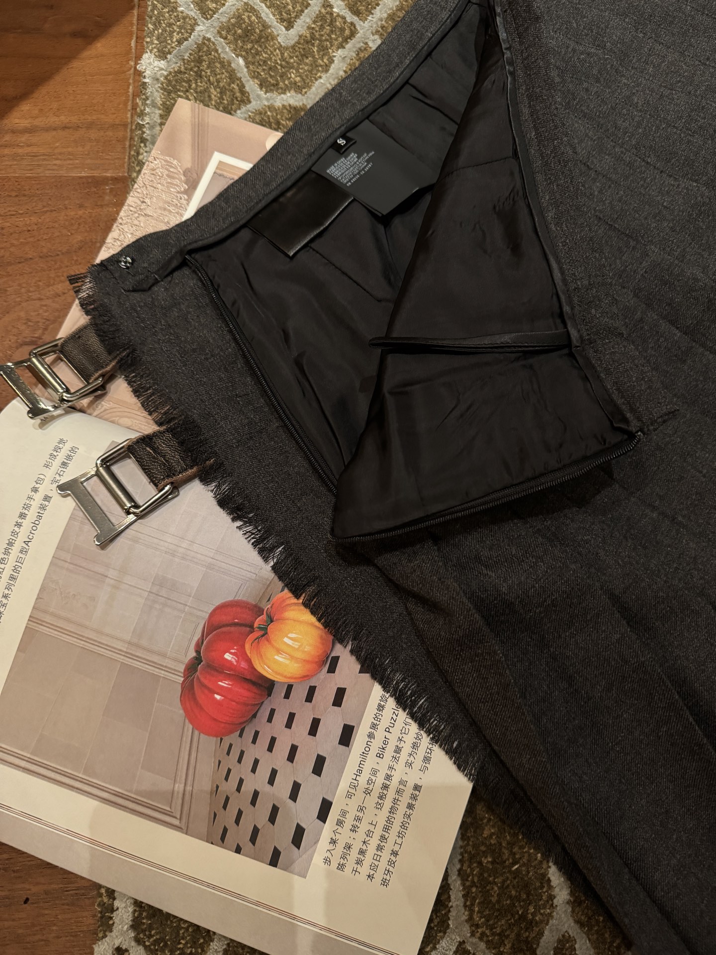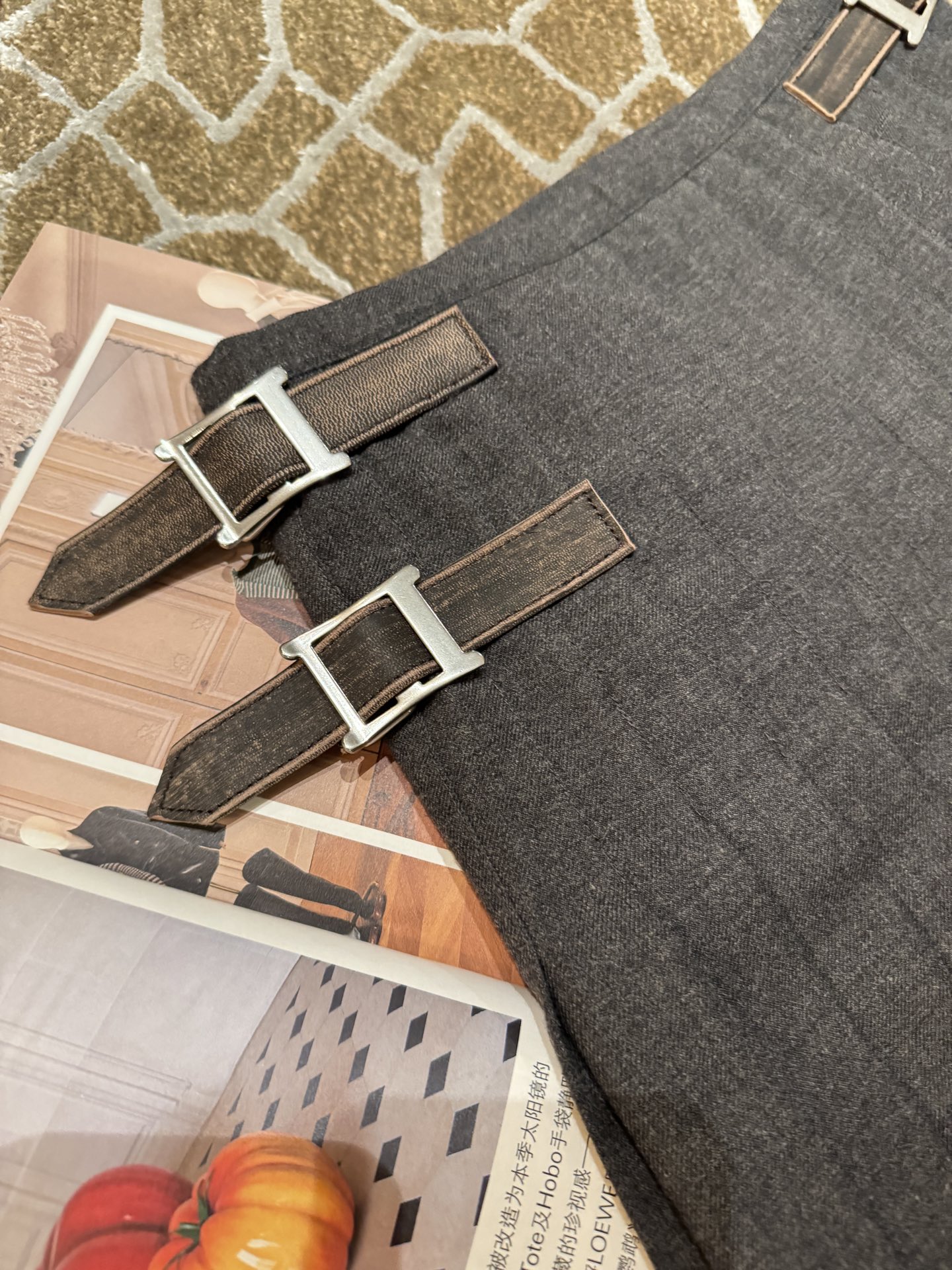整體版型微A字、層次自然,隨步伐輕輕搖曳時,百褶線條超有節奏感,細節質感拉滿。腰部皮扣設計採用定製小羊皮做舊處理,低調中又藏著高級氣息,完美平衡了復古與現代。