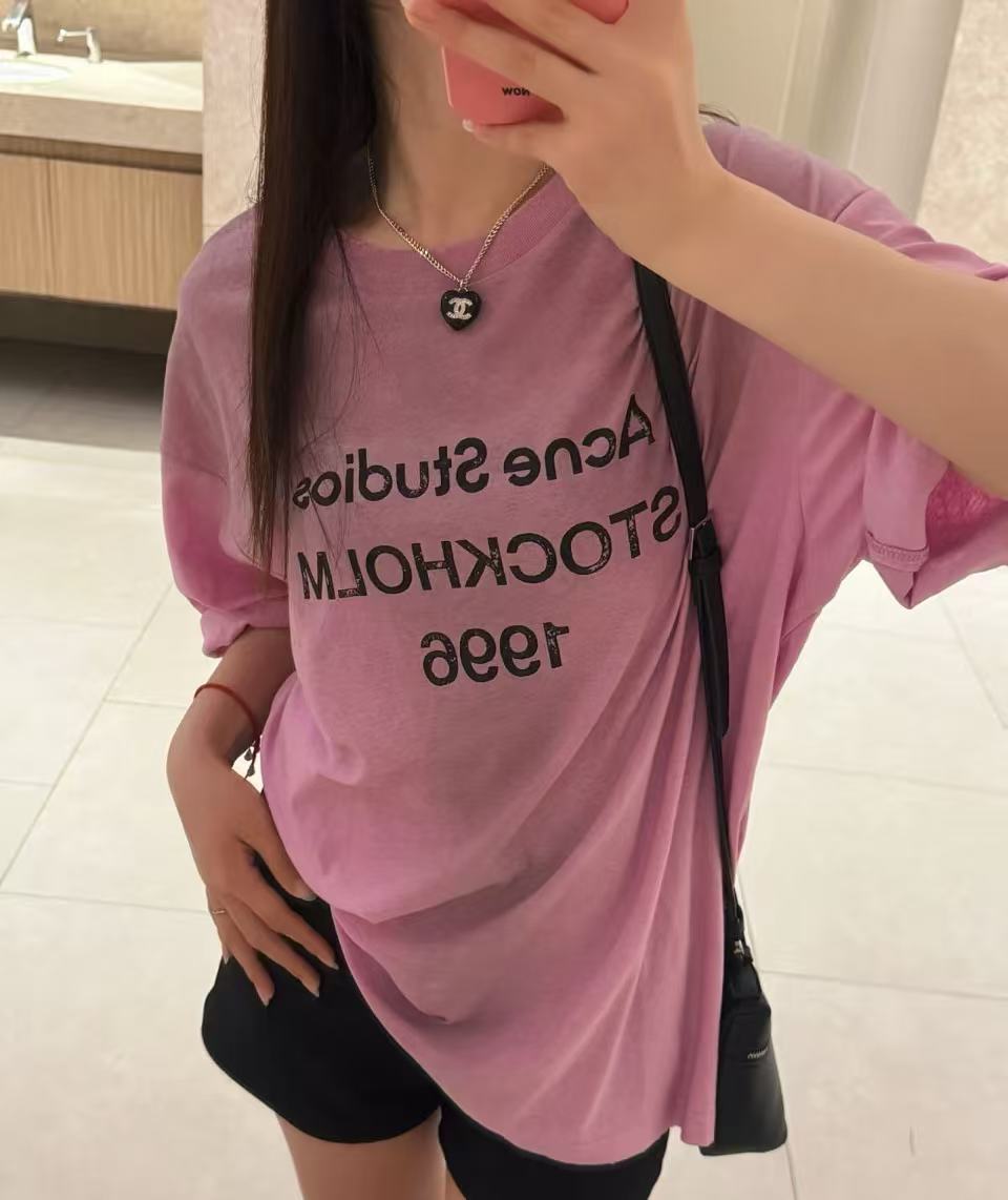 2026早春 AC家 經典字母做舊粉色短袖