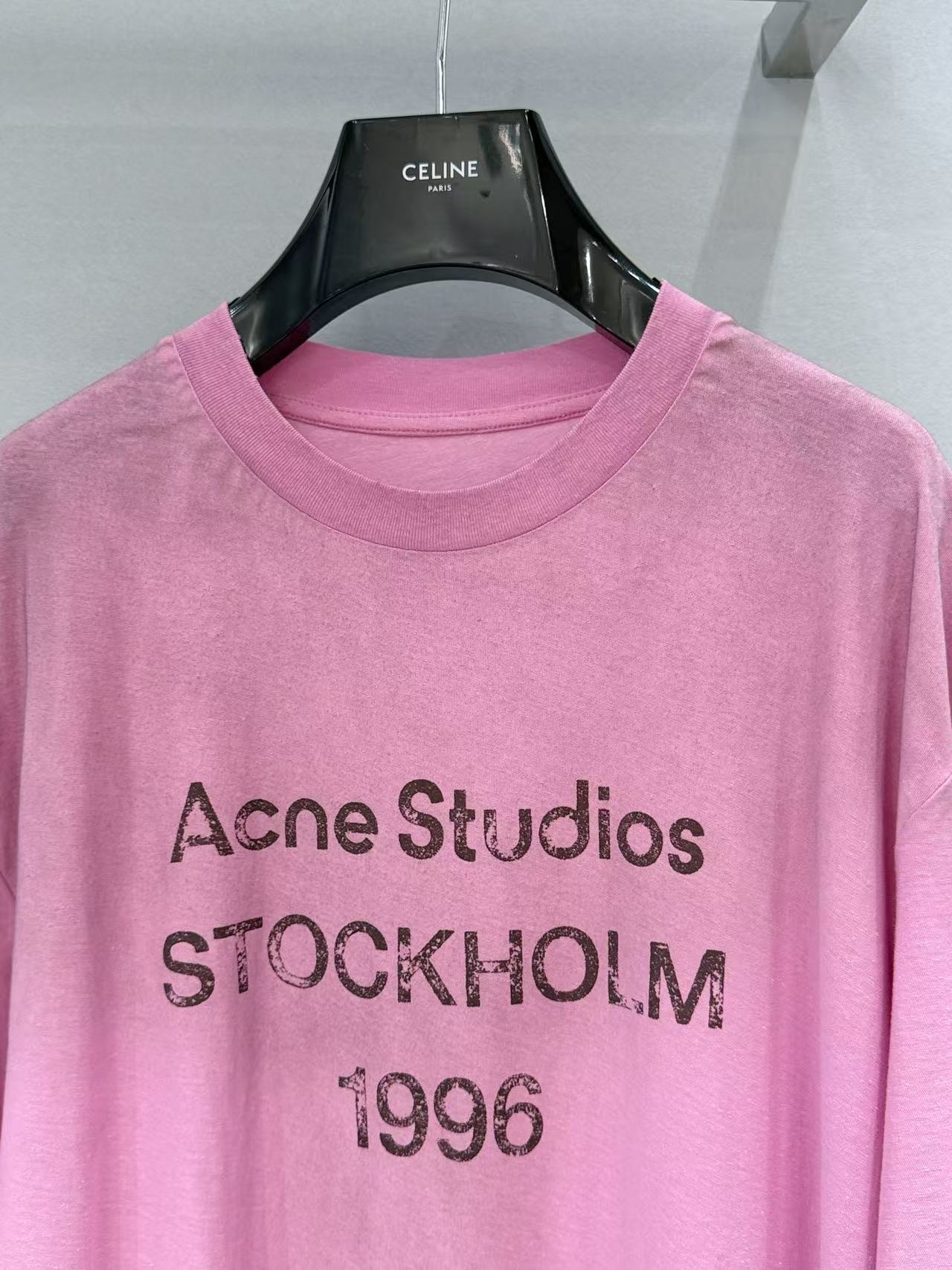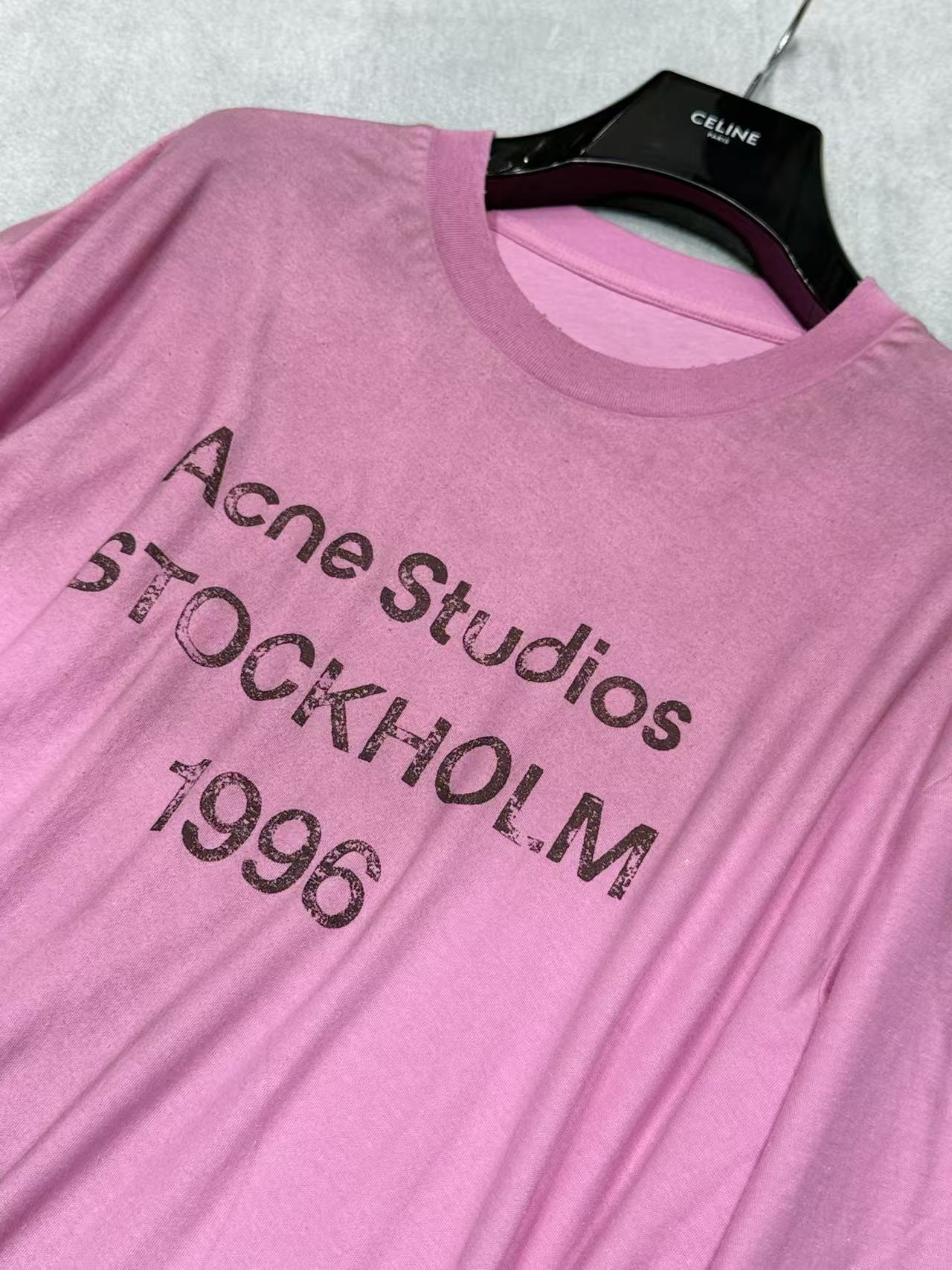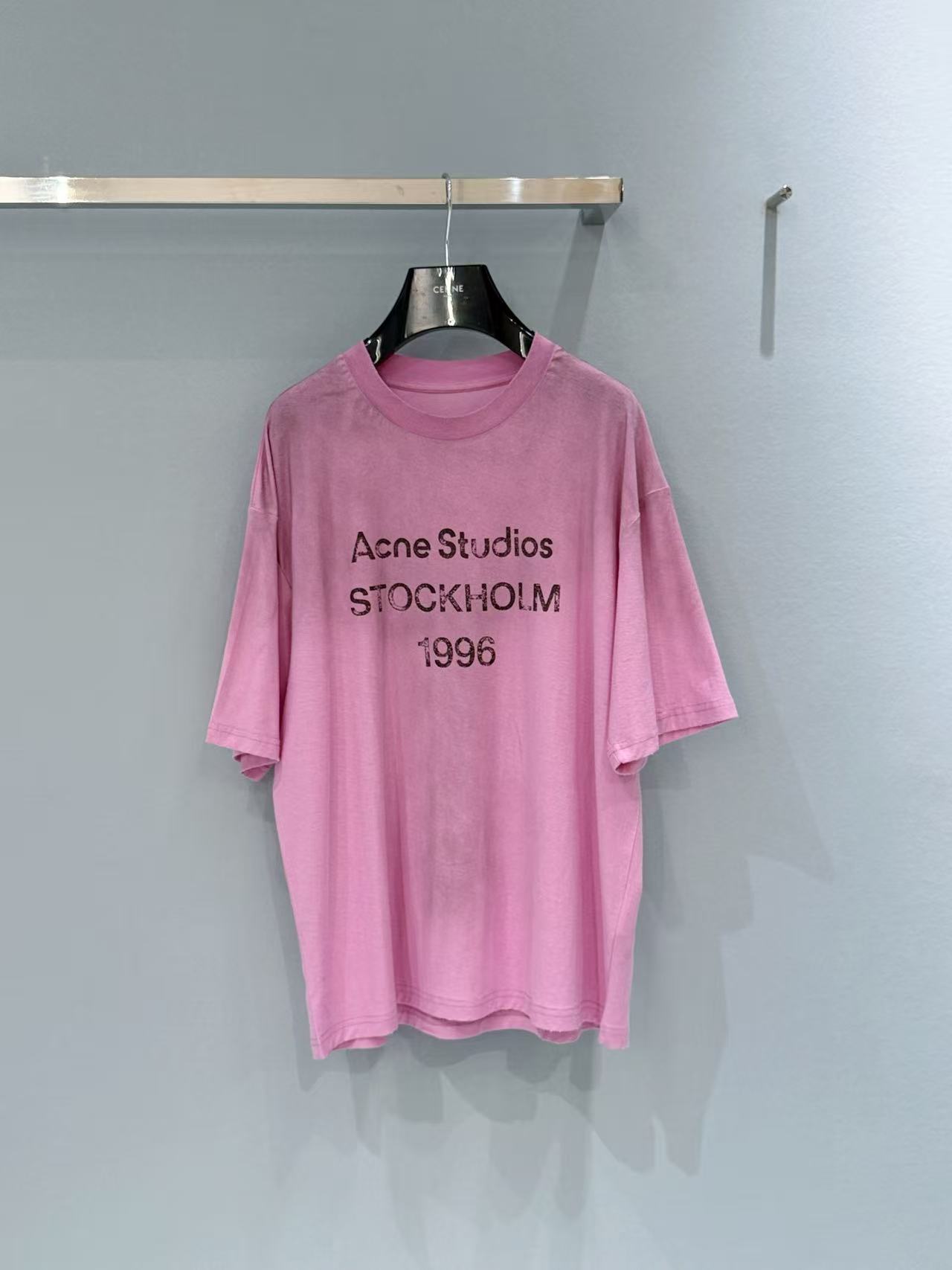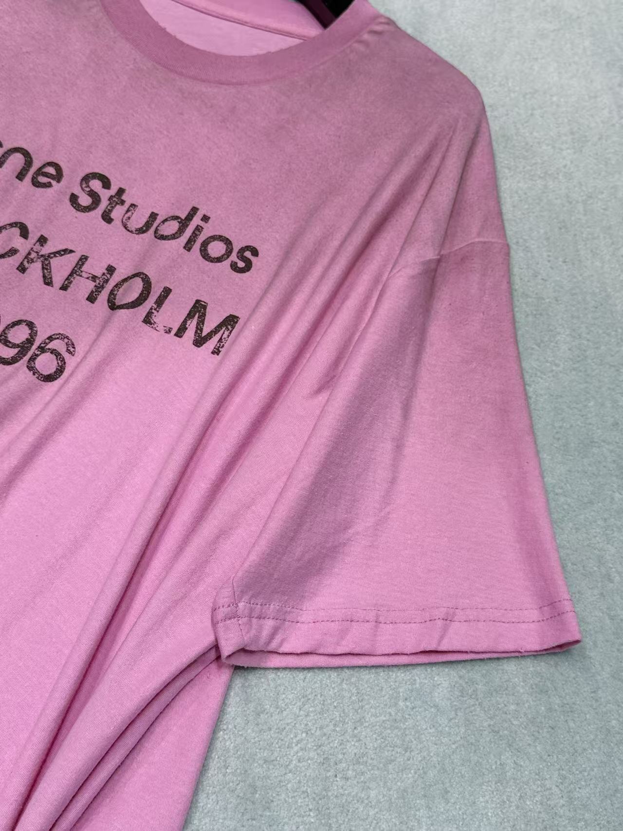 胸前的 「STOCKHOLM 1996」字母印花 帶有自然的龜裂做舊效果,細節處展現出強烈的品牌辨識度與藝術質感。