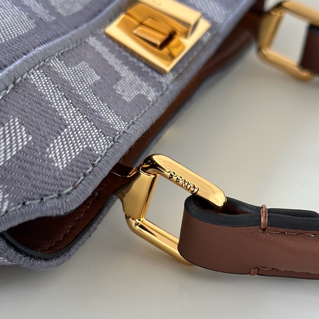 再推全新 petite 款式,這次以牛仔提花材質結合經典 FF 標誌元素,視覺上充滿時髦層次感。