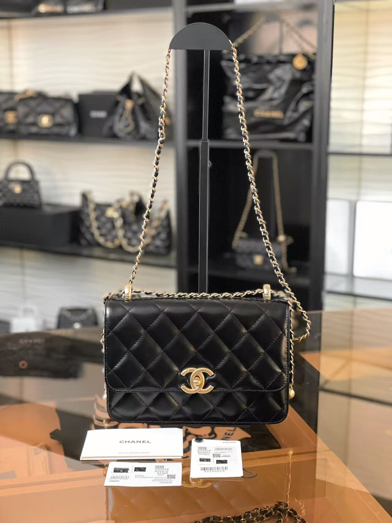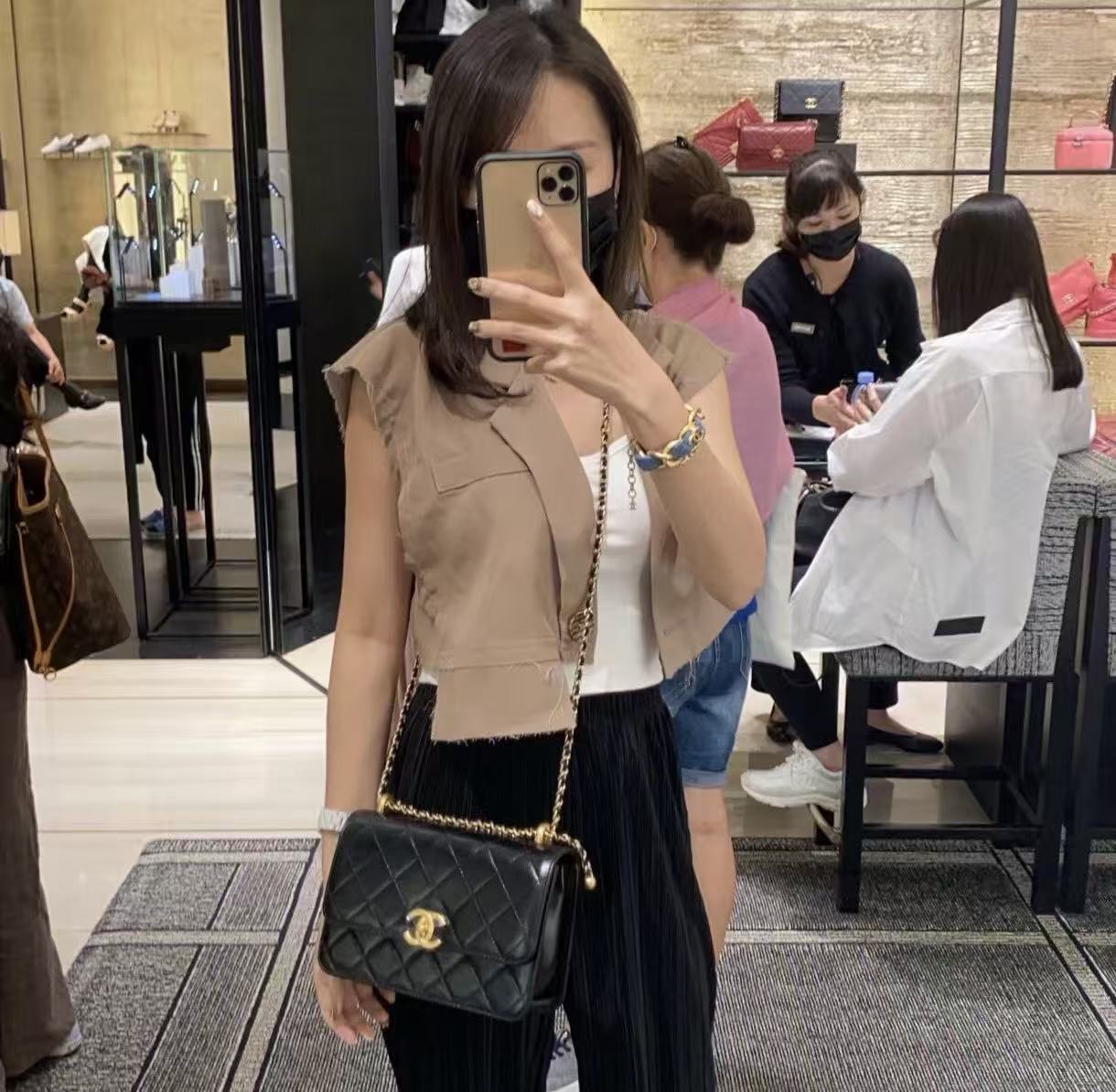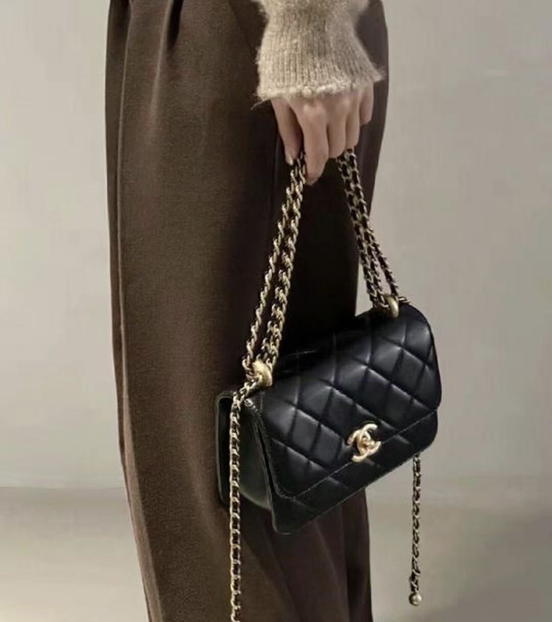 這次分享的黑色雙金珠口蓋包,不僅延續了品牌標誌性的優雅廓形,更透過鍊條上的雙金珠工藝,完美解決了亞洲女性在背帶長度上的痛點。