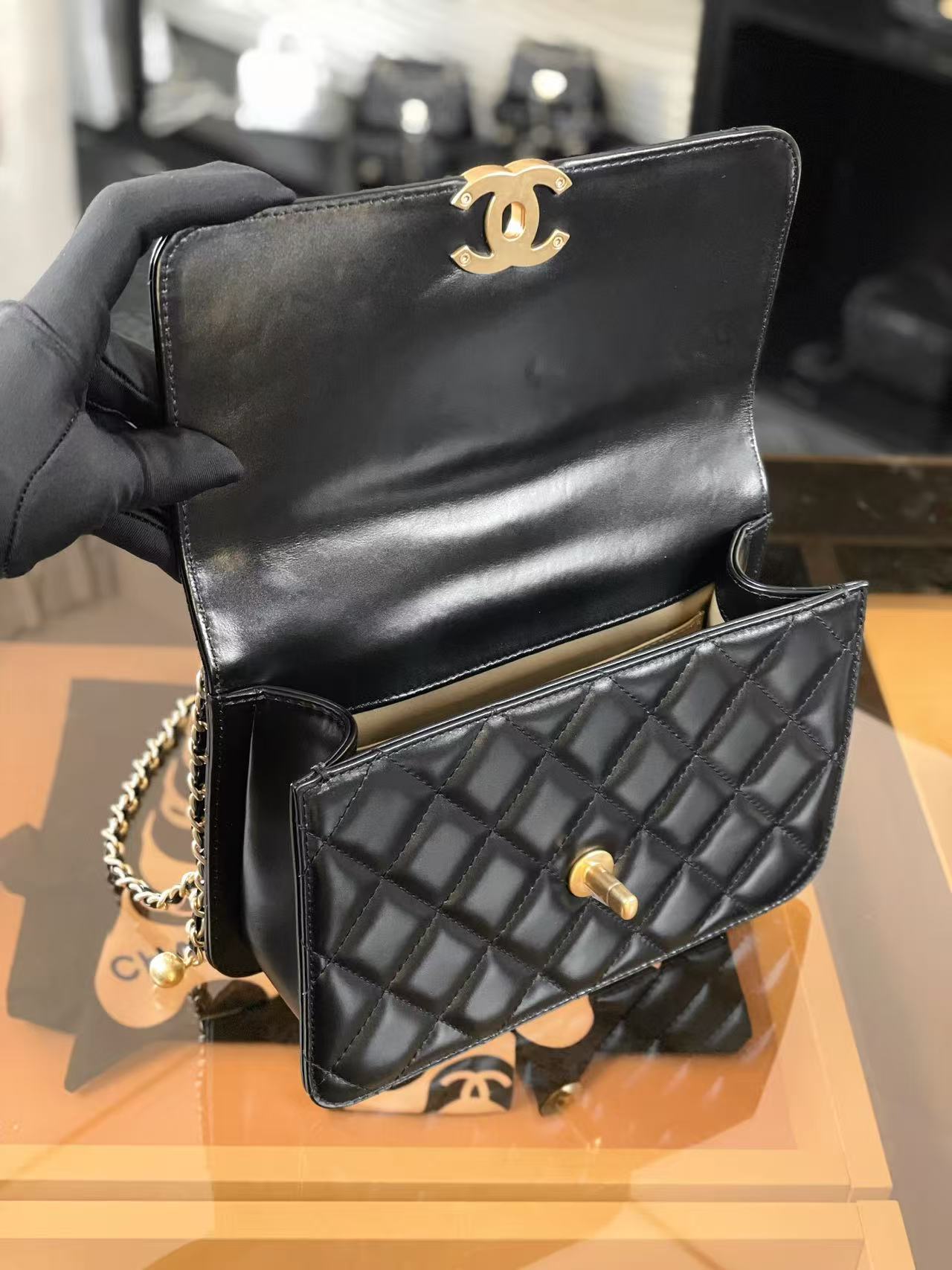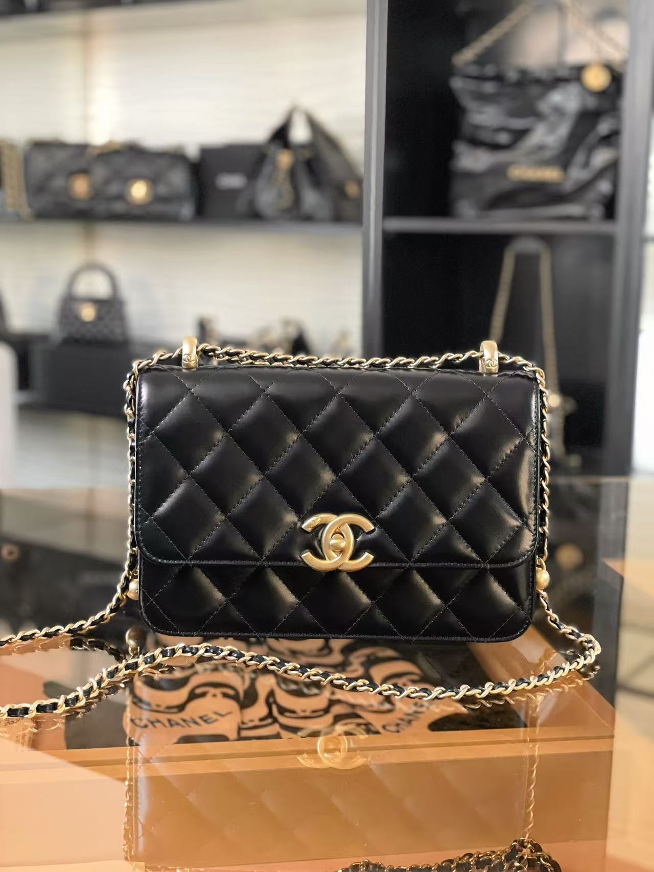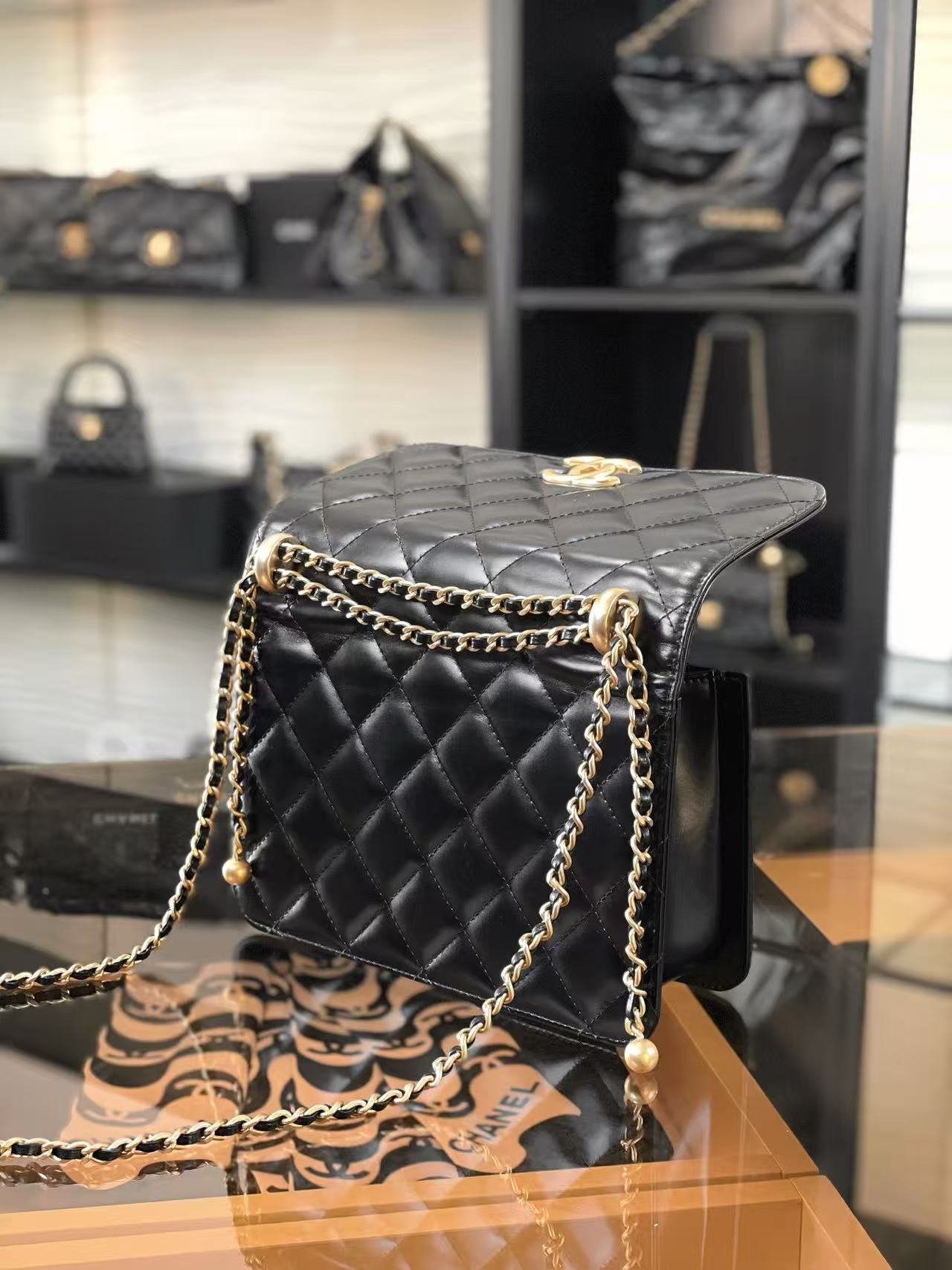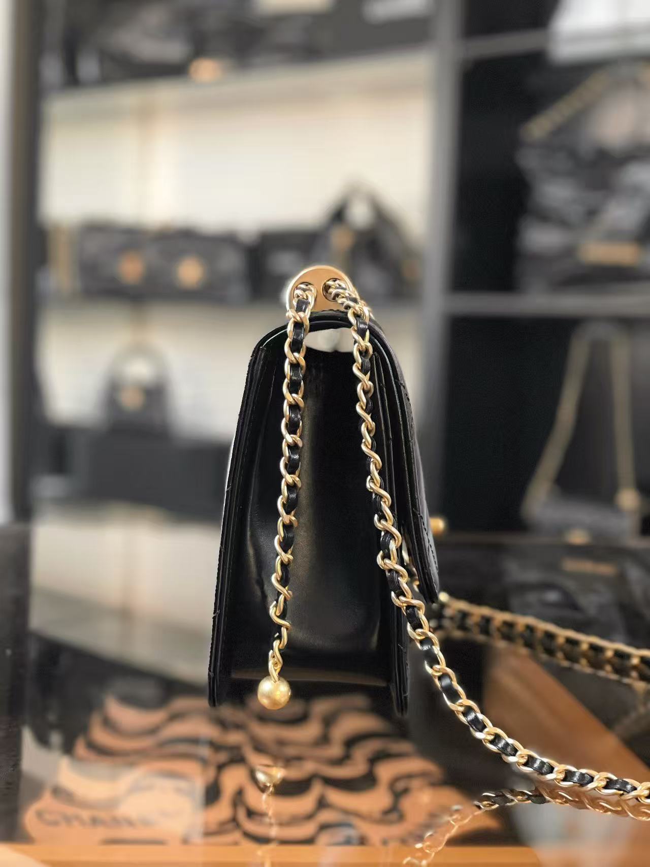 CF 雙金珠口蓋包:調節美學的極致!解析小金珠鍊條與光亮小牛皮的優雅變奏