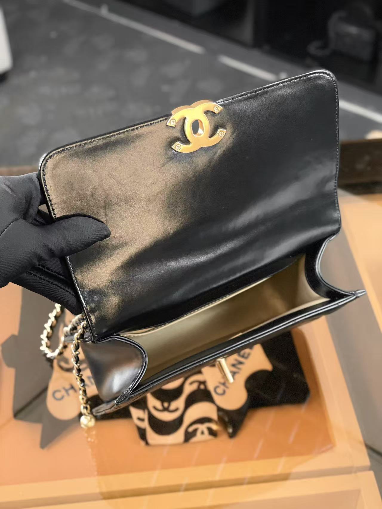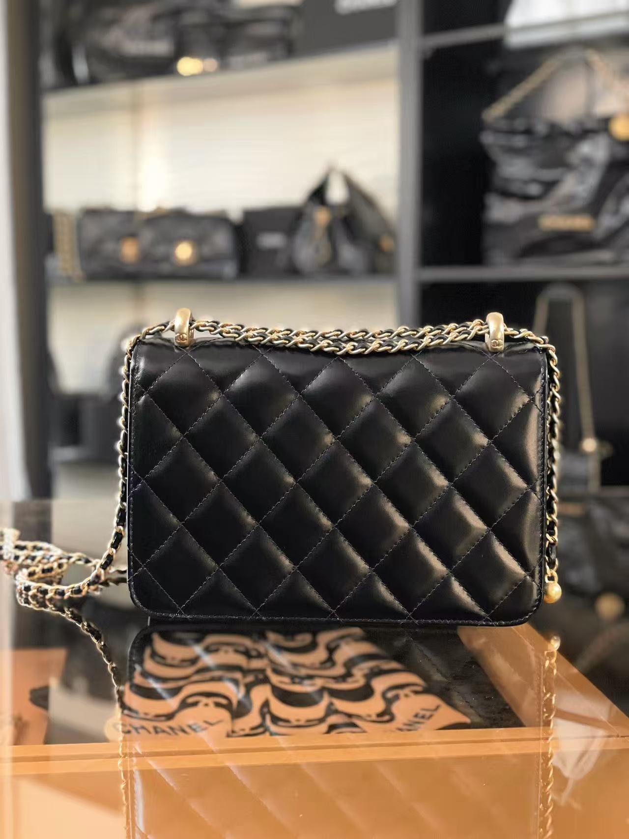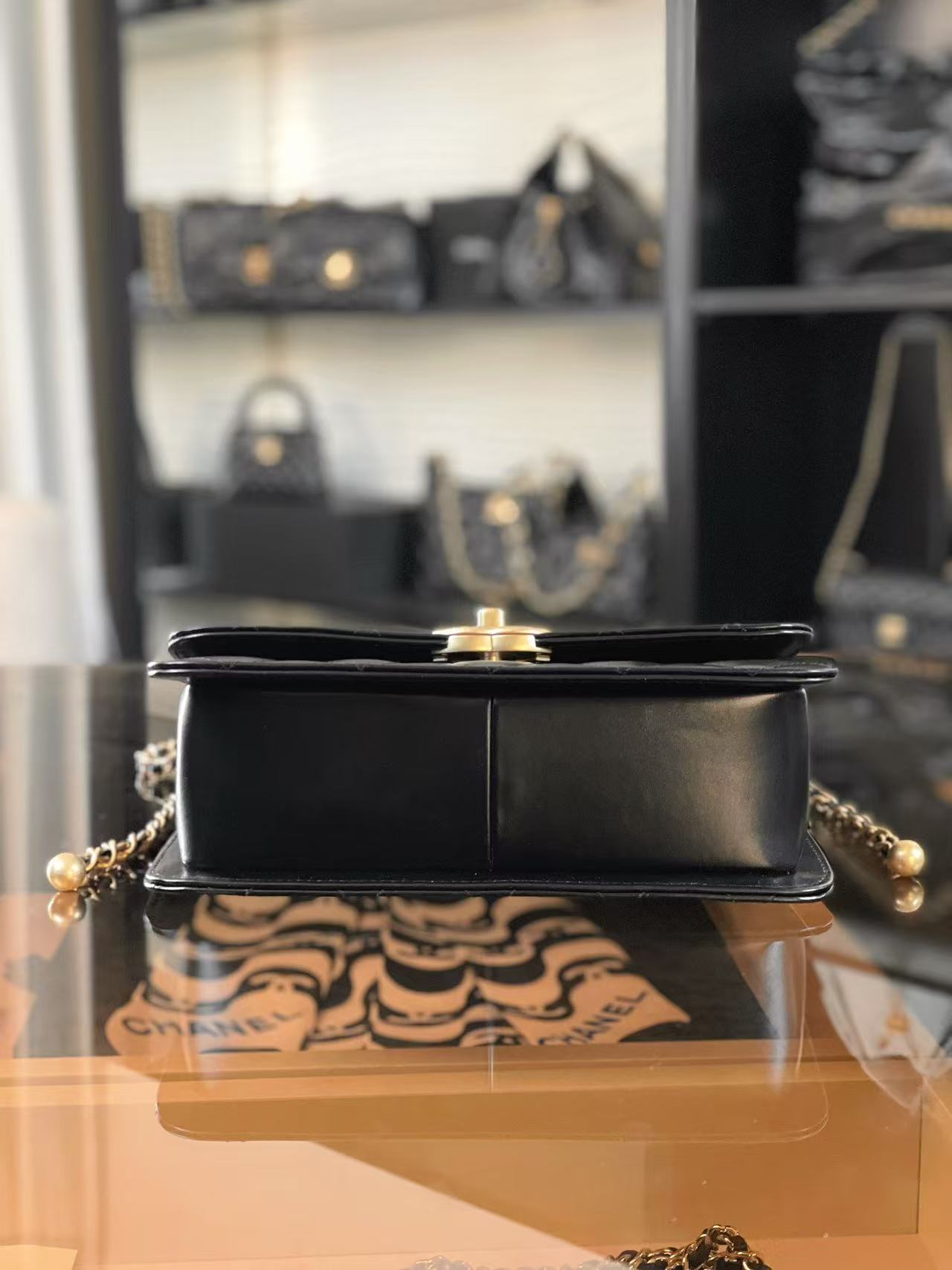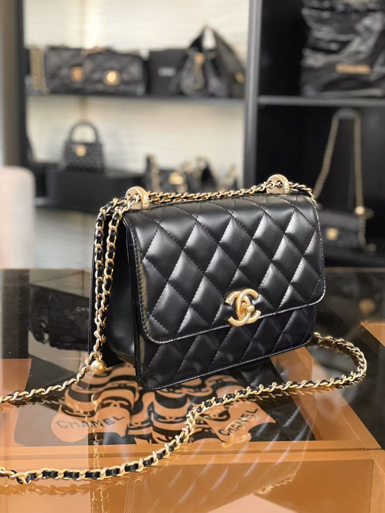 CF 雙金珠口蓋包:調節美學的極致!解析小金珠鍊條與光亮小牛皮的優雅變奏