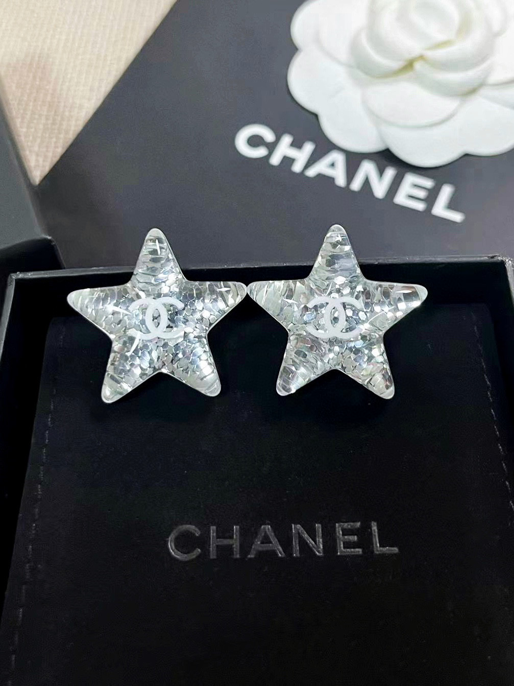 2025早春新品 C家星星亮片壓克力耳環