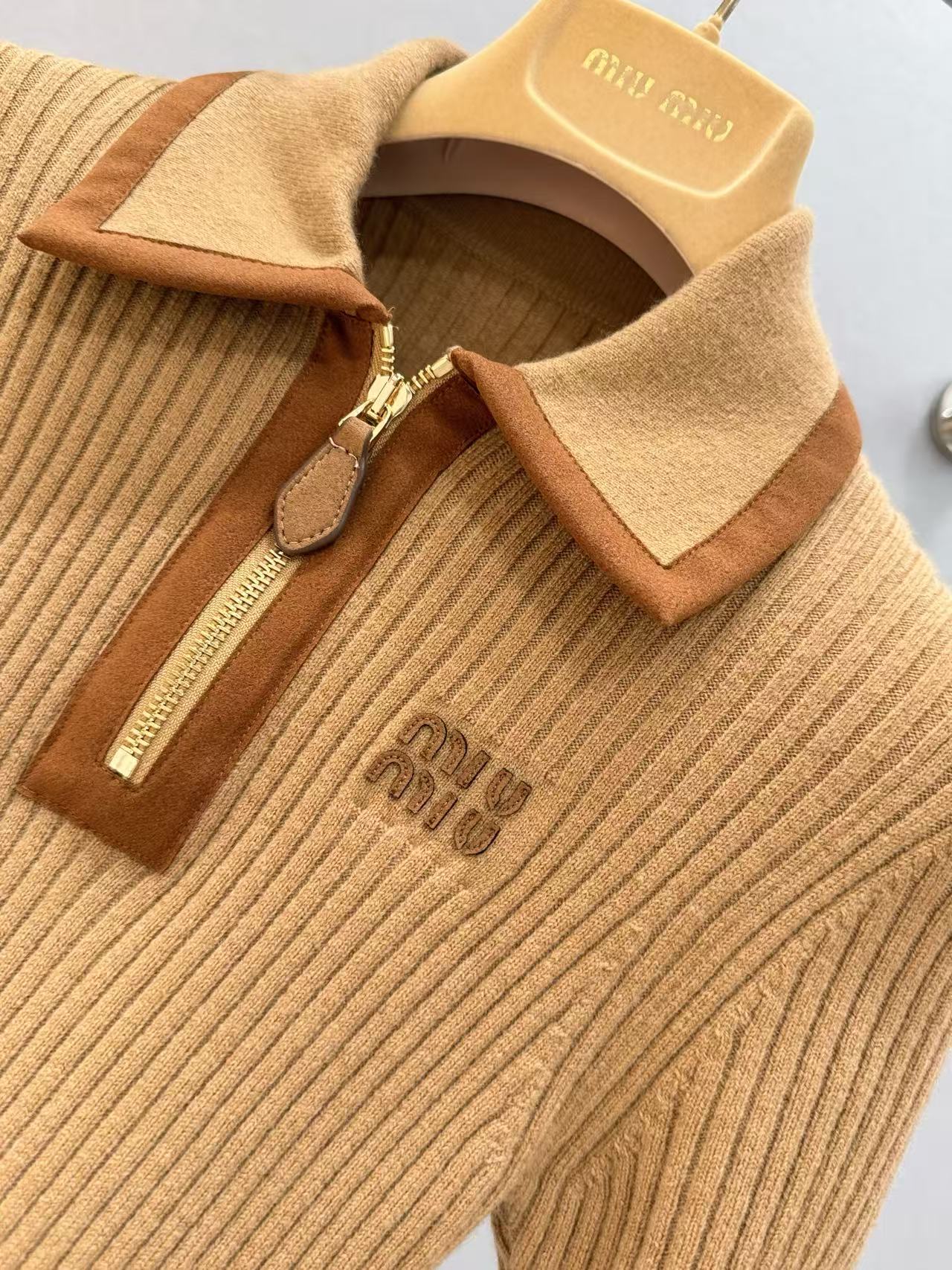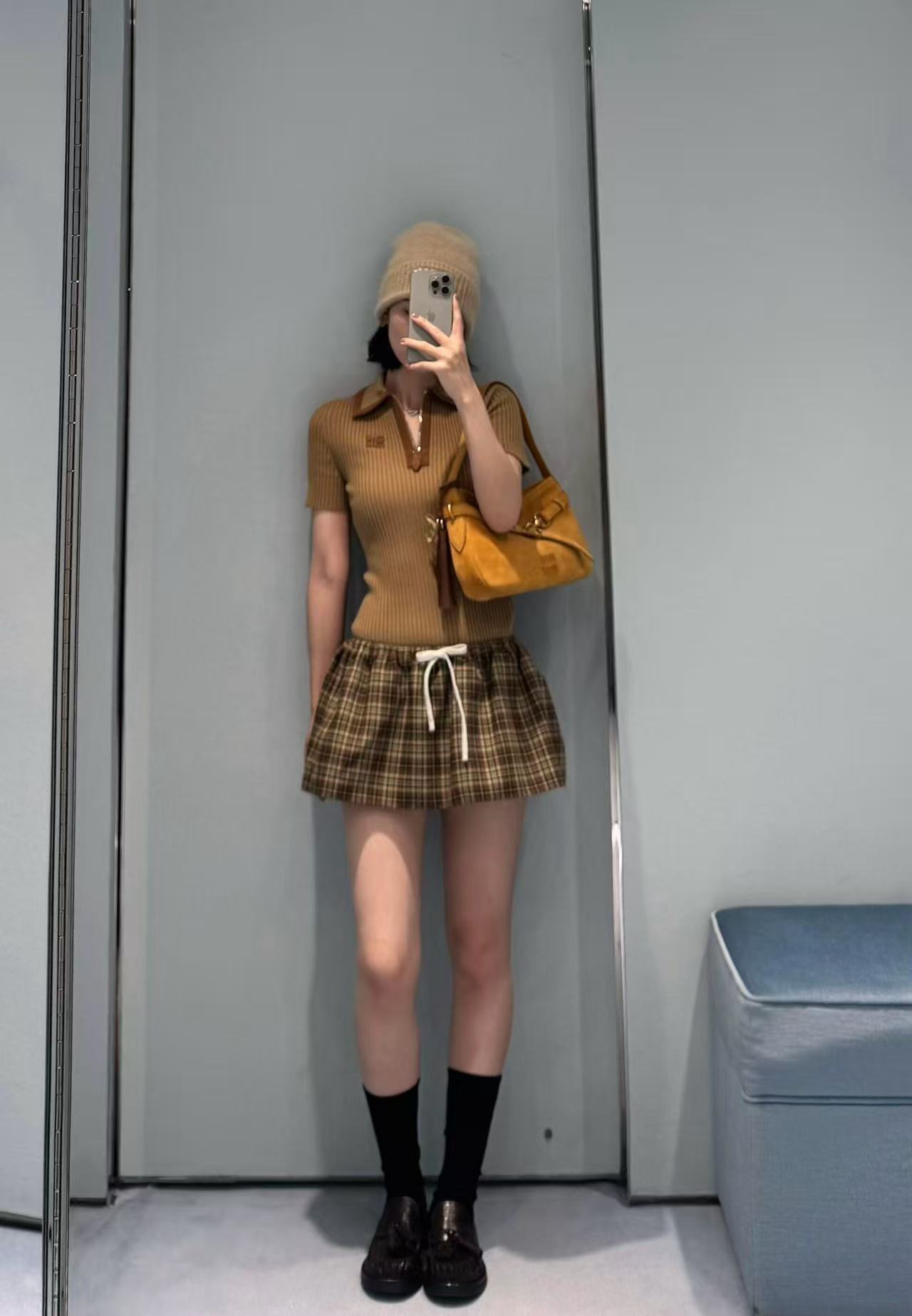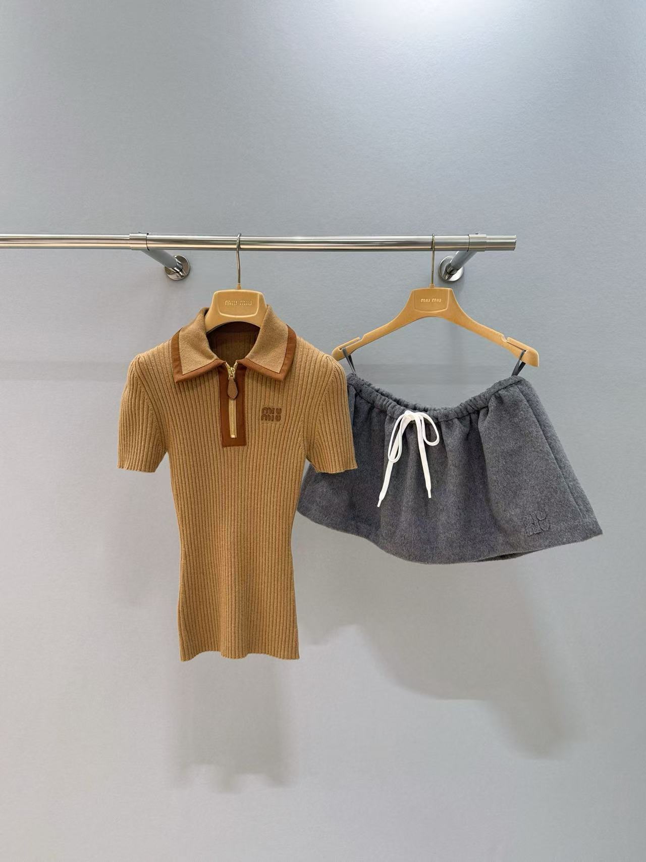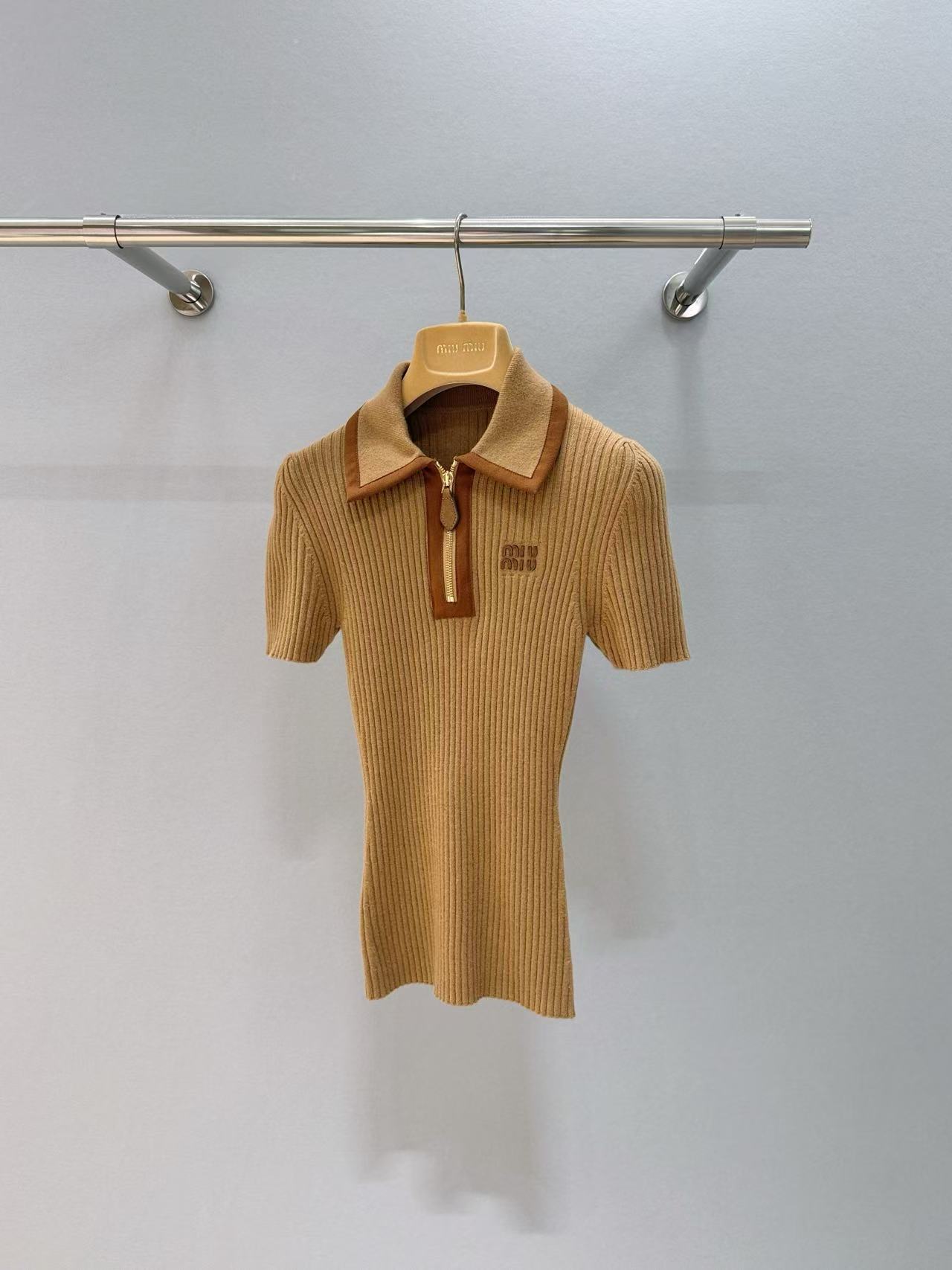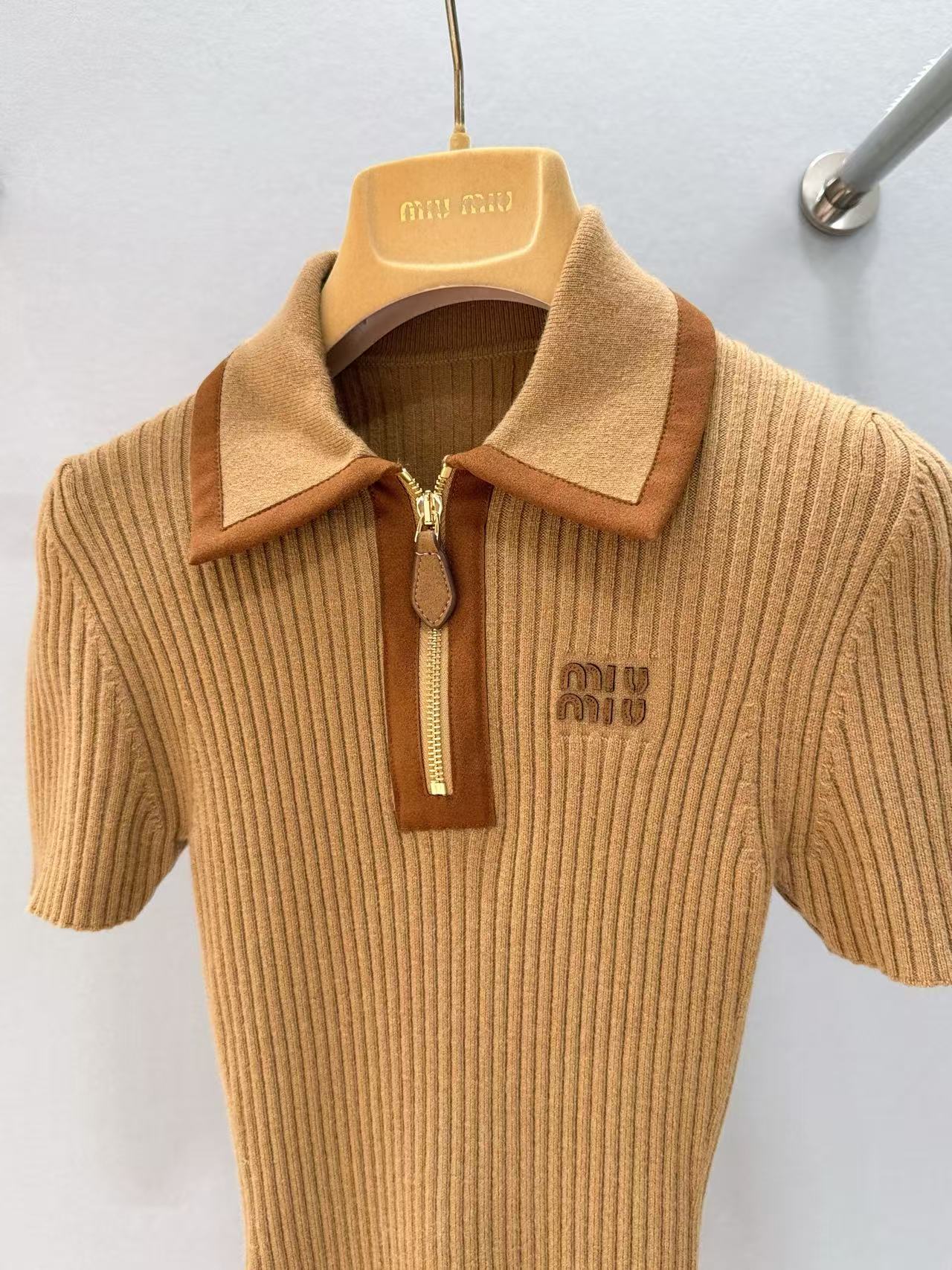 2025早秋 MIU家 羅紋針織短袖羊絨短袖