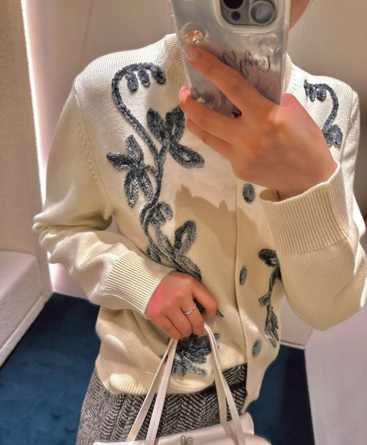 整件是滿版的立體花朵提花,遠看低調內斂,近看超級精緻,帶著滿滿的法式温柔高級感~版型是微寬鬆的落肩設計,