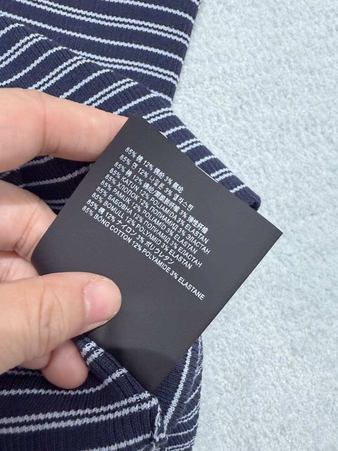 簡單的黑藍條紋配色,經典耐看且完全不退流行,胸前點綴的標誌性 Logo 直接把品牌的高級質感拉滿。
