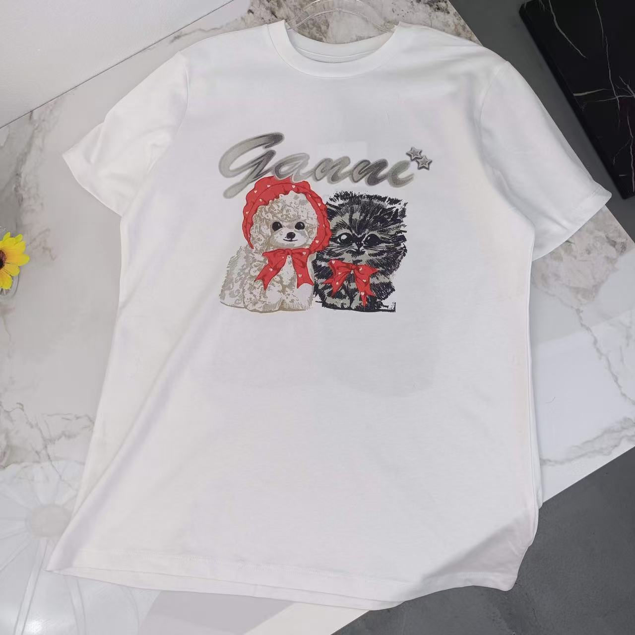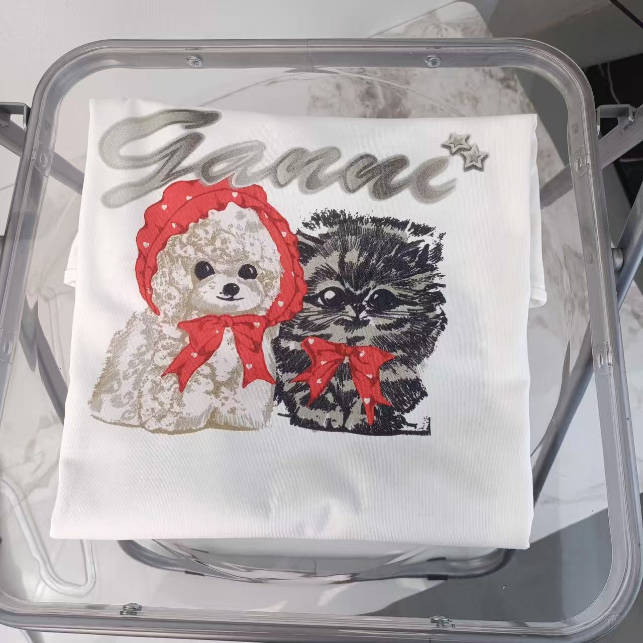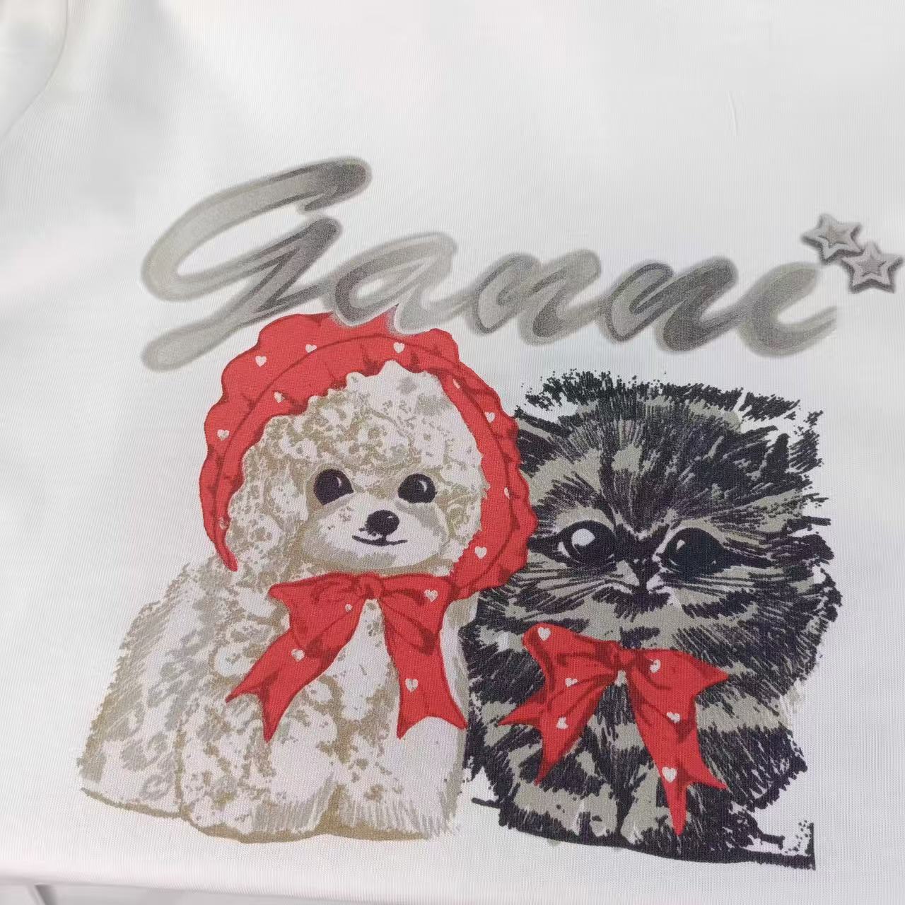 2025早秋新品 Ganni家 小狗貓咪圖案寬鬆短袖