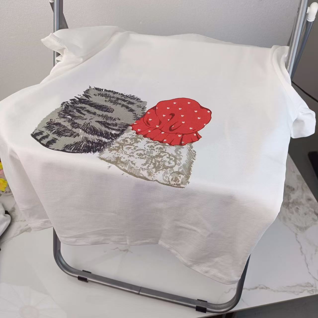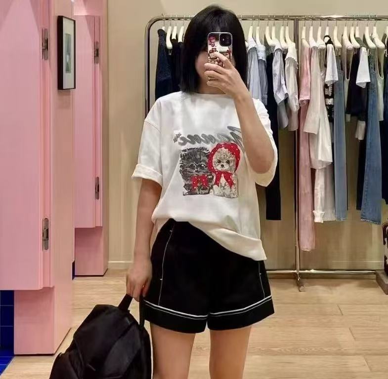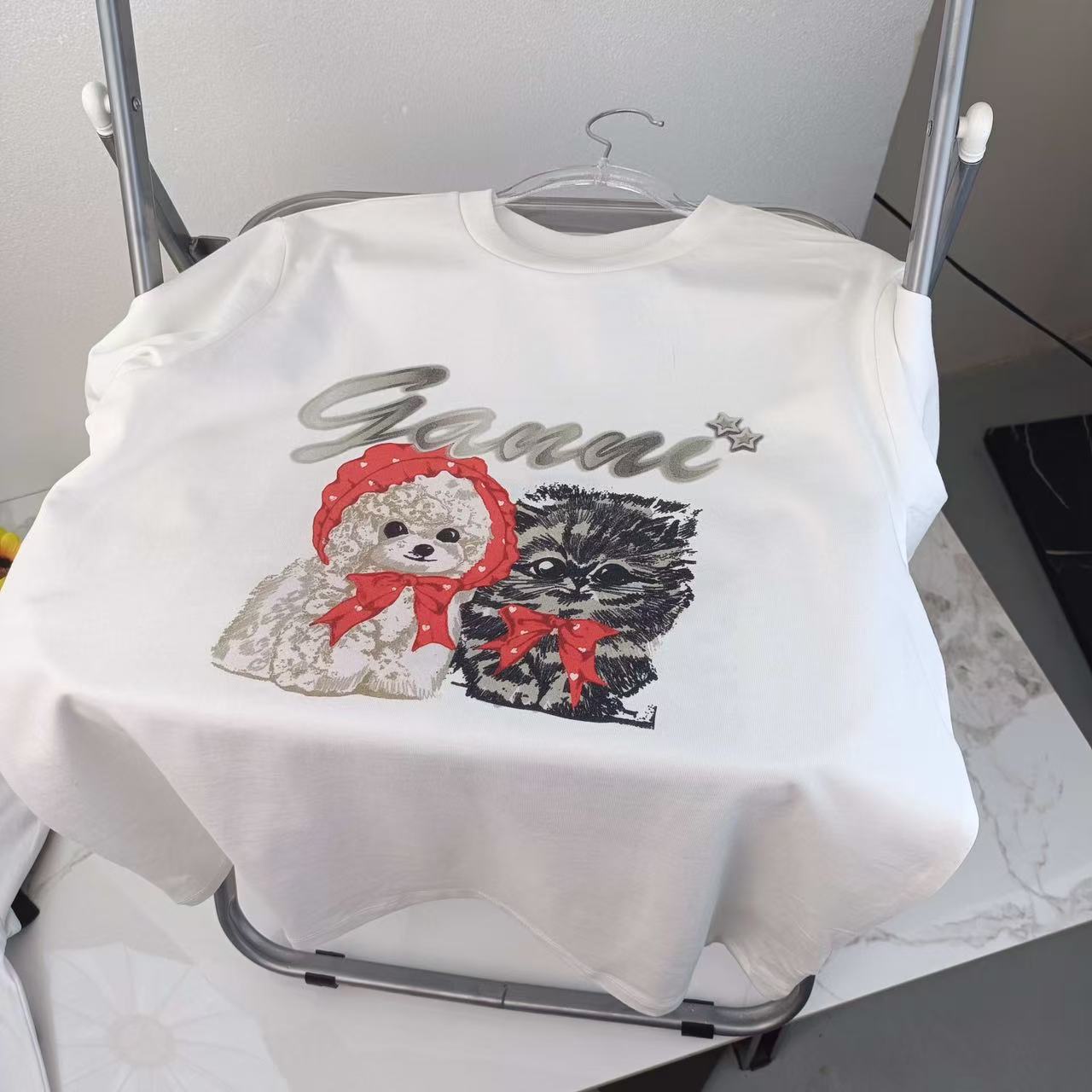 2025早秋新品 Ganni家 小狗貓咪圖案寬鬆短袖