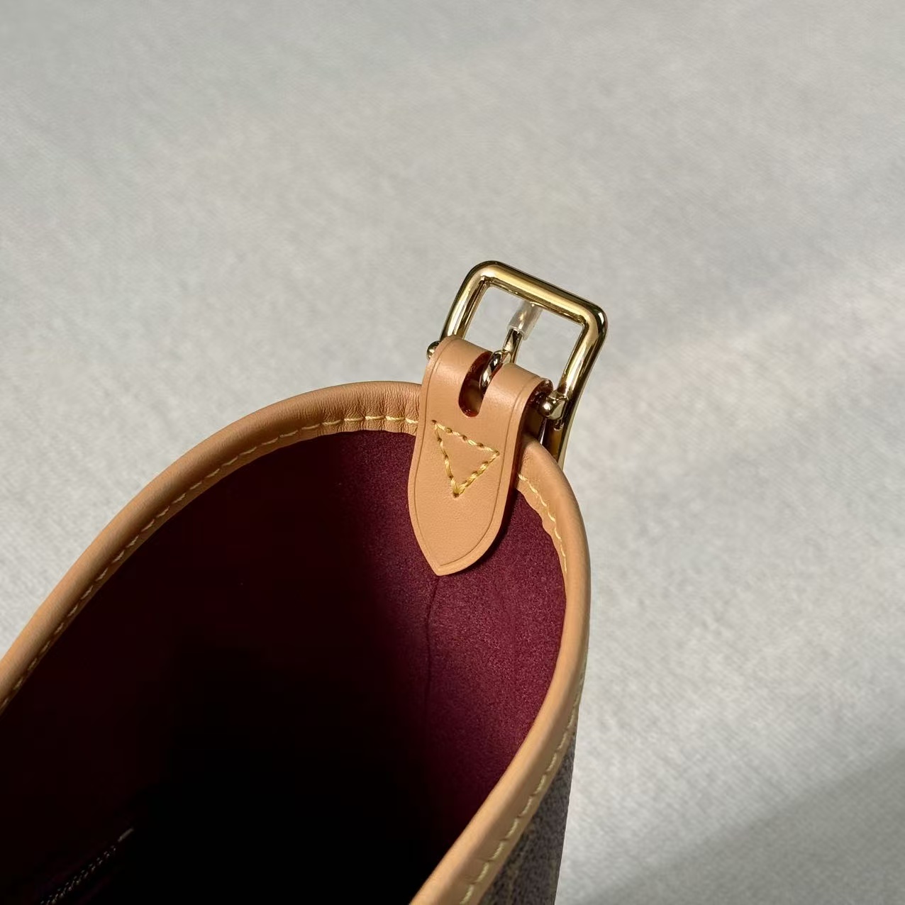 材料主體:採用品牌最具標誌性的 Monogram 塗層帆布。此材質具備優異的防潑水與抗磨損特性,即使在日常頻繁使用的情況下,依然能維持極佳的視覺美感與穩定性。
