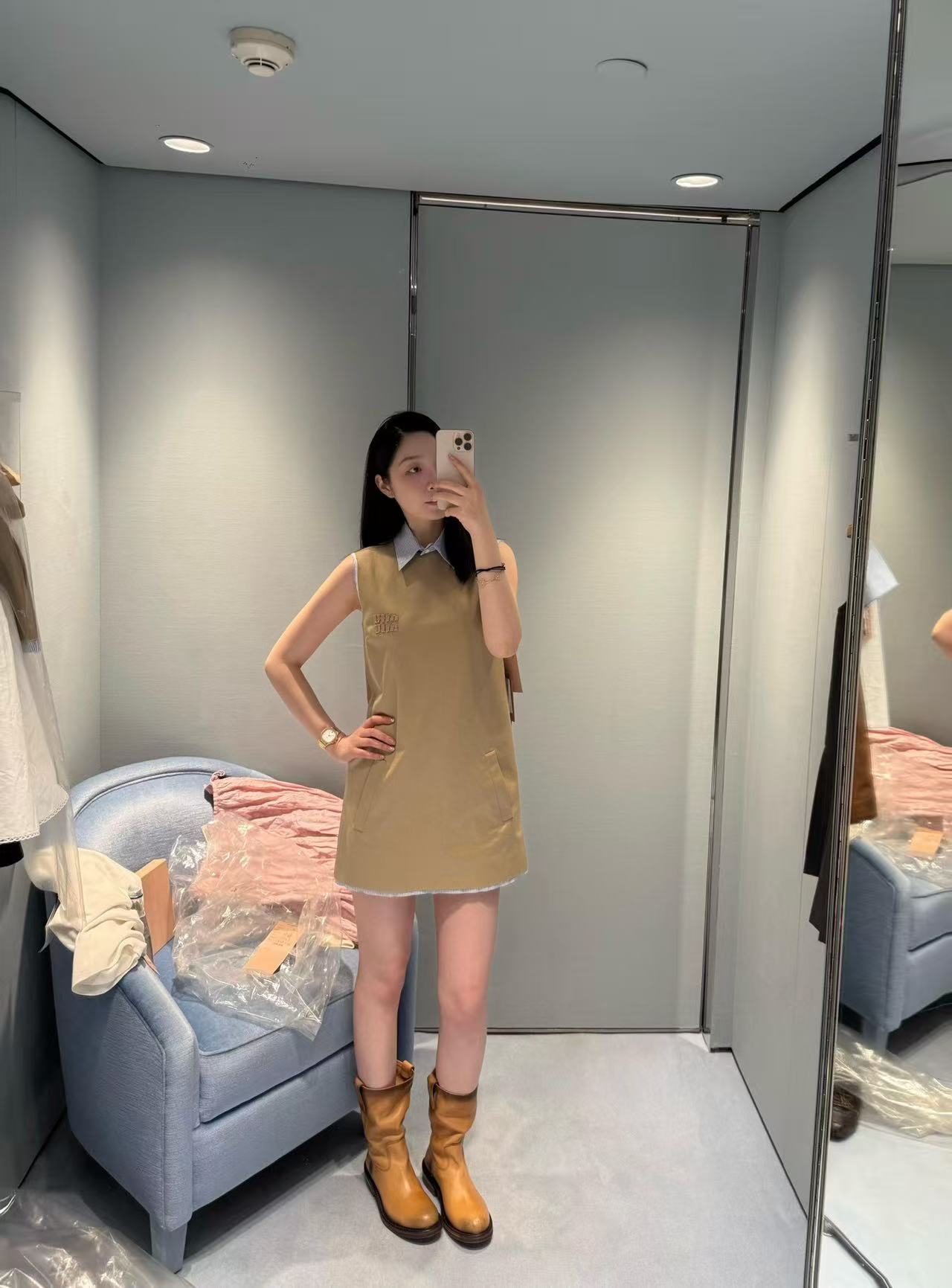 袖口與下擺特別採用了不收邊的雙層處理,這種隨性的小毛邊讓優雅的洋裝多了點個性,完美詮釋了 Miu 獨有的叛逆基因。
