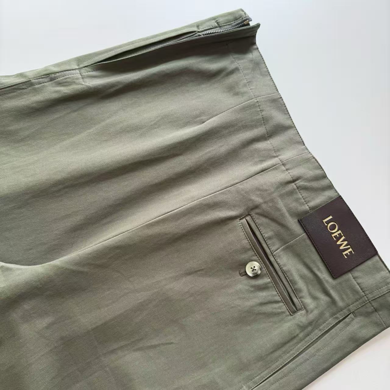 這件長褲採用了常規的中腰直筒版型,剪裁俐落又修身,完美地修飾身形比例,讓你穿起來時髦又大氣。如果你也想為自己的衣櫃添購一件能穿很久、又充滿品味的頂級單品,這款 Loewe 軍綠長褲絕對是你的最佳選擇!