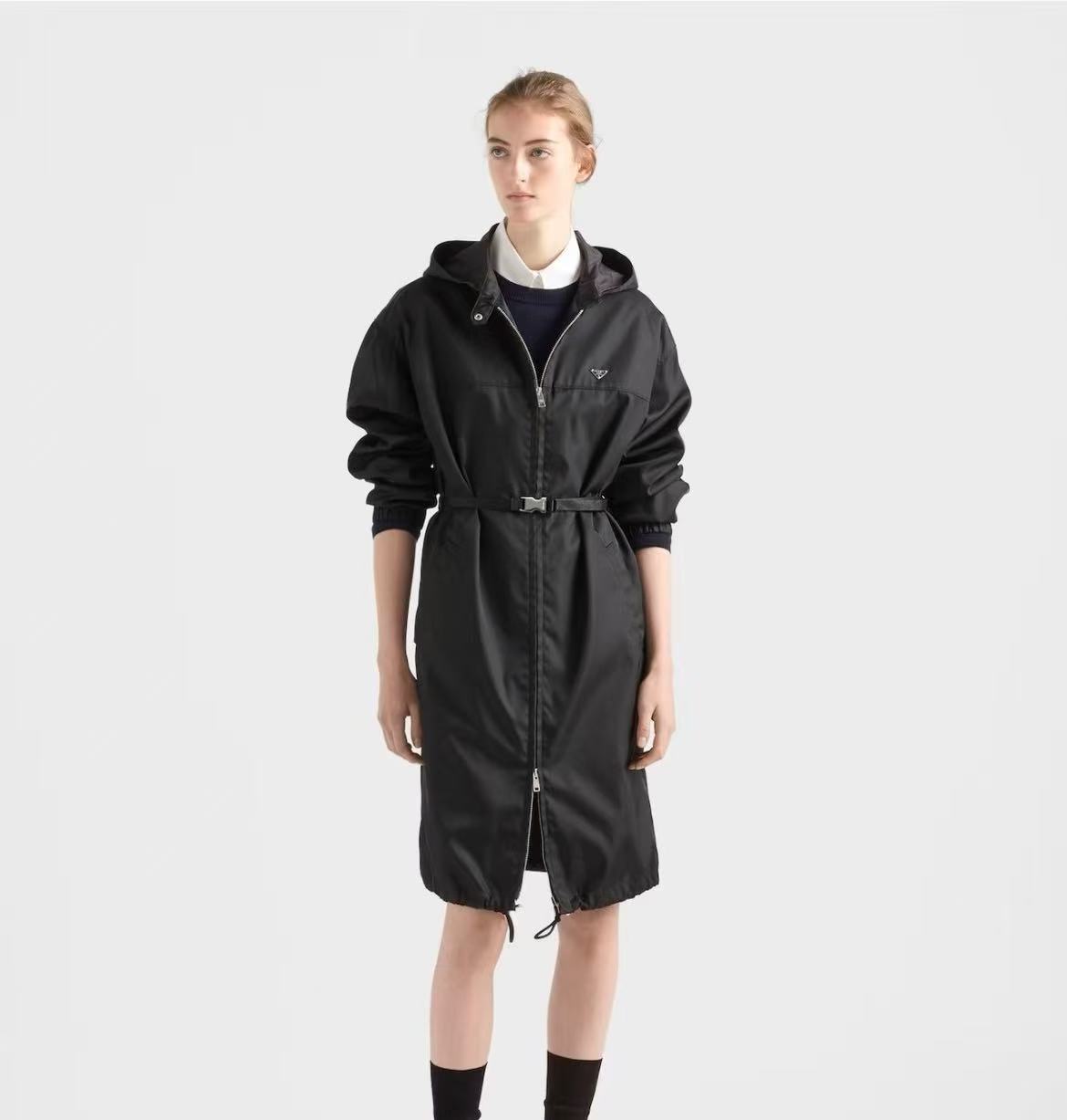 2026早春 PD家 三角標連帽防風夾克外套裙,完美平衡了機能感與高級時尚。