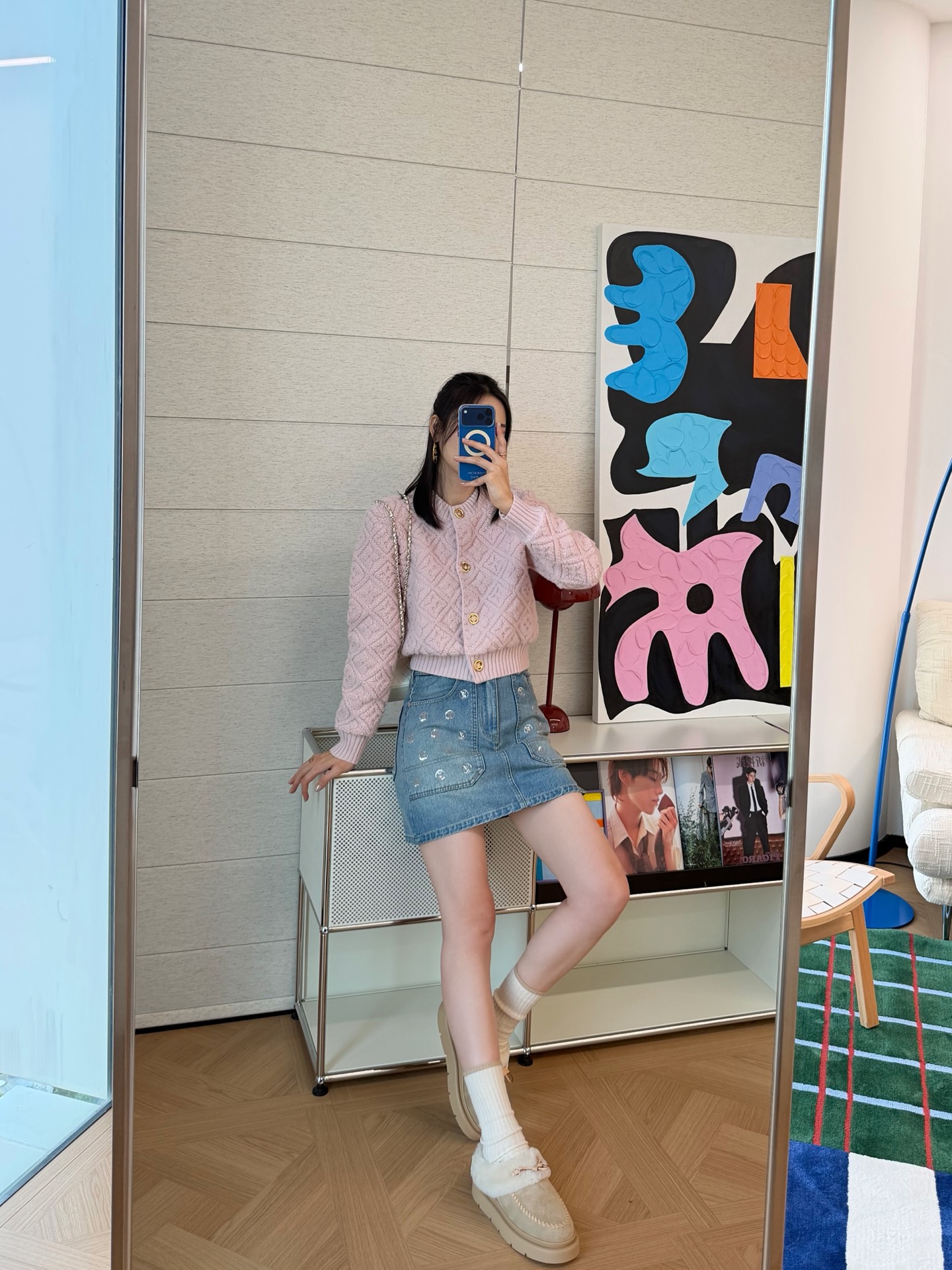 口袋細節更是亮點所在——重工手工亮片與釘珠,閃爍卻不俗氣,近看能感受到工藝的用心,高級感直接拉滿。