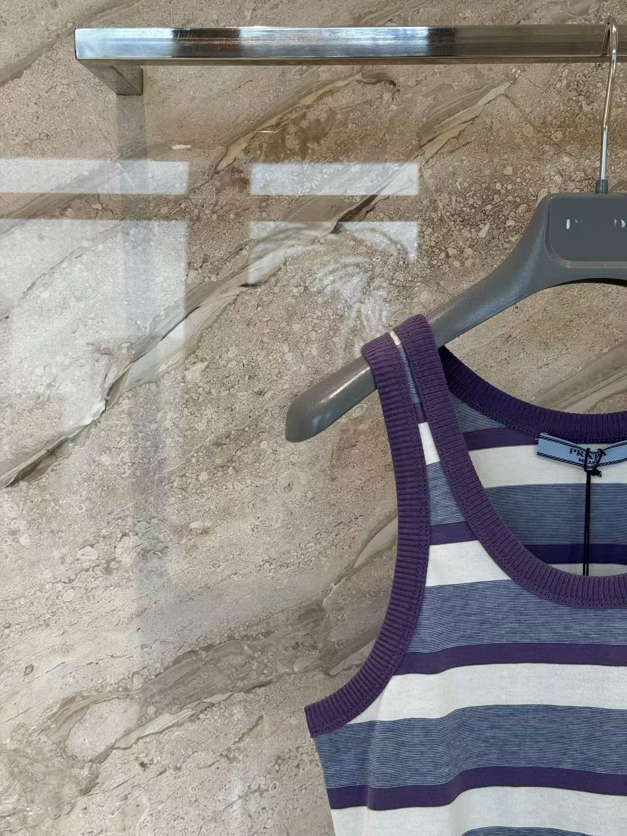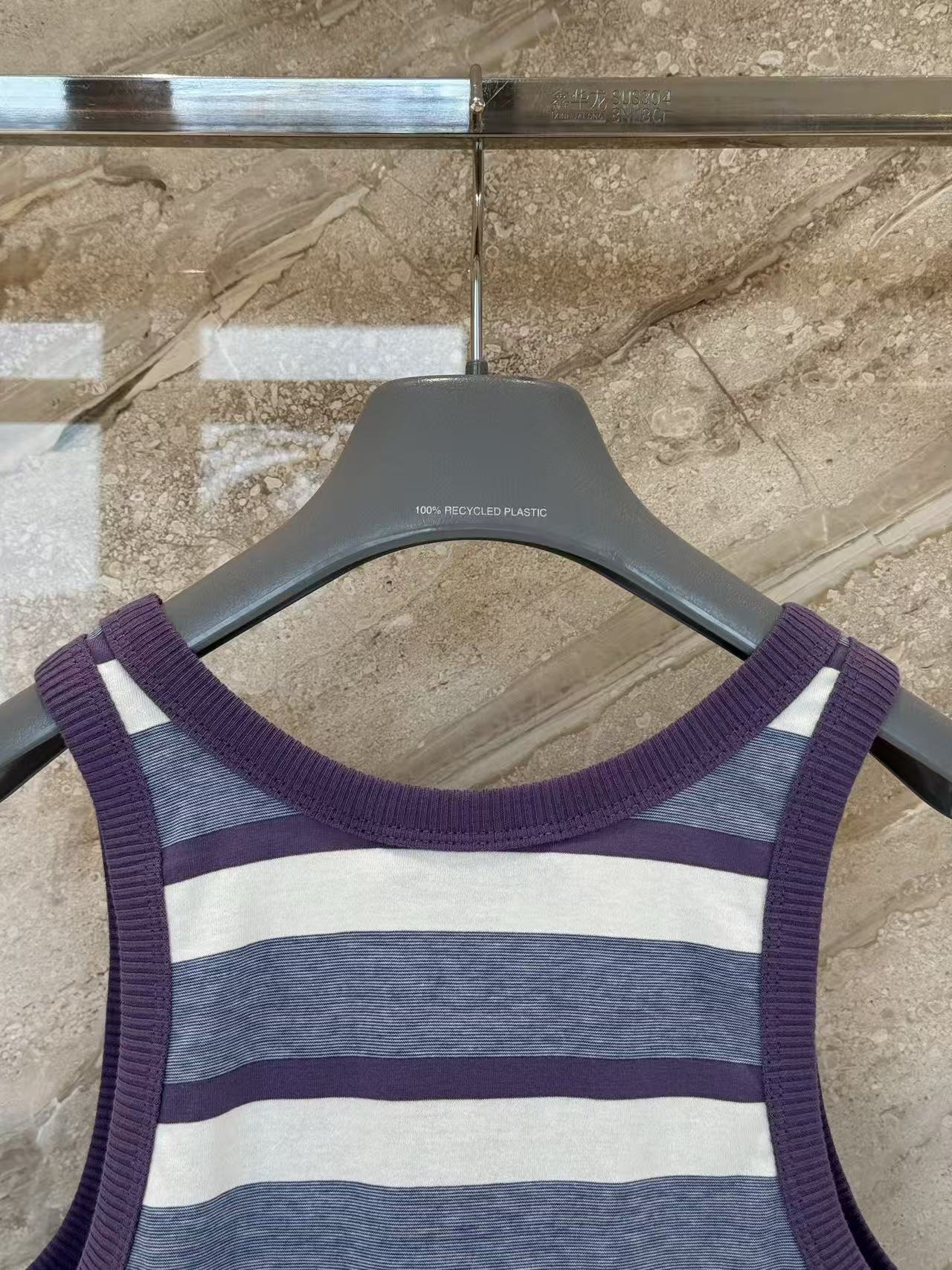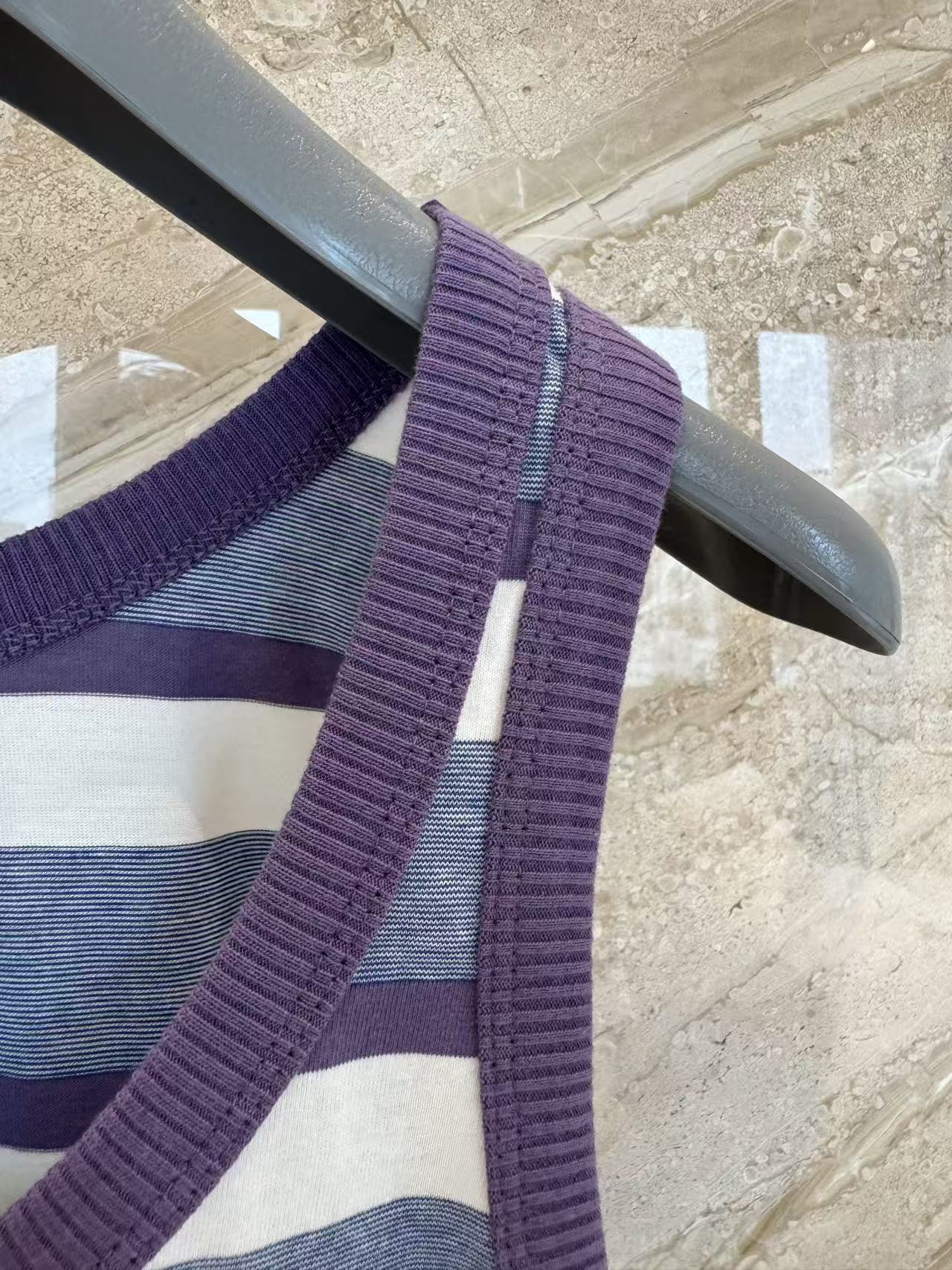 26春夏系列:莫蘭迪色彩的優雅律動!解析「紫藍白條紋」無袖背心的清透美學