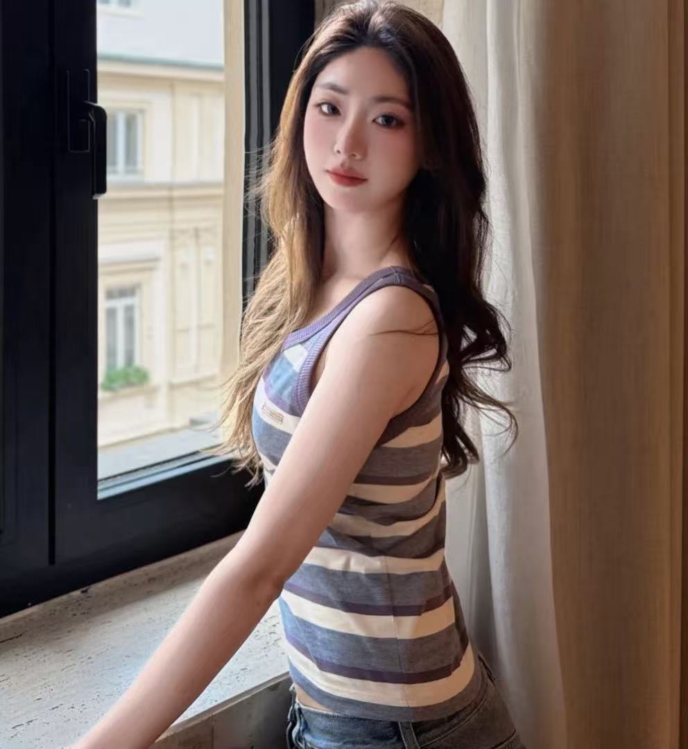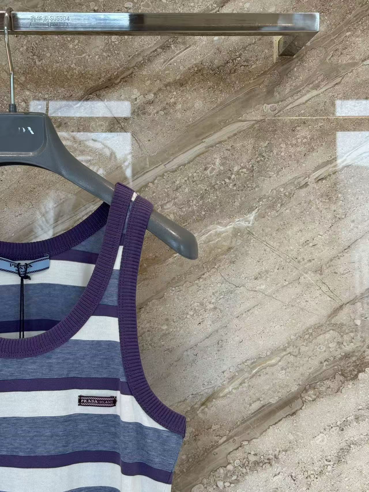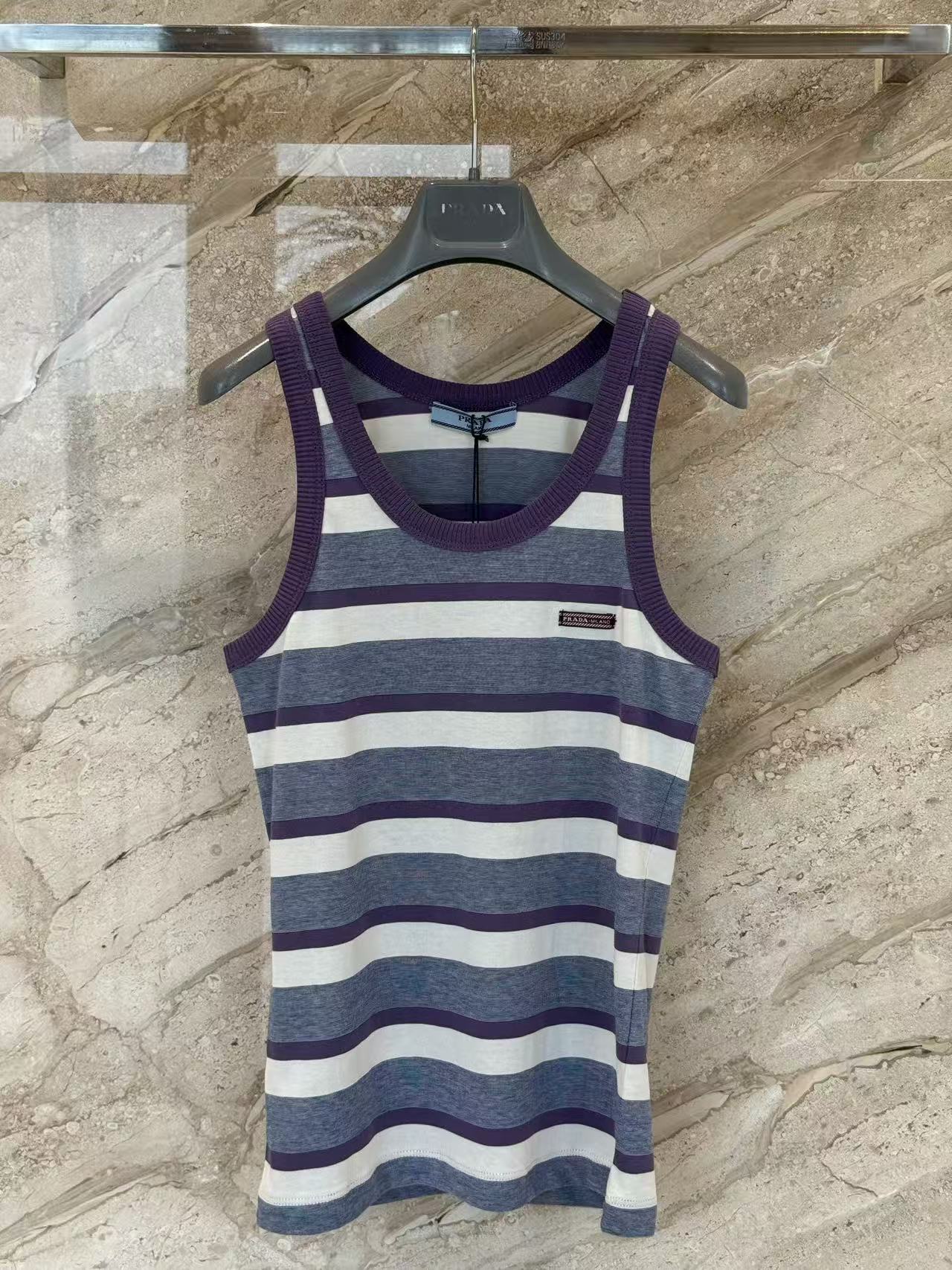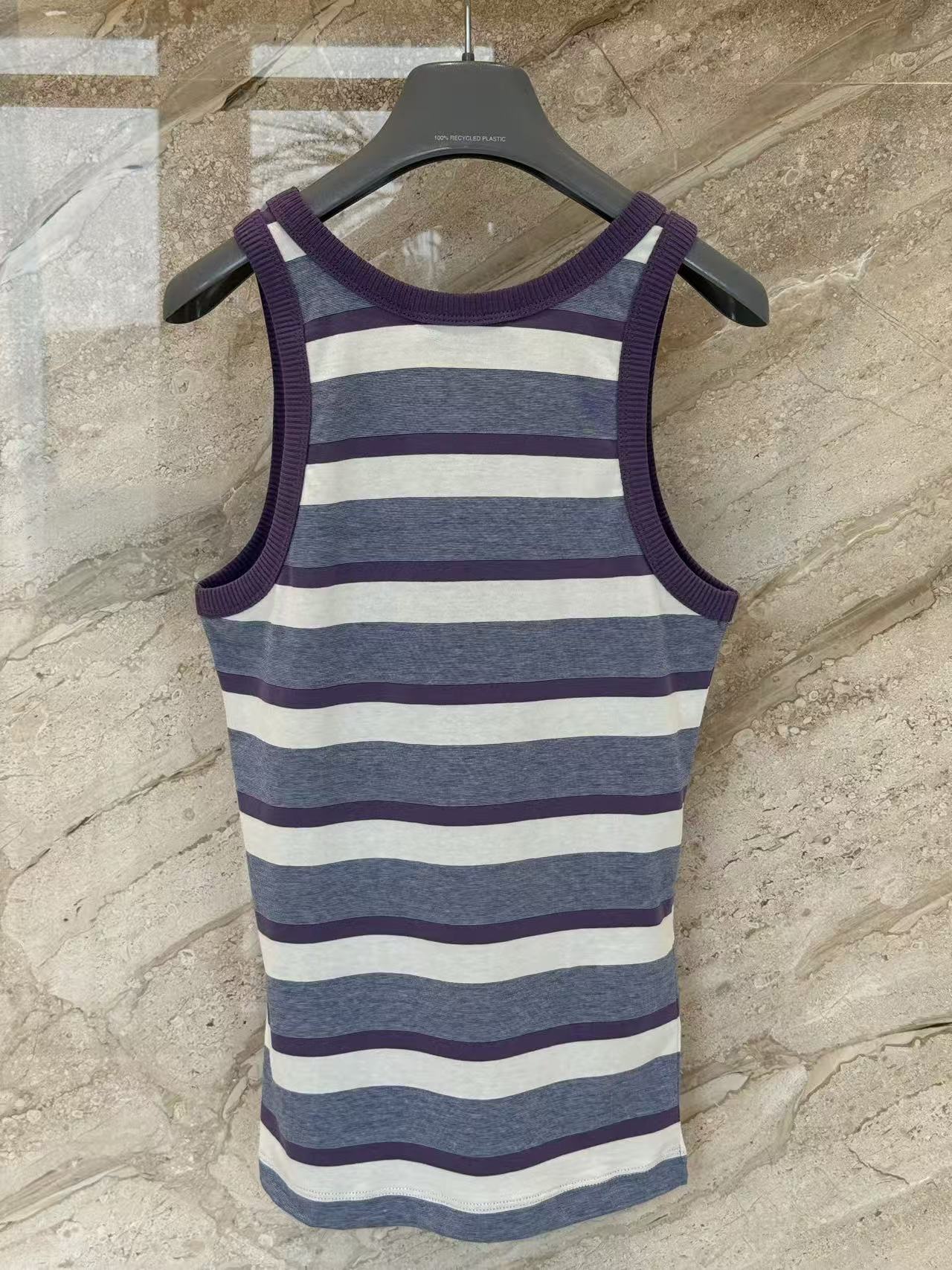 26春夏系列:莫蘭迪色彩的優雅律動!解析「紫藍白條紋」無袖背心的清透美學