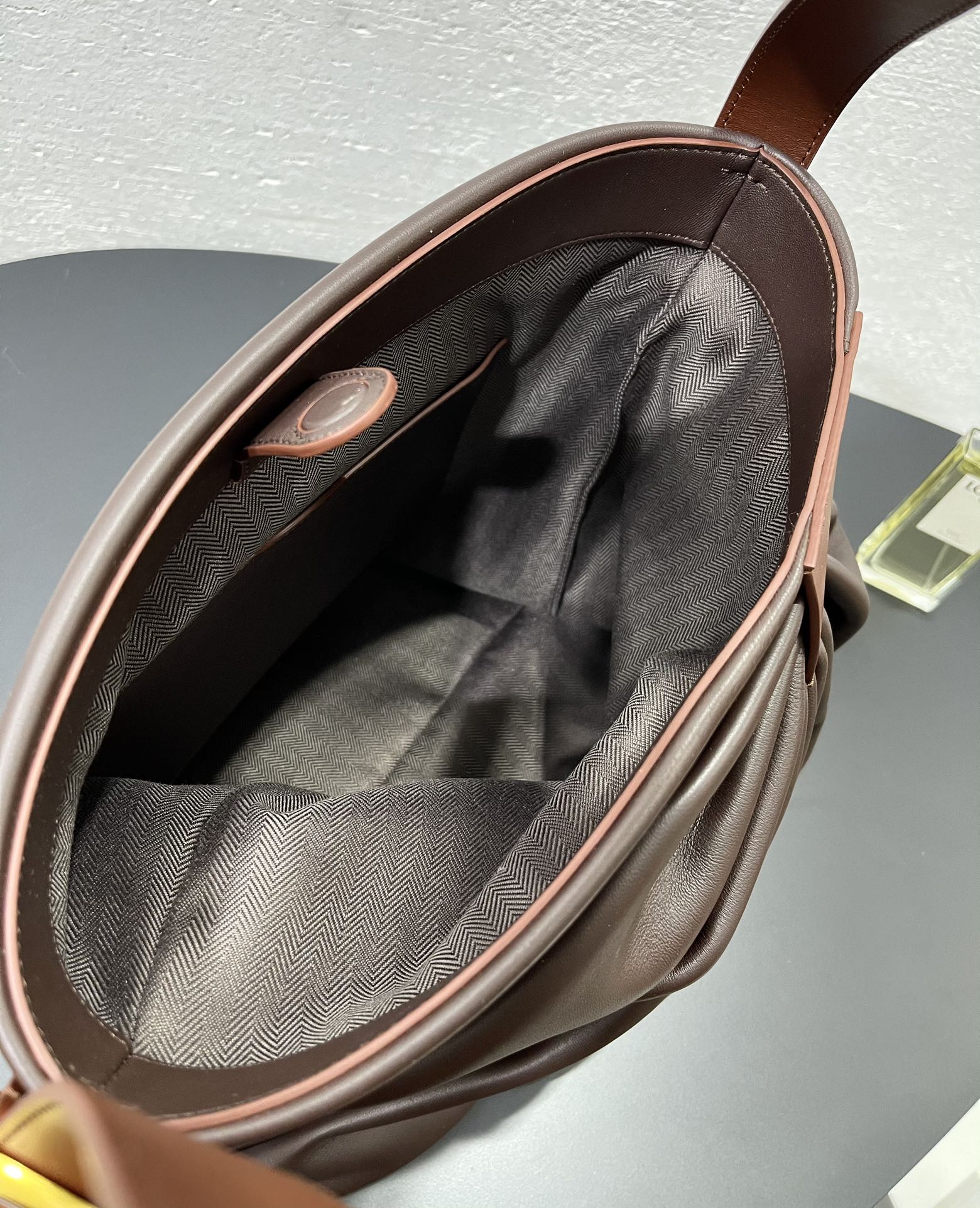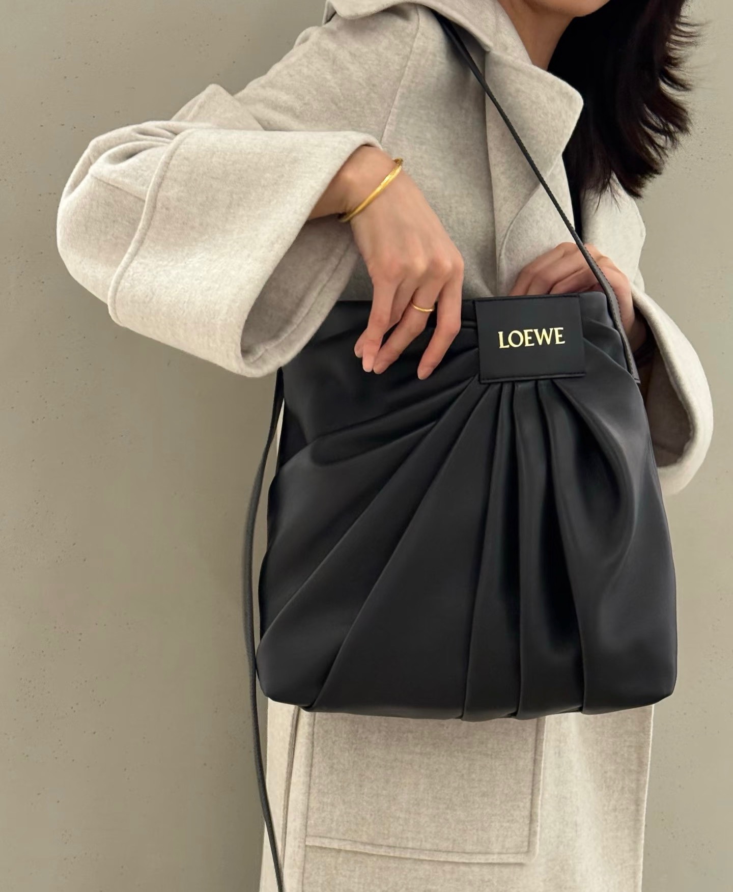 整體包型自然垂墜、不刻意卻非常有態度,搭配細緻的褶皺輪廓與低調質感的 Logo 皮牌,呈現出一種「不張揚卻很懂穿」的時髦氛圍。