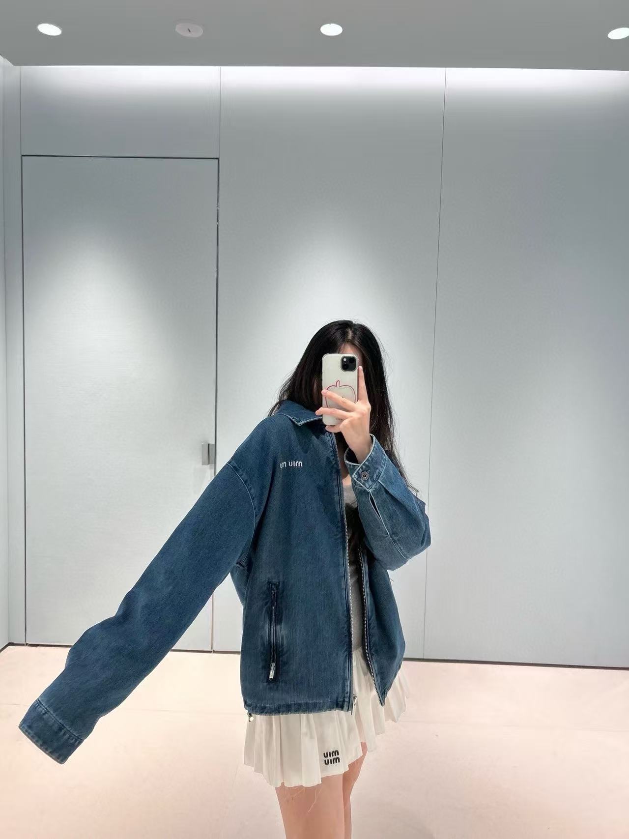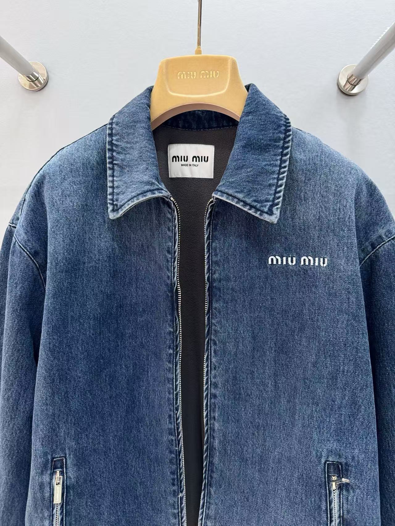 2025早秋 MIU家 微標刺繡牛仔棉服外套