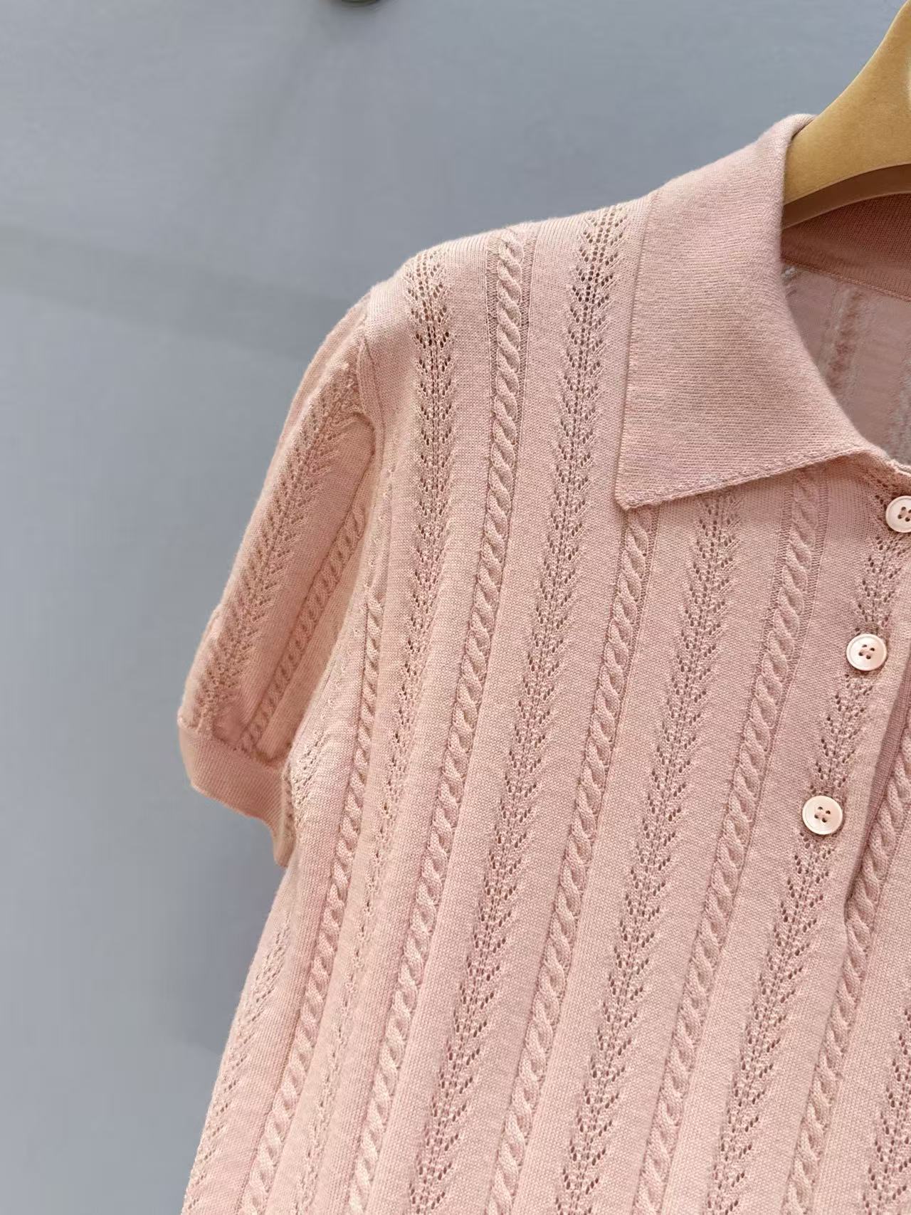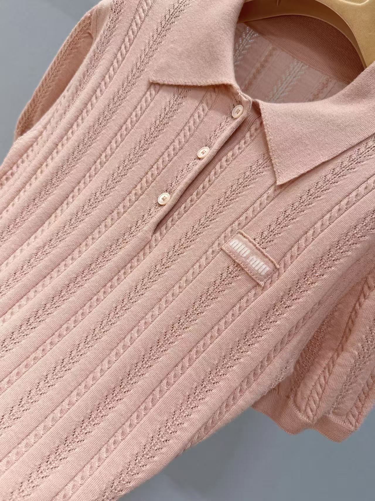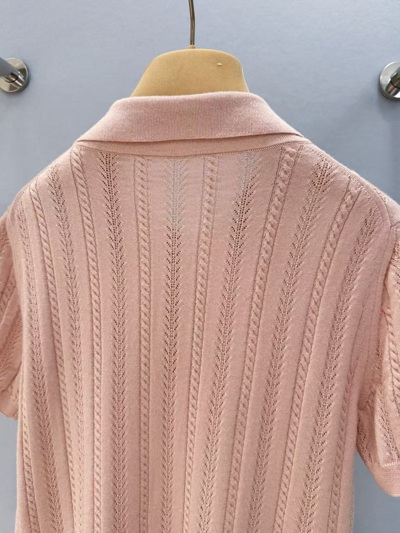 2025早秋 MIU家 粉色翻領鏤空短袖