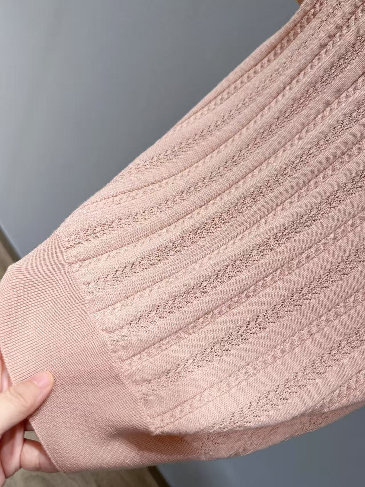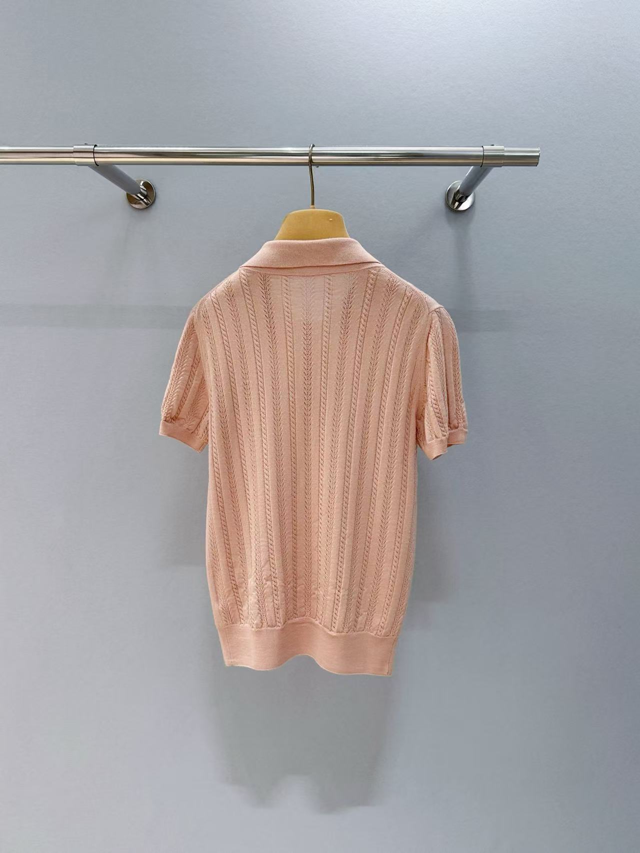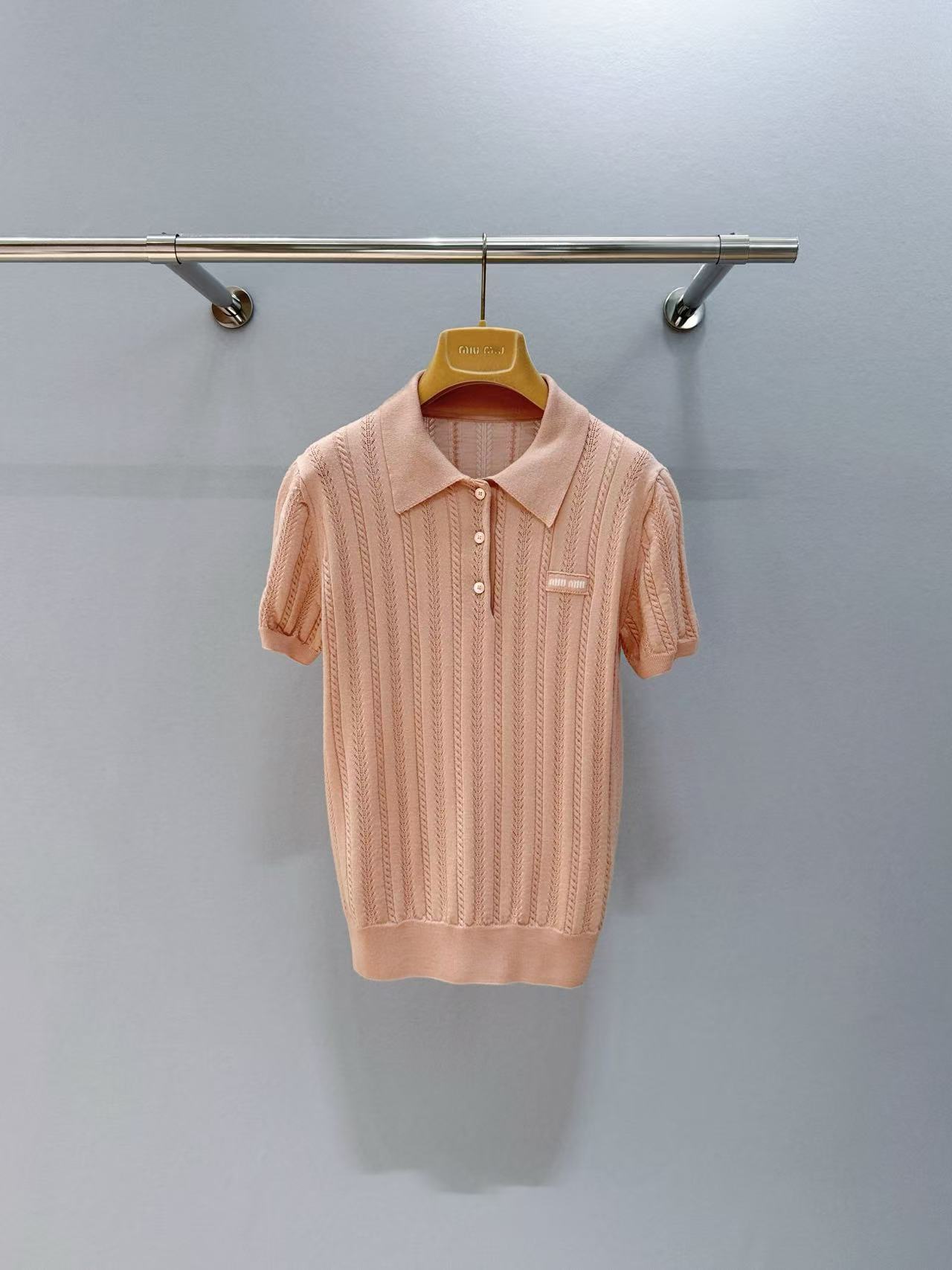 2025早秋 MIU家 粉色翻領鏤空短袖