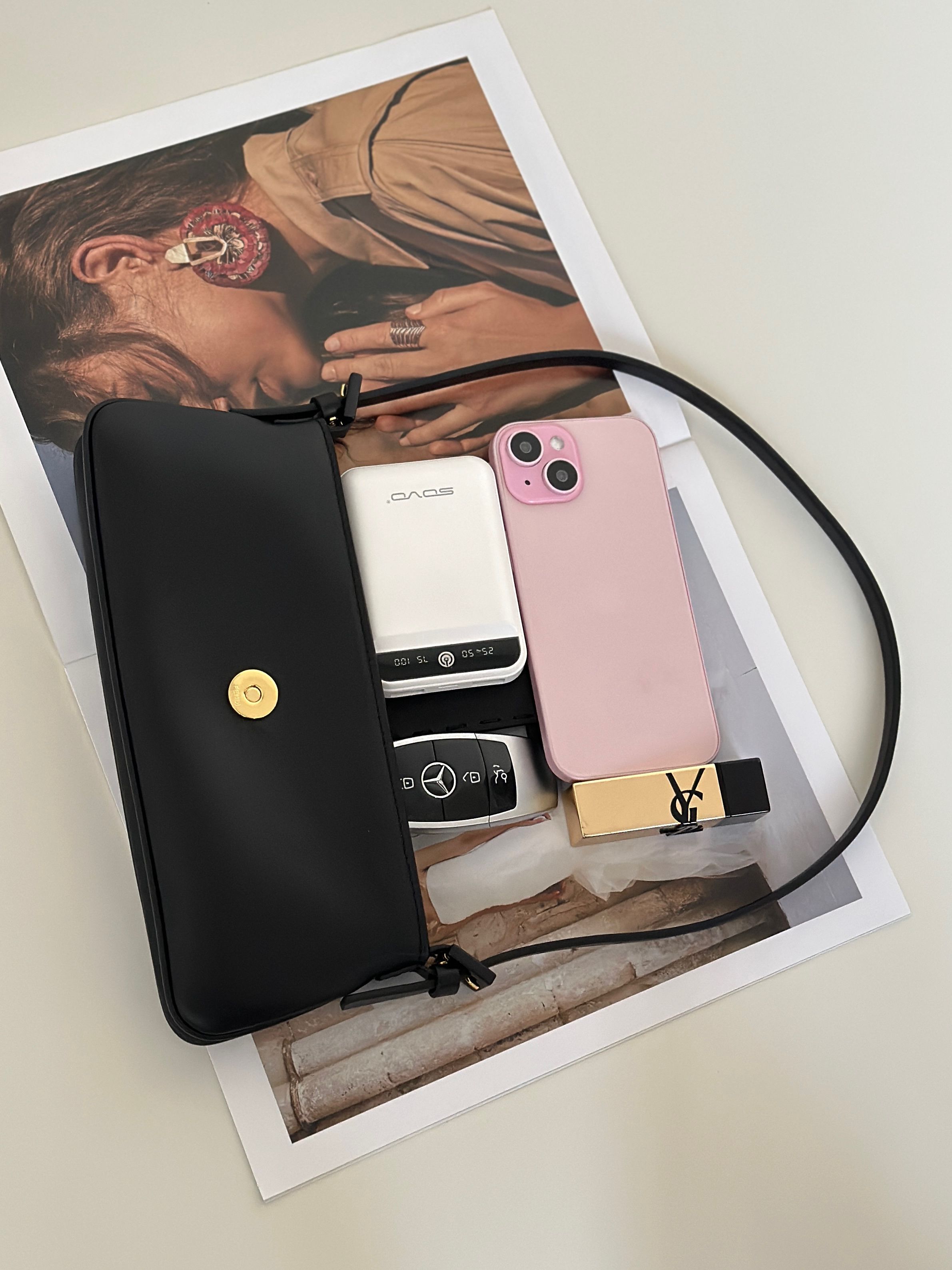 包型設計俐落簡約,比例拿捏得剛剛好,雖然是迷你尺寸,但日常必備小物像是手機、卡片、唇膏都能輕鬆收納,兼顧美觀與實用性。