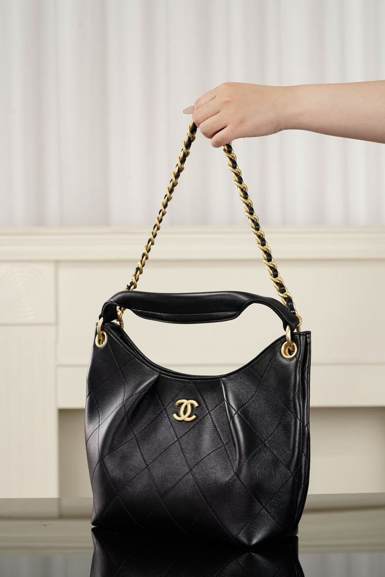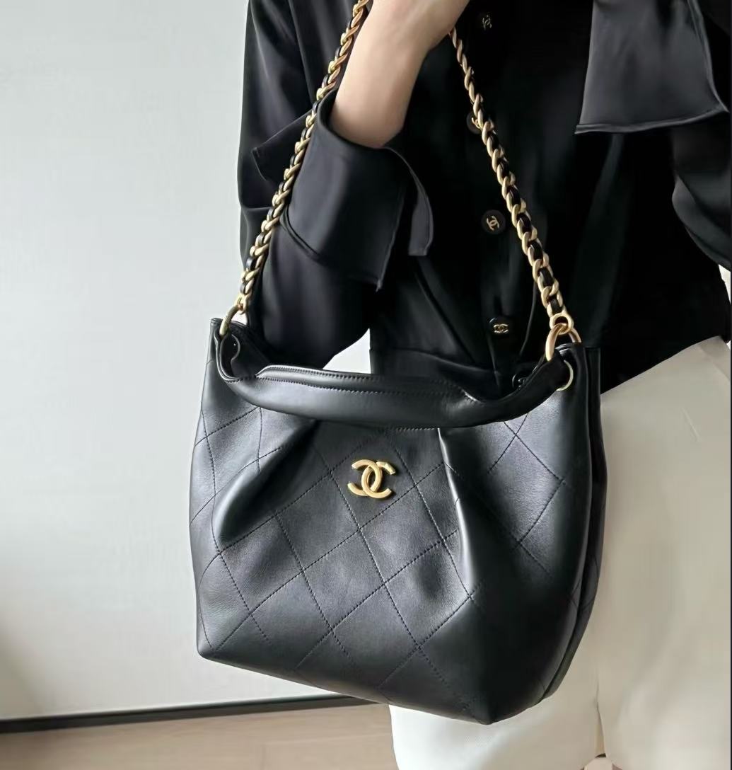 細膩的小羊皮材質 觸感軟糯如雲朵,結合黑金經典配色,展現出一種內斂且極致高級的輕奢質感,無論是配白 T 牛仔褲還是精緻套裝,都能輕鬆 get 那種不費力的法式時髦。
