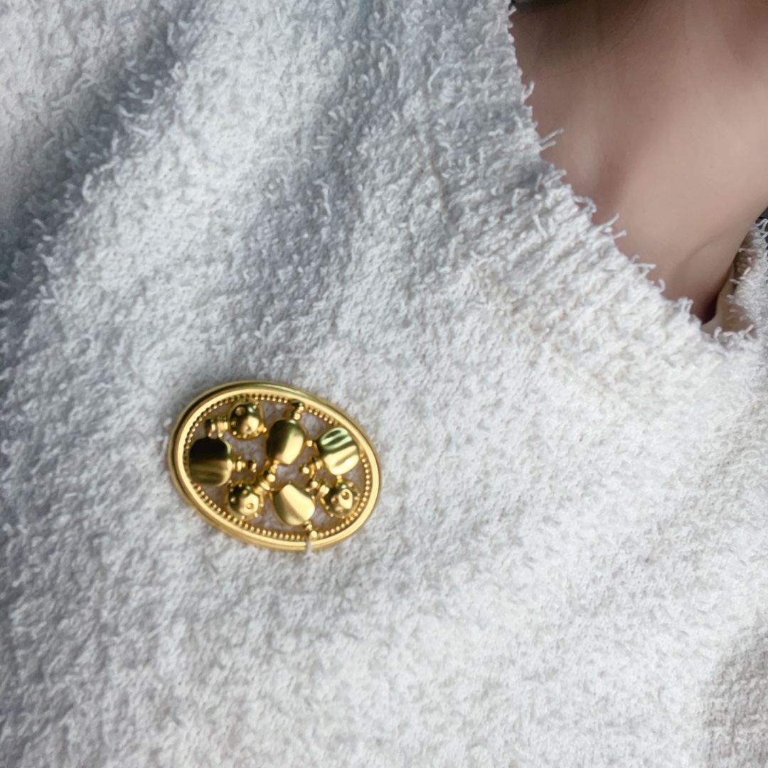 這款胸針不管是點綴西裝外套還是簡單的針織衫,都能瞬間提升整體的穿搭氣場,喜歡 Vintage 風格的女孩千萬別錯過這一枚!