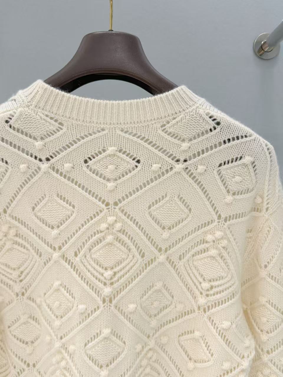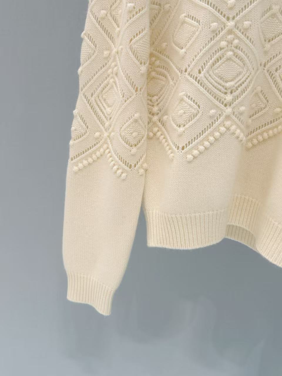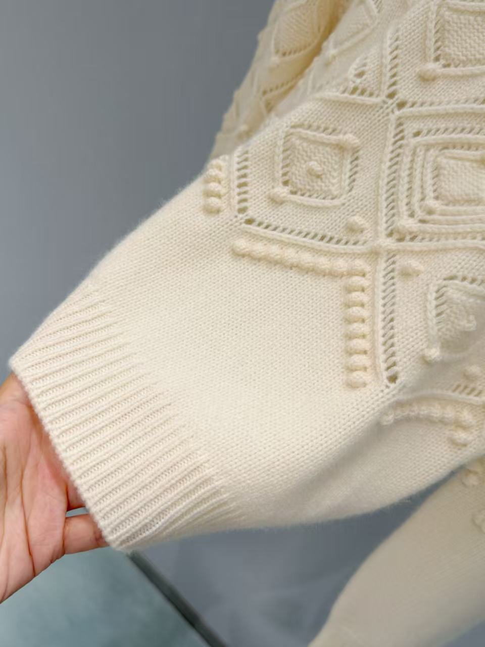 菱形與菱格紋理交織,設計感滿分卻不過度張揚,低調中透著滿滿的高級質感,一上身就散發慵懶優雅的秋冬氛圍,米白調超顯氣色,穿出門整個人看起來都柔軟又精緻。