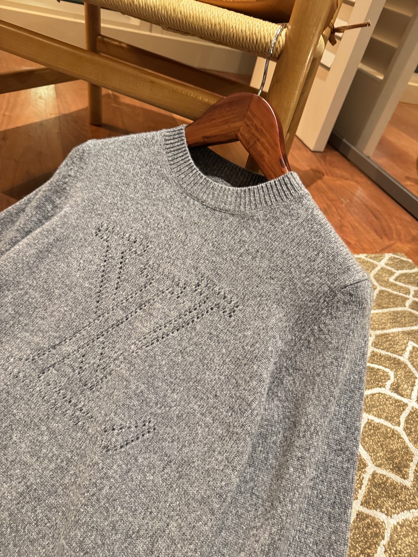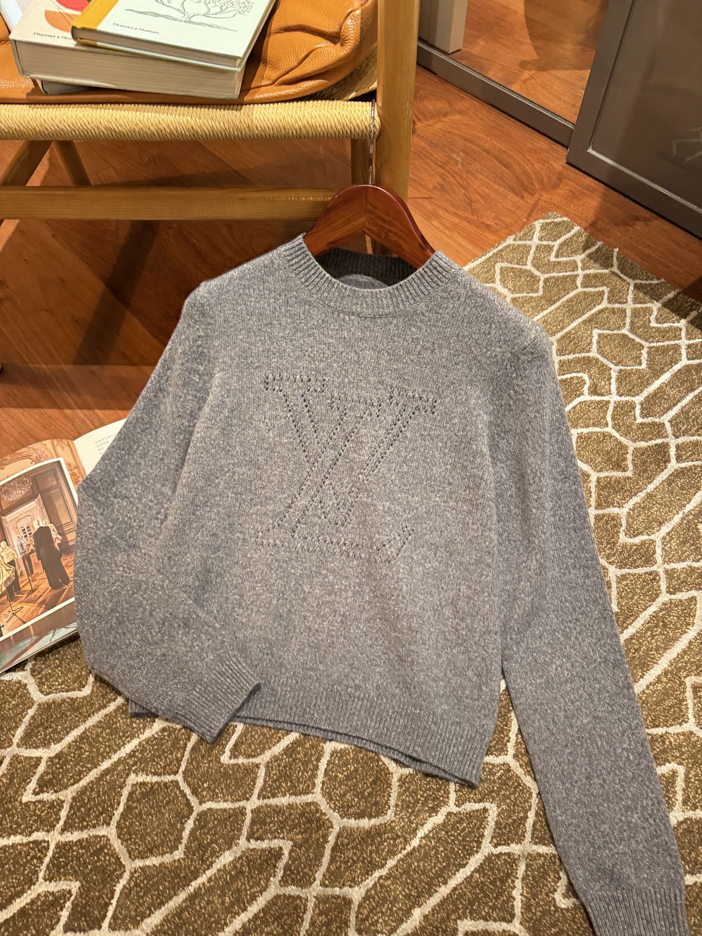2025秋冬新品 L家 灰色鏤空LOGO針織毛衣