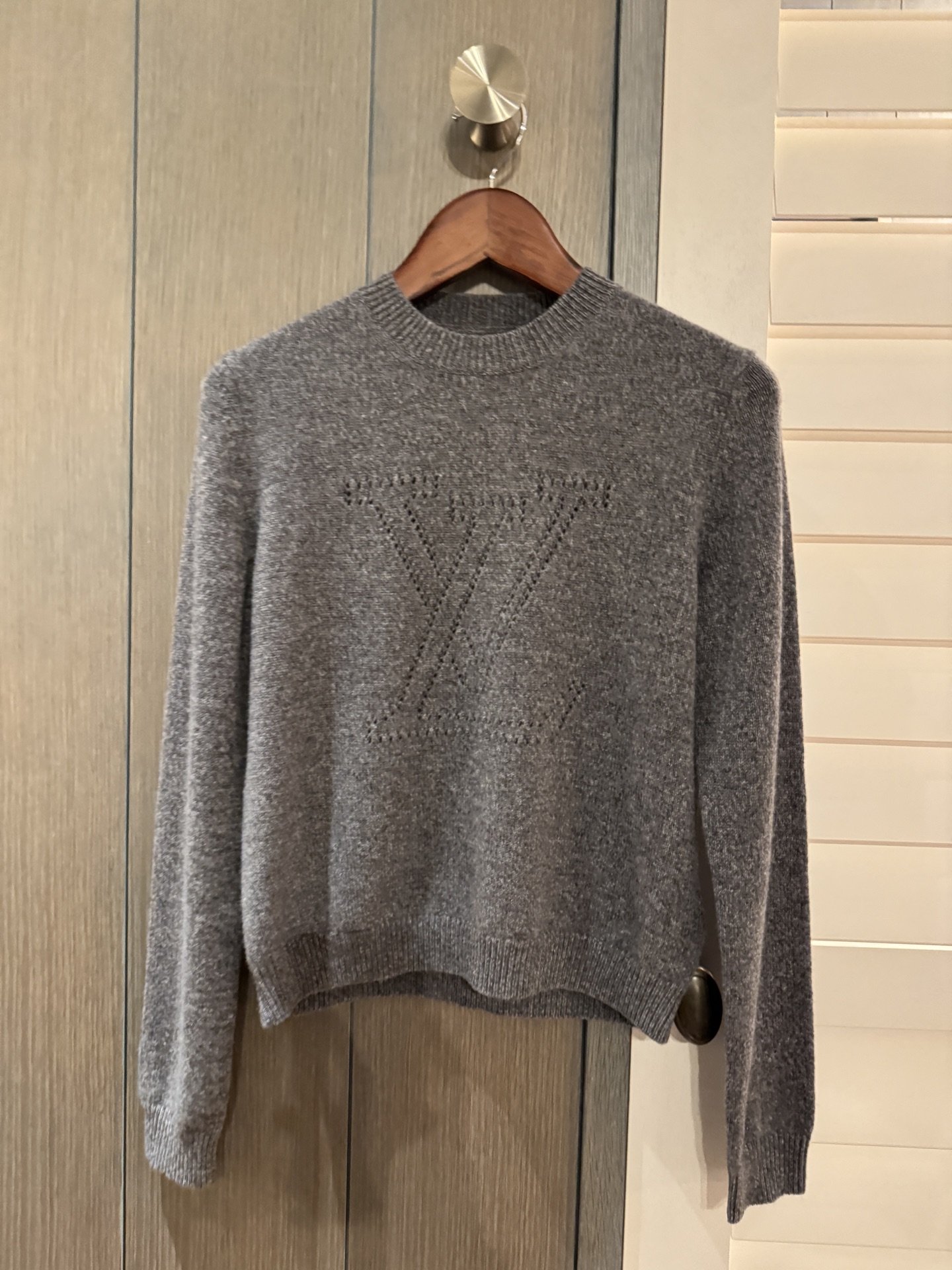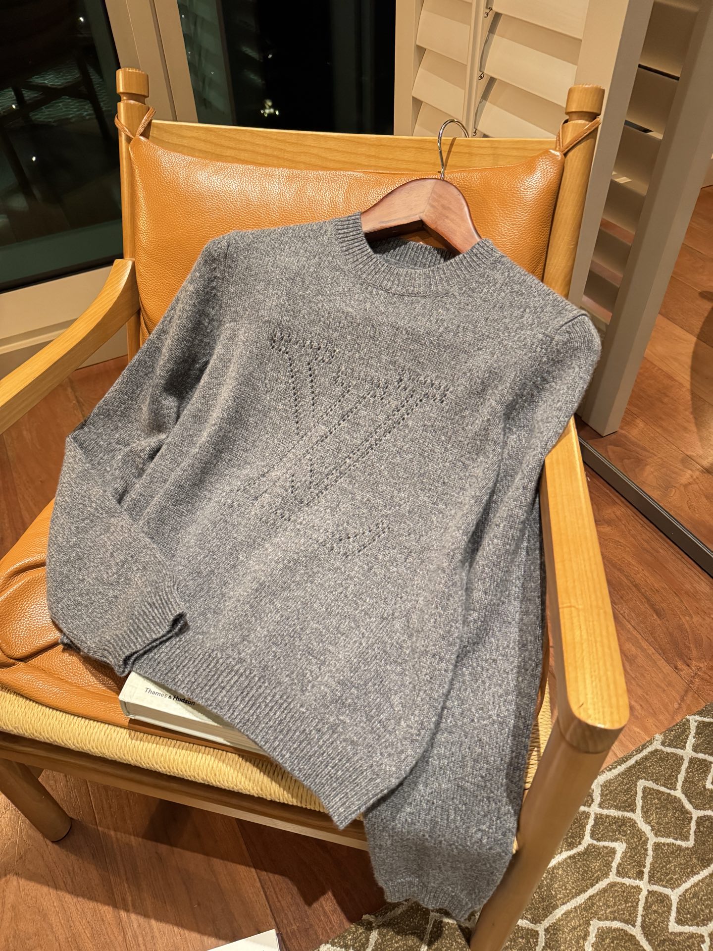 這件真的是本季「低調奢華感」的代表作。胸前字母 LOGO 的鏤空設計,簡約中又帶點設計巧思,讓整件毛衣多了層次與亮點,不會太張揚卻極具時尚氣場。