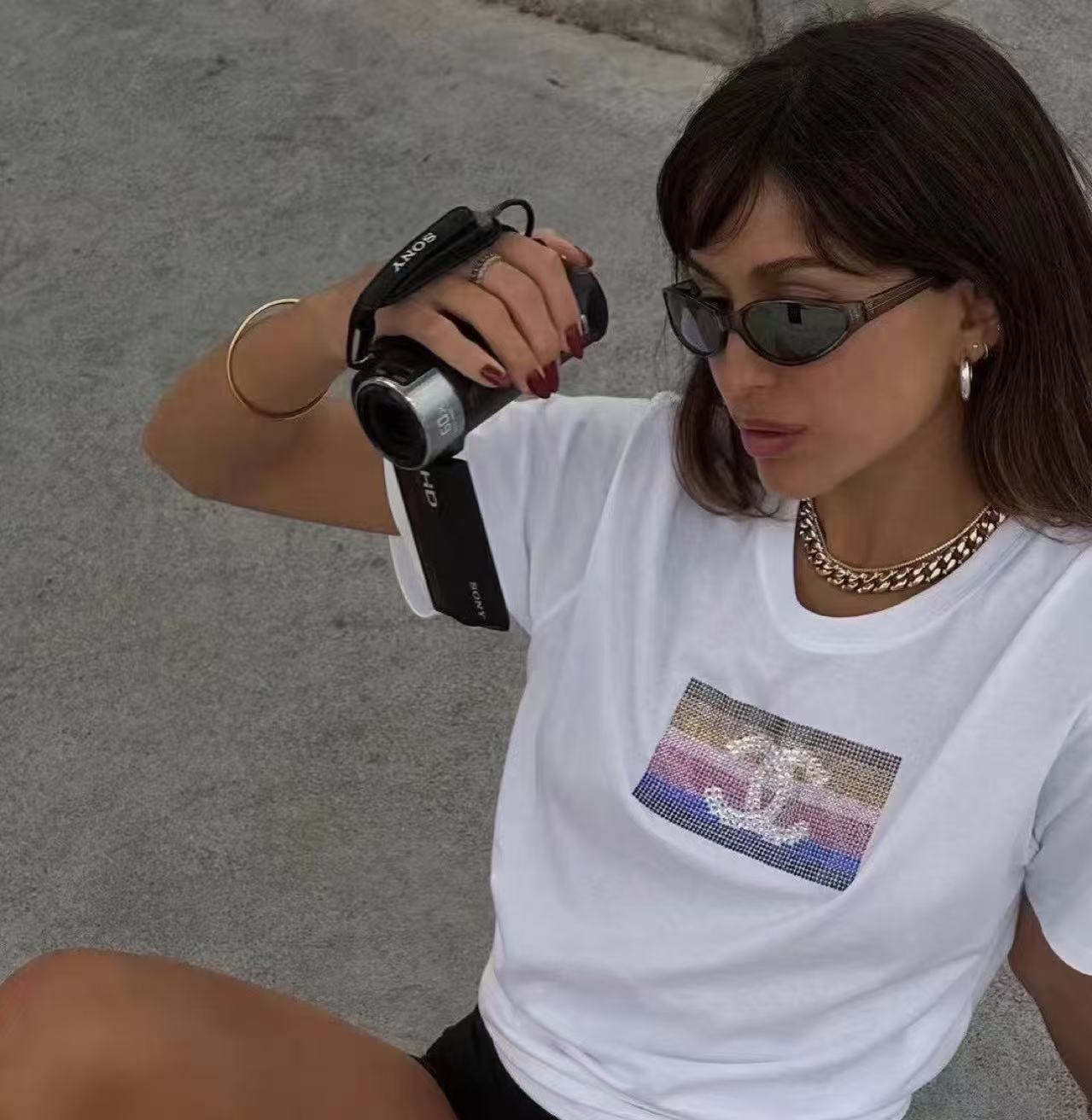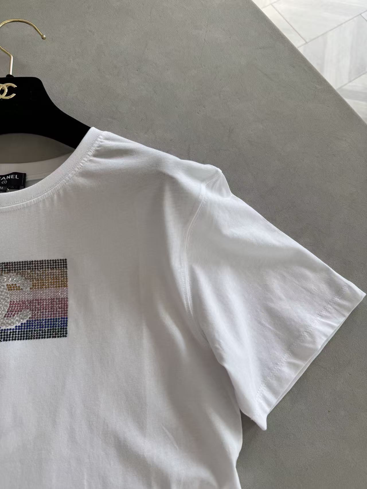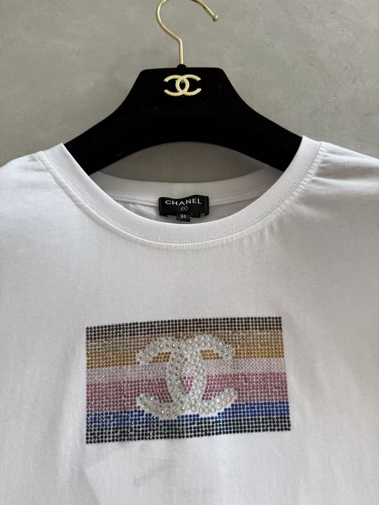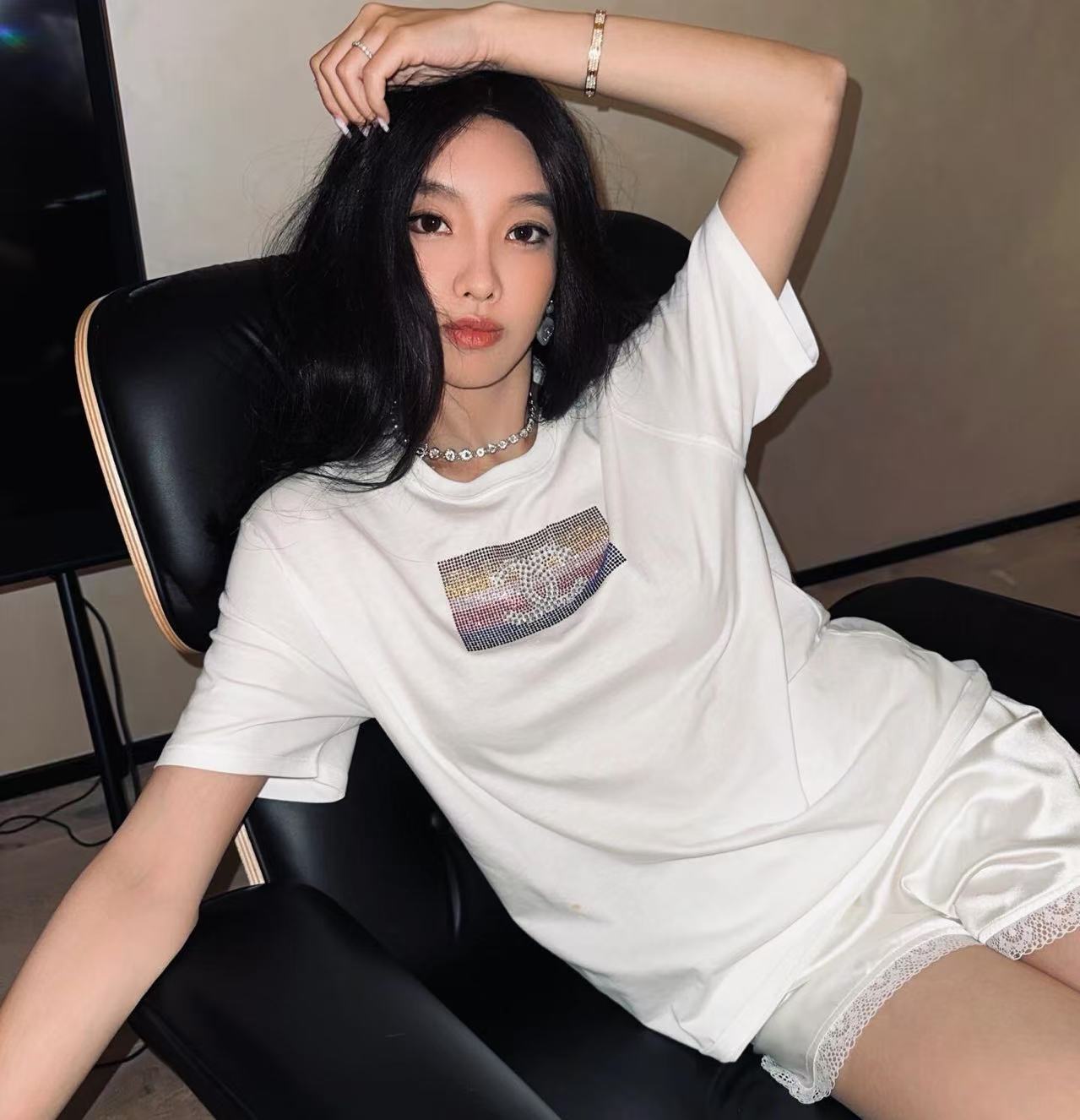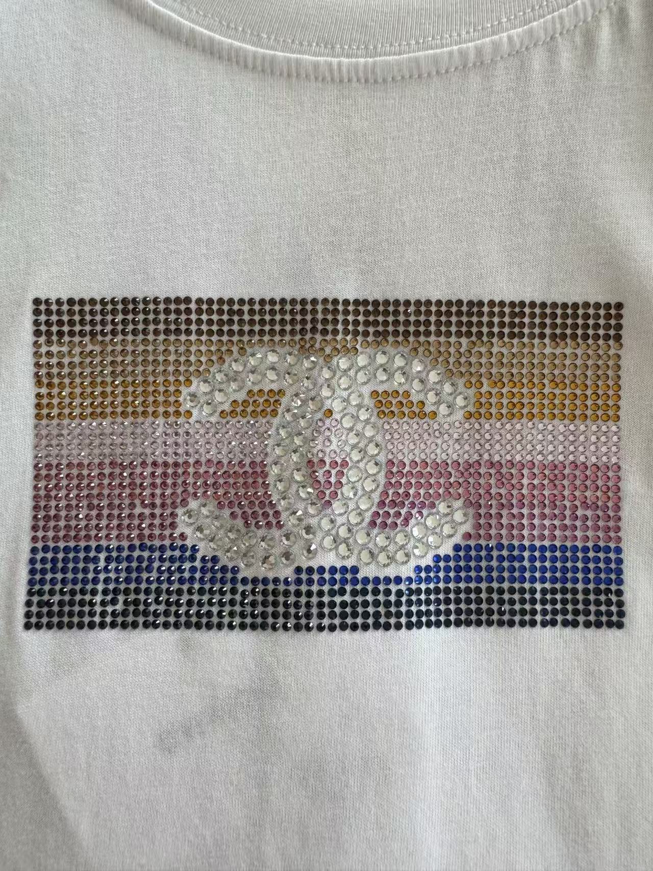 秀場VIP禮物直擊!100%進口匹馬棉液氨軟化,胸前漸變彩虹水鑽+雙C Logo,從度假海邊到都市日常,一件搞定高級閃耀!快來一起探索這件短袖的無限魅力吧!