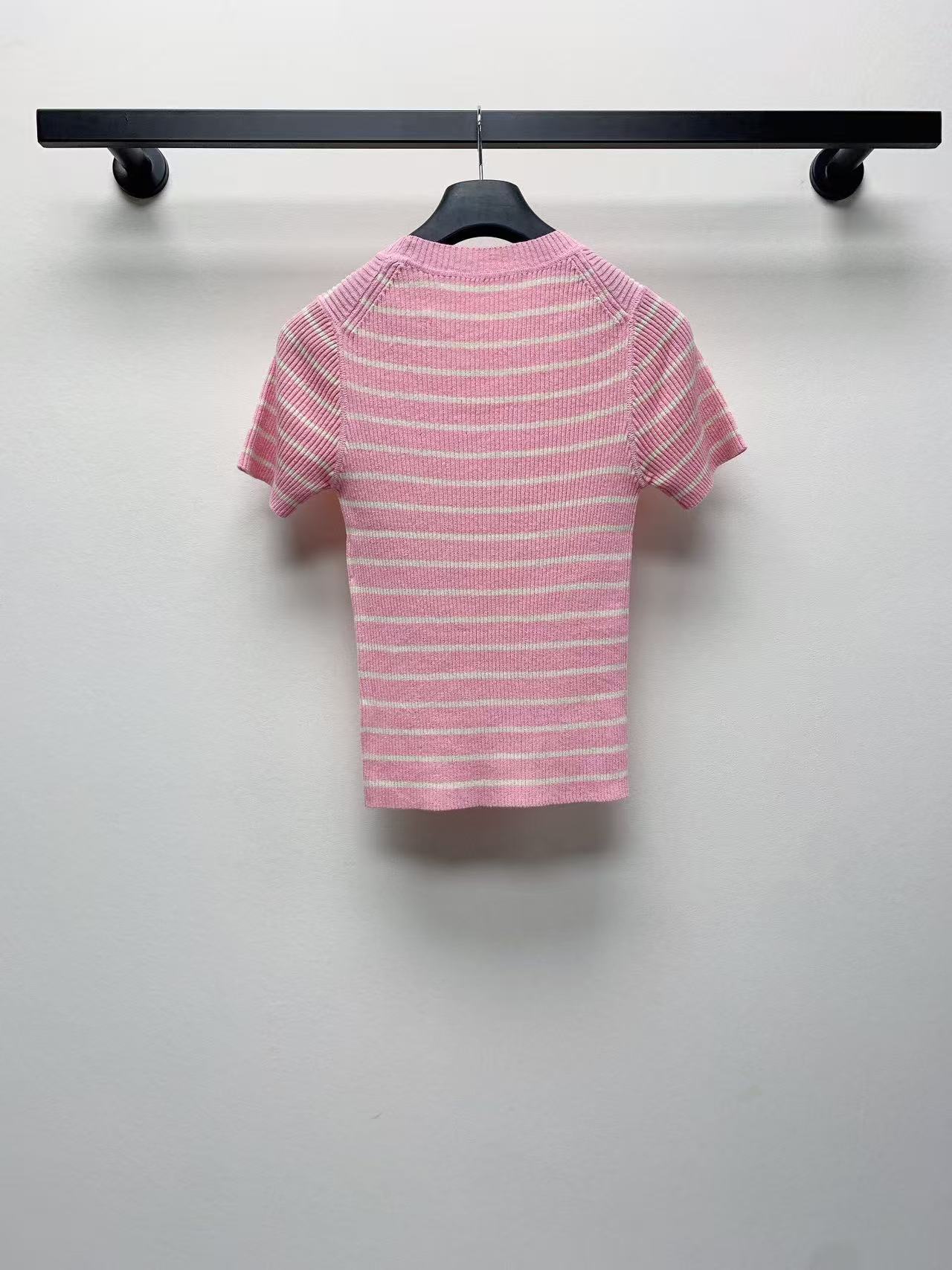 秋冬重磅特惠福利-D家 粉色條紋針織短袖