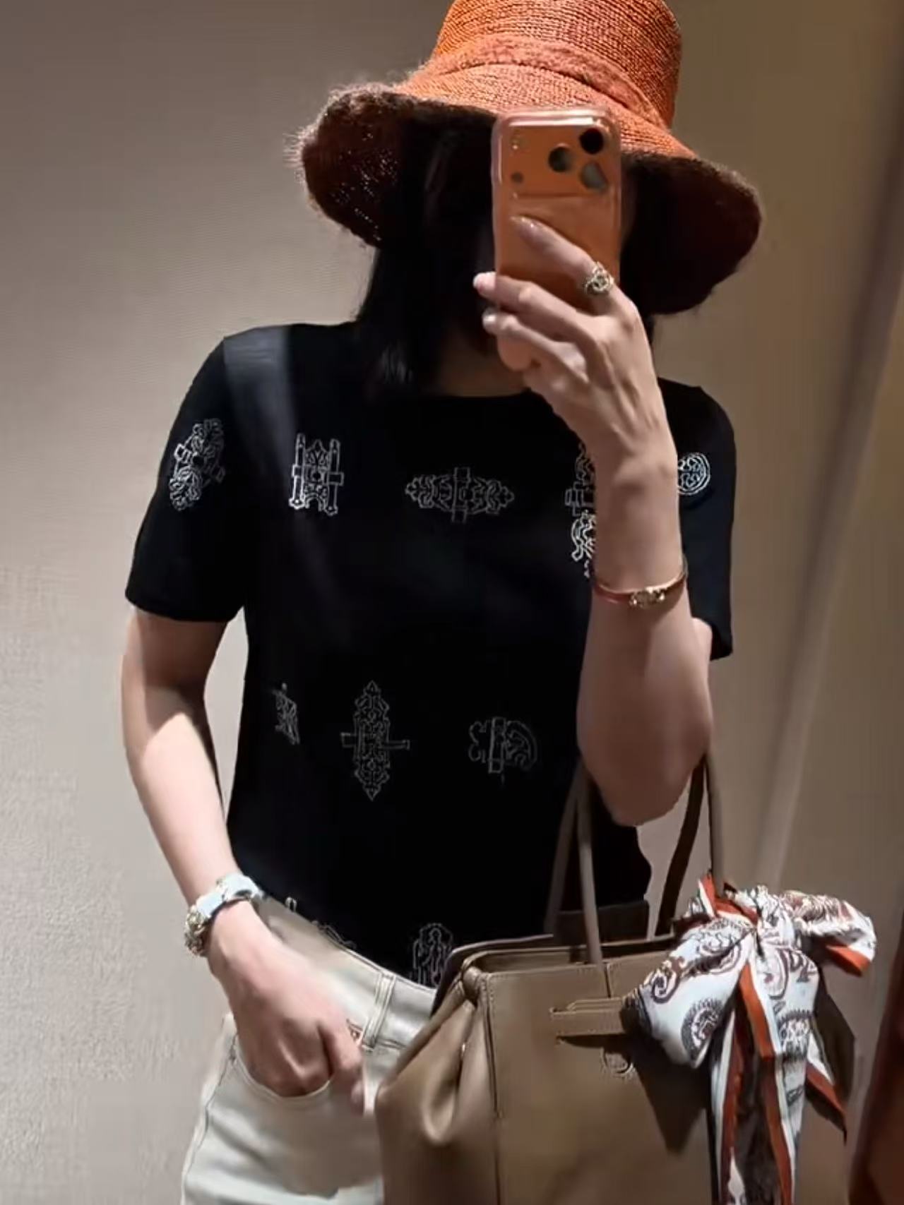 簡約的圓領設計 搭配充滿現代感的刺繡紋理,展現出一種內斂且極致高級的輕奢質感,是那種不需要任何標籤就能贏很大的時髦神衣。