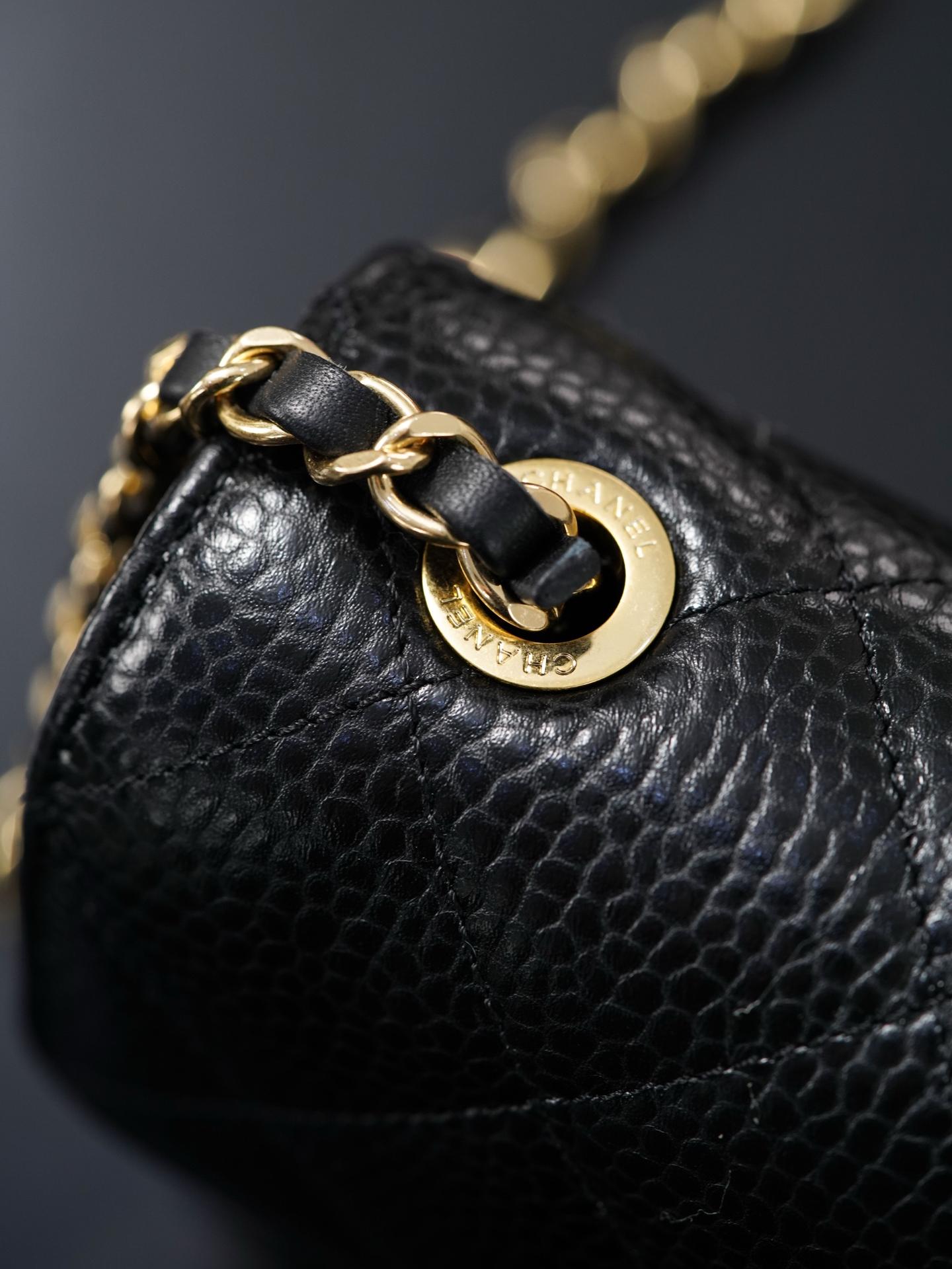 雙C旋轉扣帶有微微斑駁感,不是刻意做舊,而是那種剛剛好的時間感,讓包包更有故事性。