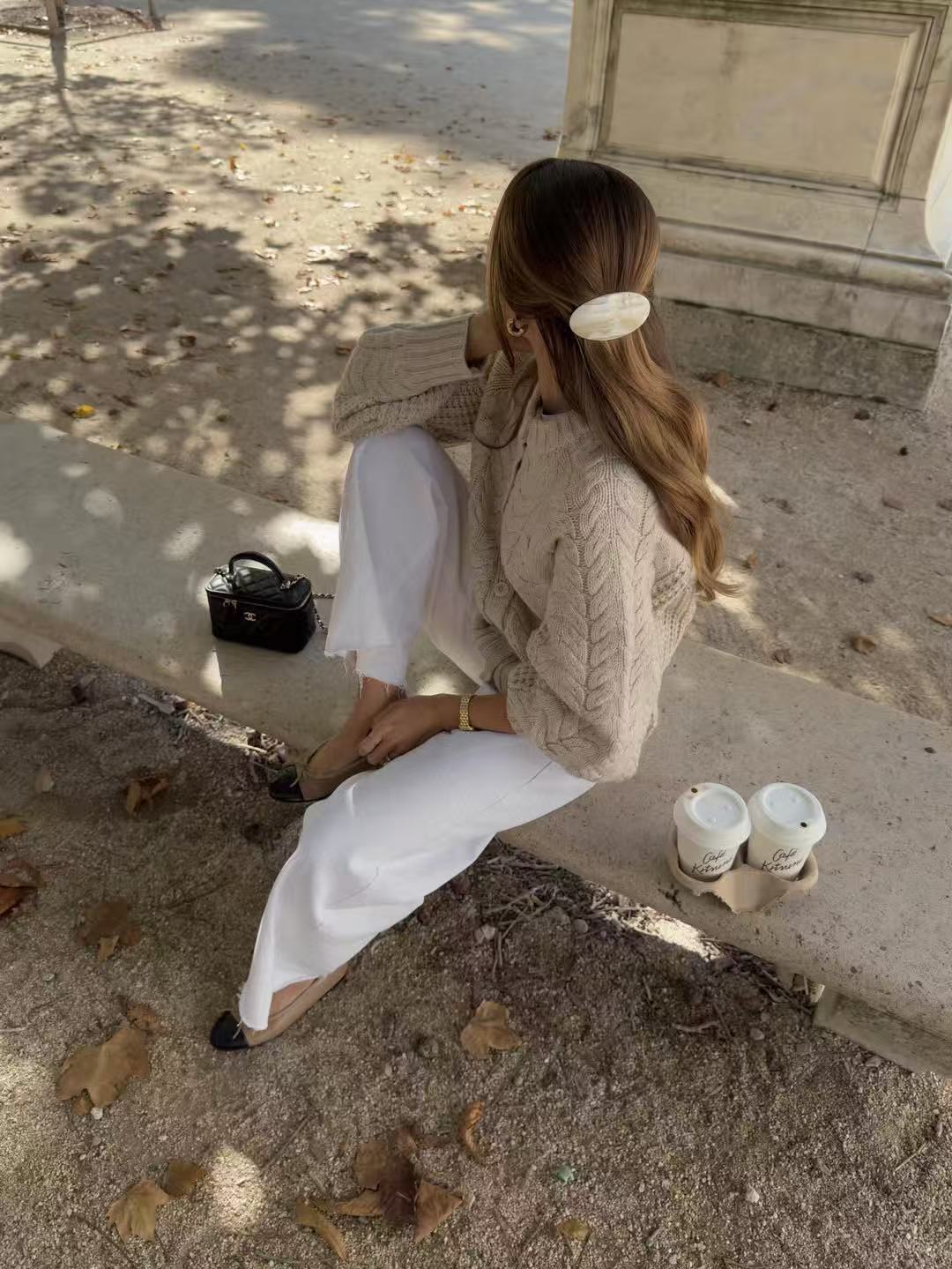 這件開衫是層次神器!內搭白T+牛仔褲,輕鬆街頭;疊穿襯衫+高腰裙,優雅氣質。弧形袖口自然垂墜,拉長手臂線條,搭配短靴或球鞋都時髦。秋冬可外搭大衣,保暖又不失型。
