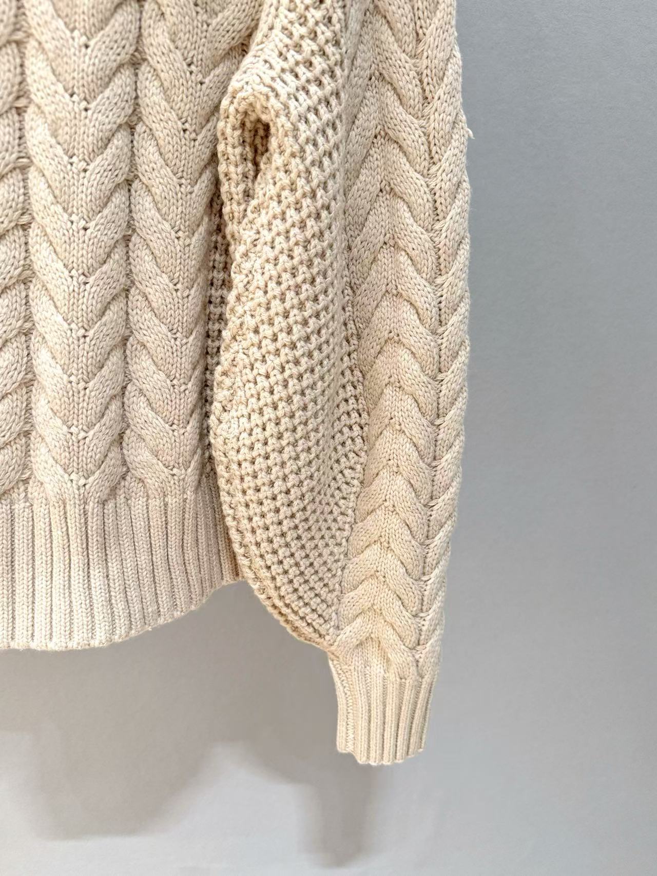 麻花織紋立體精緻,弧形袖口增添隨性優雅;版型寬鬆不緊繃,輕鬆營造休閒氛圍。