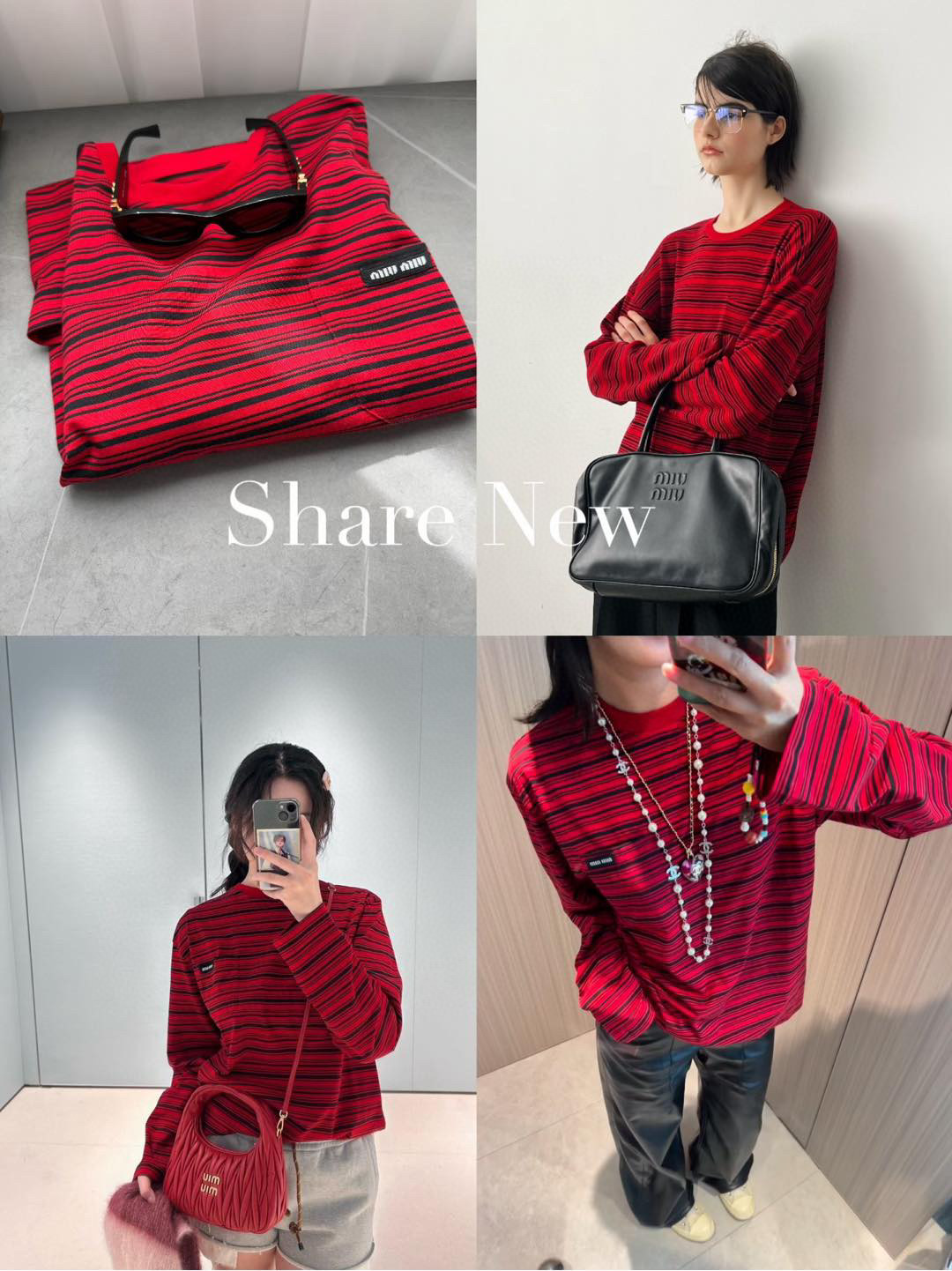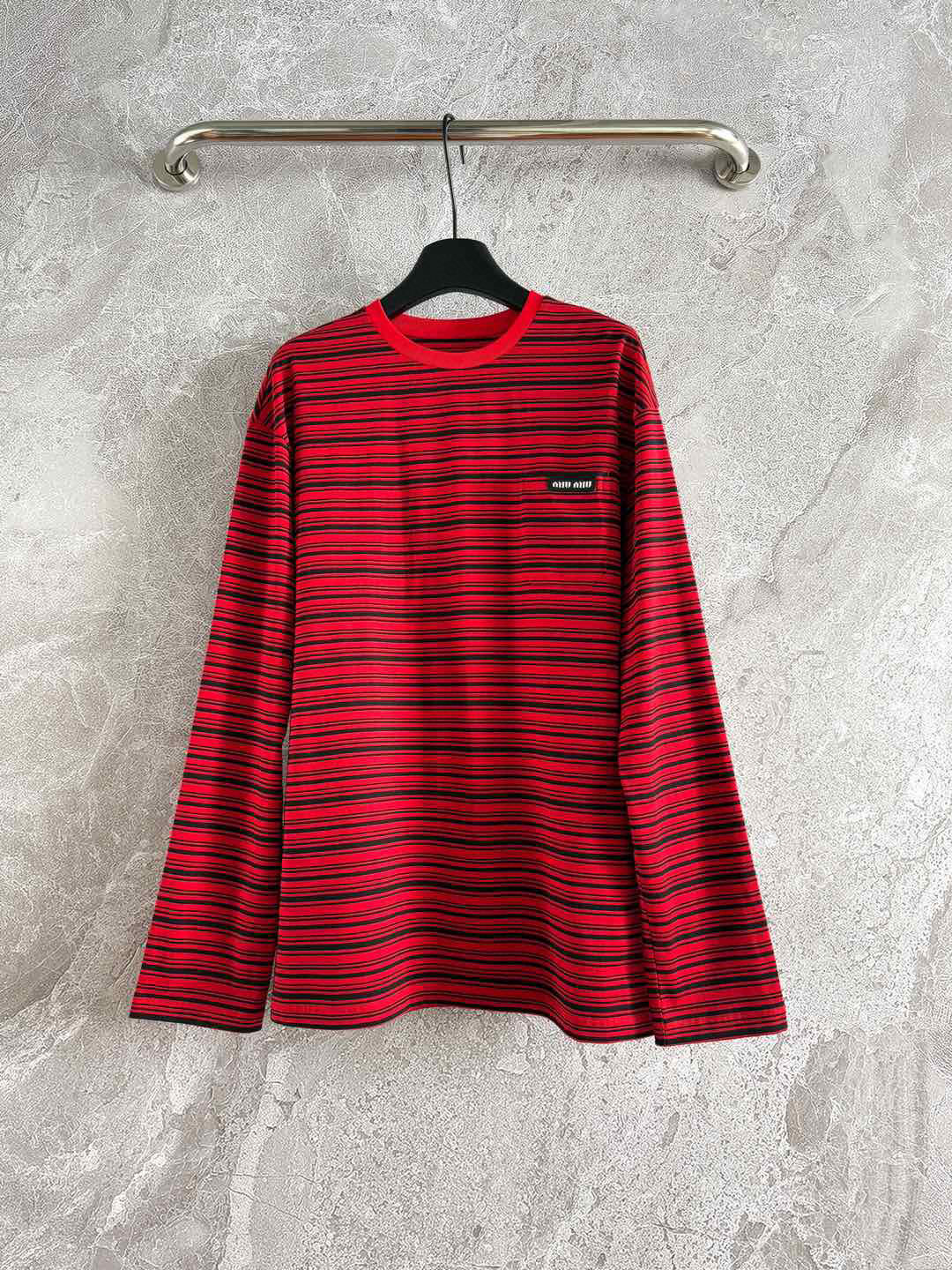 2024秋冬新品 Miu家紅色條紋長袖