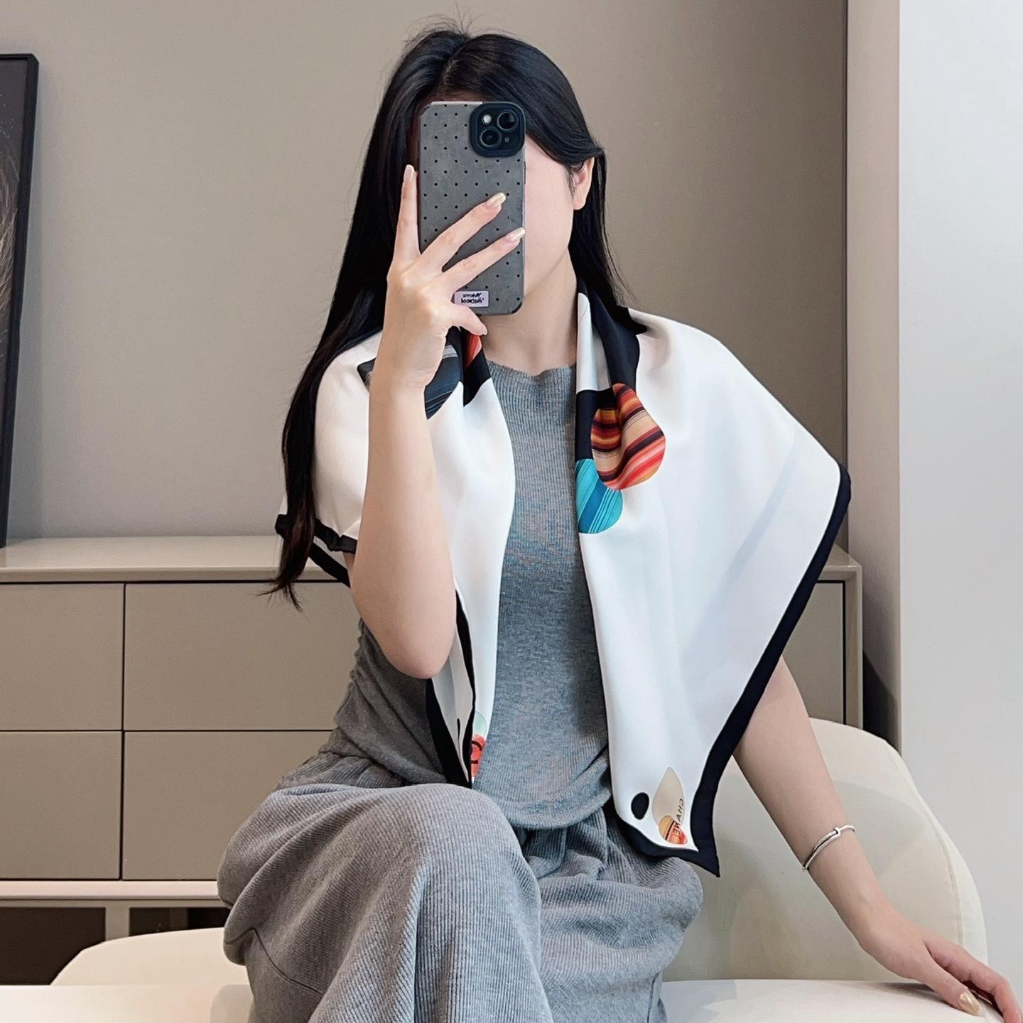 90x90cm 的尺寸實用性很高,不管是當抹胸、綁頭巾,還是隨意披在肩上都很好看,也很適合繫在包包上當裝飾,輕鬆提升整體造型精緻度。